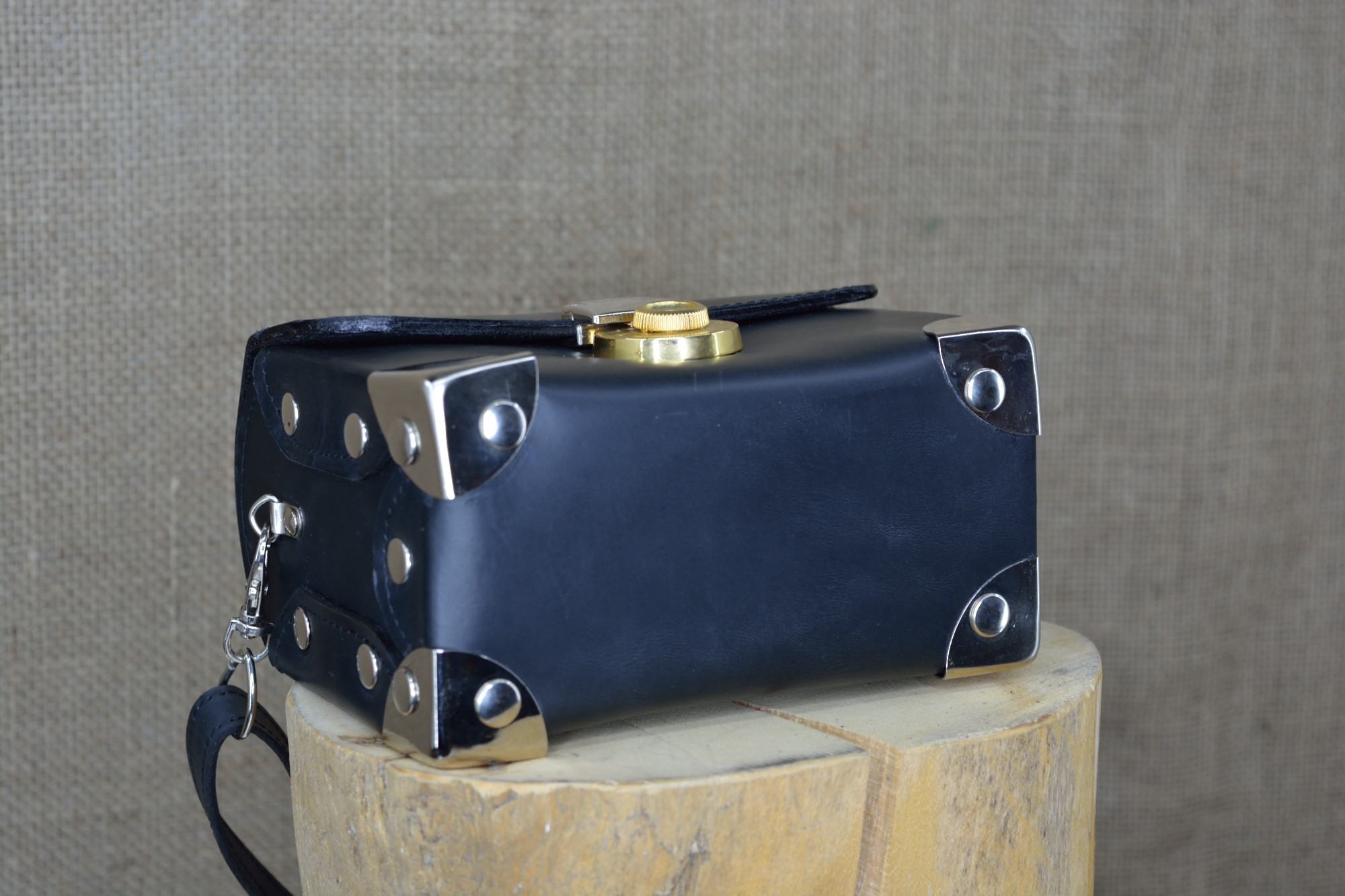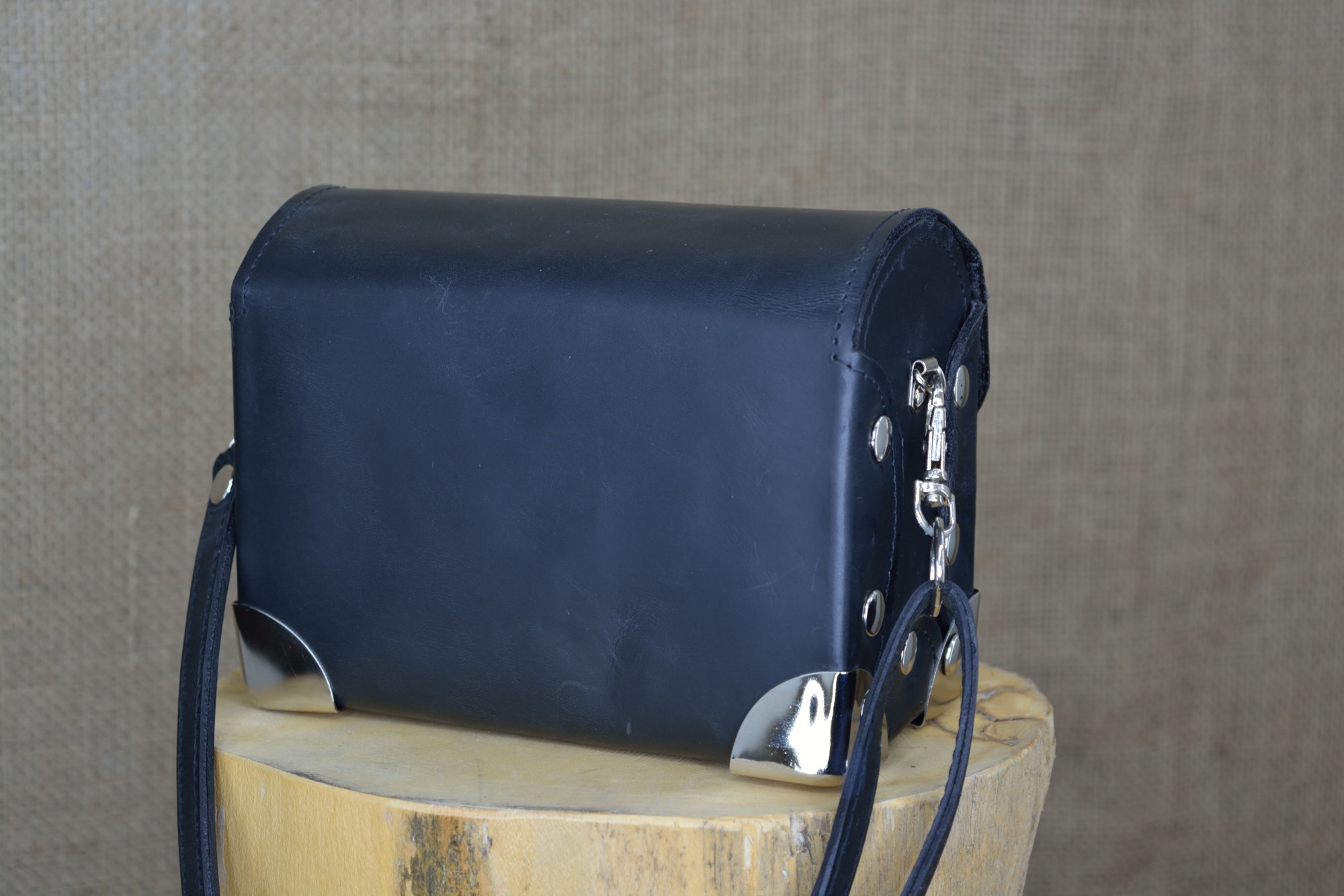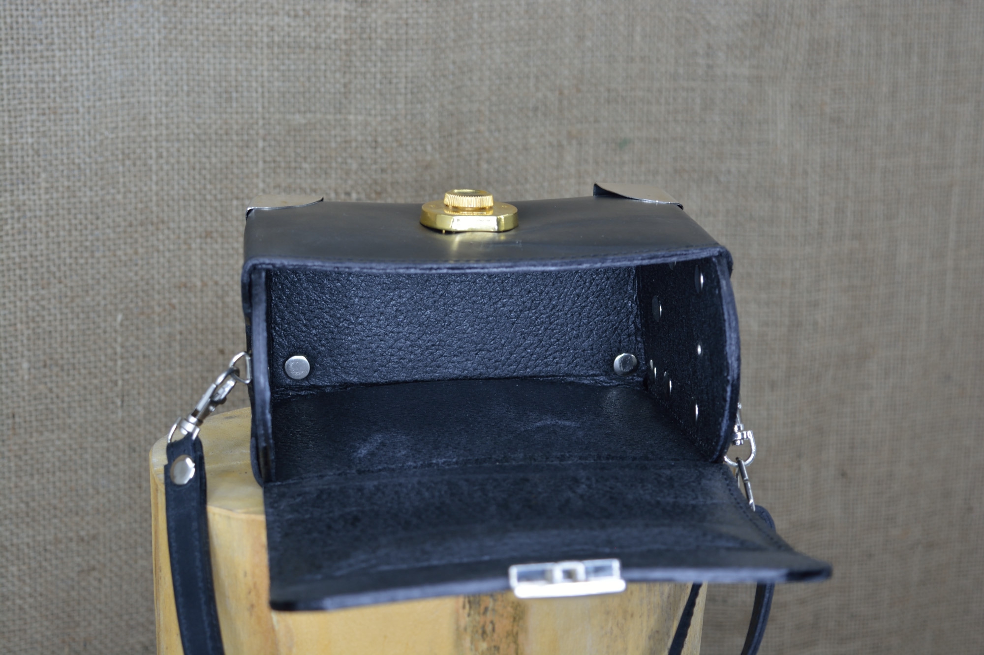 Dámská kožená kabelka Agnes - kvalitní kožená dámská kabelka vyrobená ručně z pravé hovězí kůže. Malá kožená kabelka má vevnitř pouze jedno oddělení a zavíraní kabelky je řešeno klapnou která se uzavírá pomocí ozdobného zámečku. Po stranách je ke kabelce pomocí karabinek připevněn řemínek přes rameno. Po stranách a v rozích je kabelka ozdobně okovaná. Vnitřek kabelky je vypolstrován tvrzenou podšívkou.