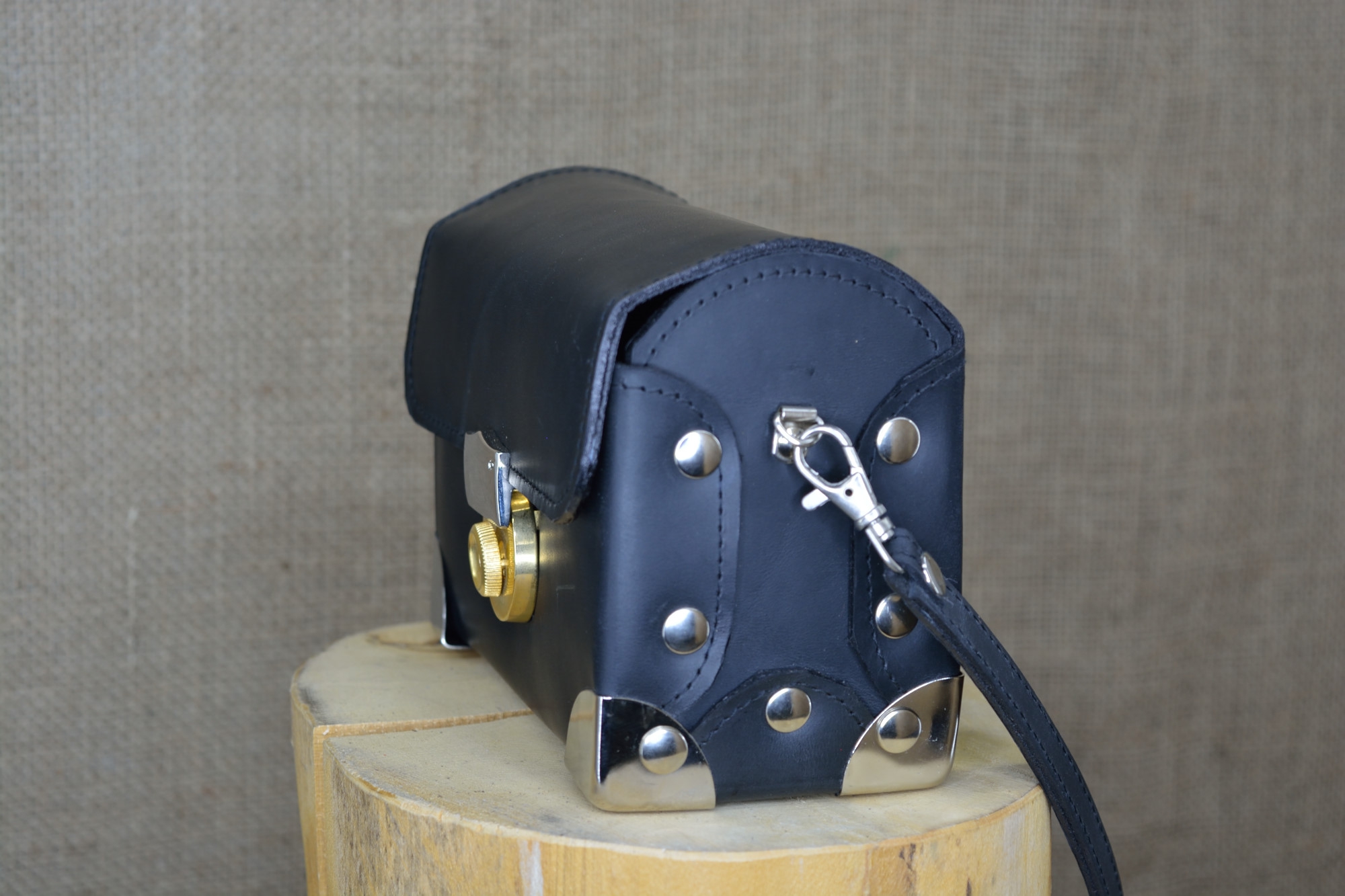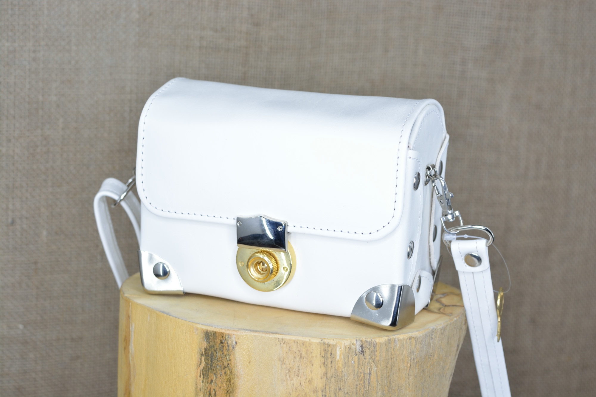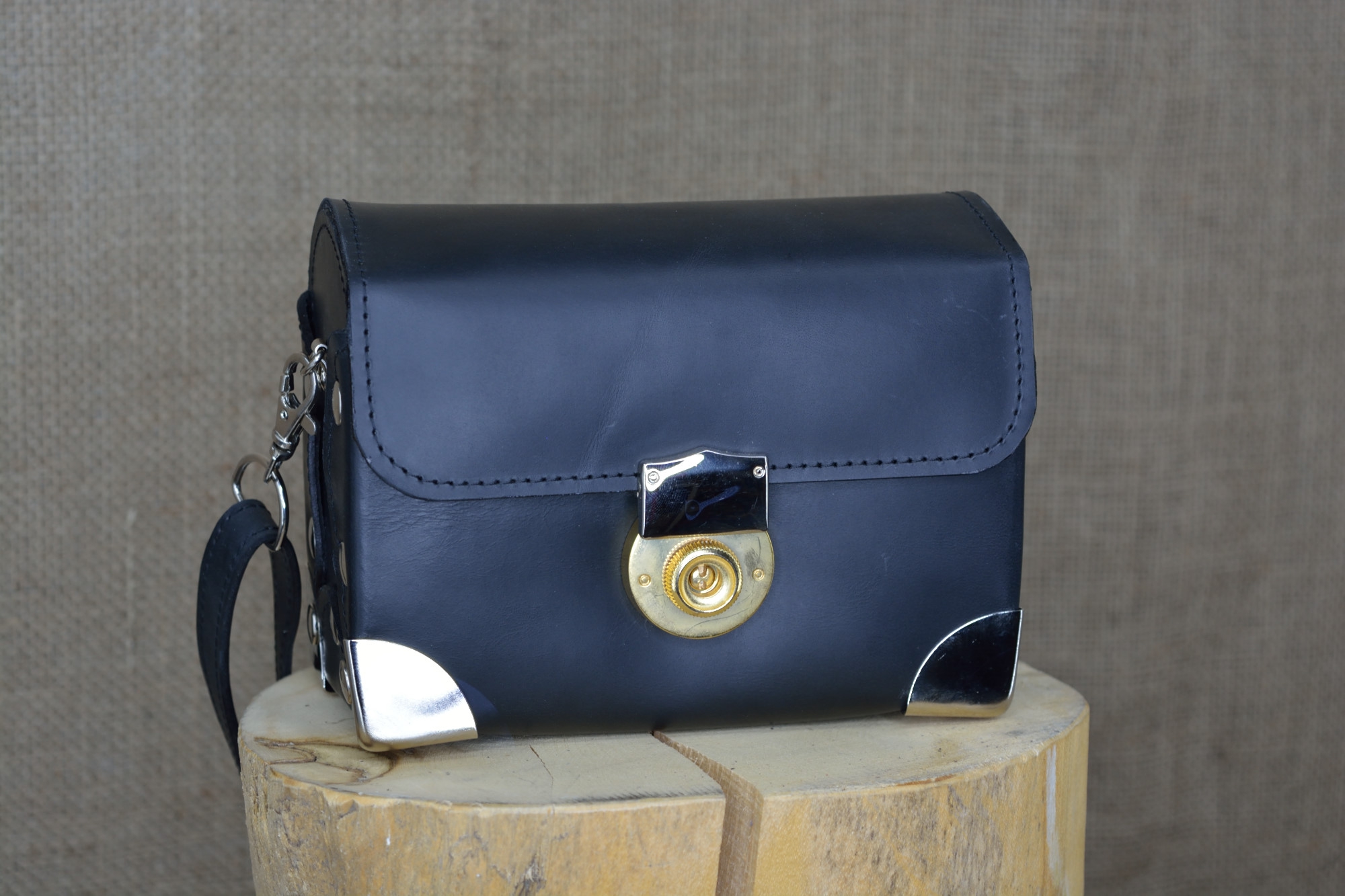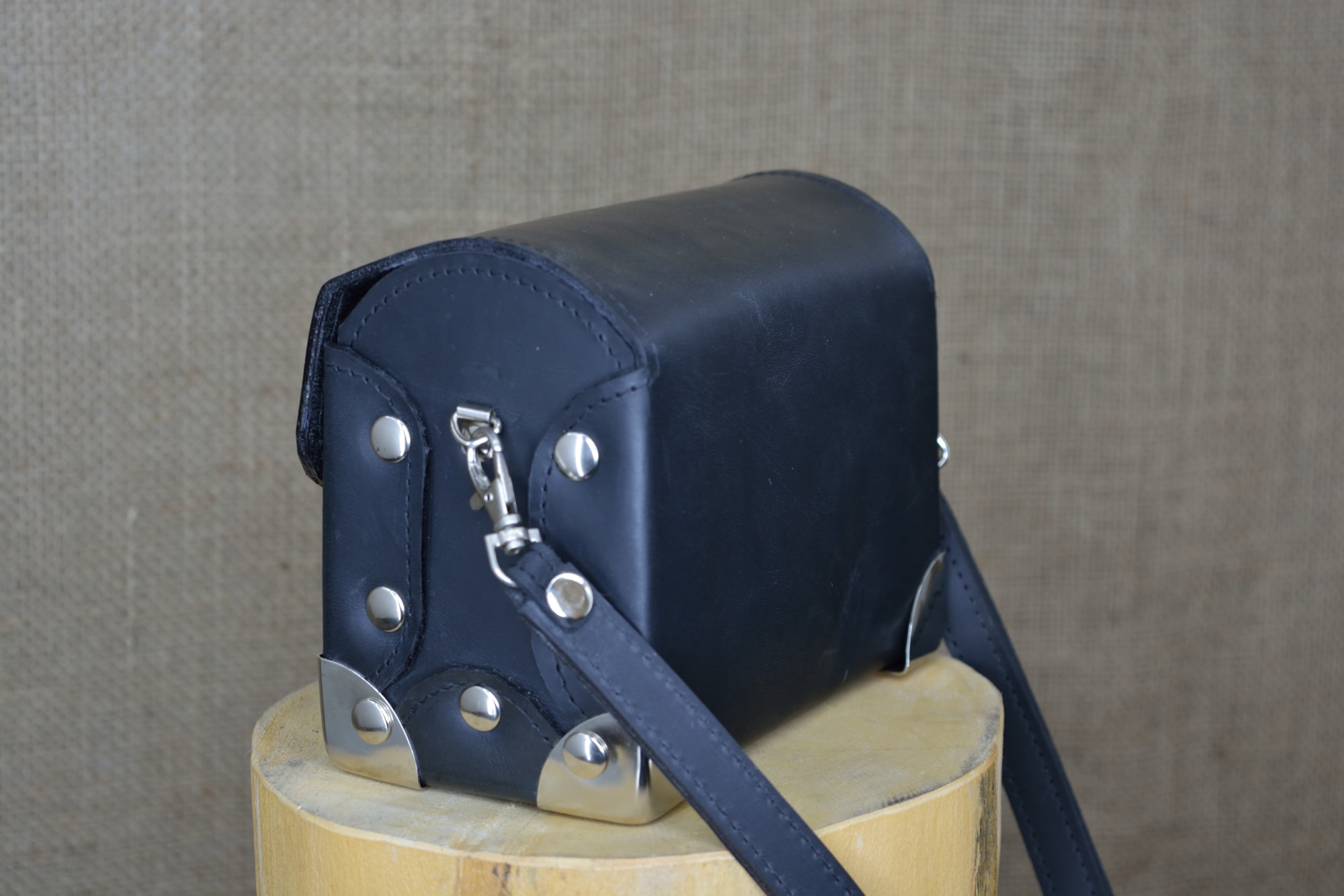 Dámská kožená kabelka Agnes - kvalitní kožená dámská kabelka vyrobená ručně z pravé hovězí kůže. Malá kožená kabelka má vevnitř pouze jedno oddělení a zavíraní kabelky je řešeno klapnou která se uzavírá pomocí ozdobného zámečku. Po stranách je ke kabelce pomocí karabinek připevněn řemínek přes rameno. Po stranách a v rozích je kabelka ozdobně okovaná. Vnitřek kabelky je vypolstrován tvrzenou podšívkou.