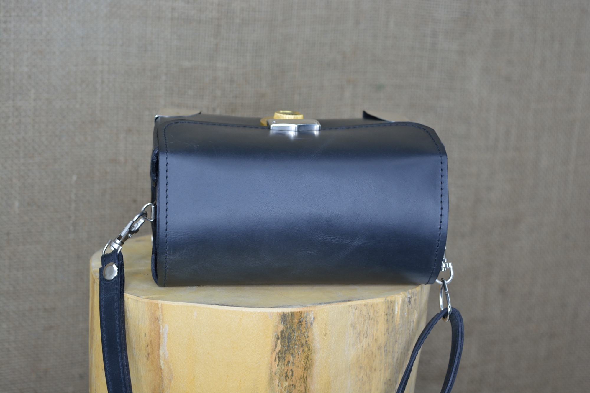Kožená kabelka Agnes má vnější rozměry 17,5 cm x 9,5 cm x 13 cm a řemen přes rameno, kterého délku je možné pohodlně přizpůsobovat pomocí zkracovače.