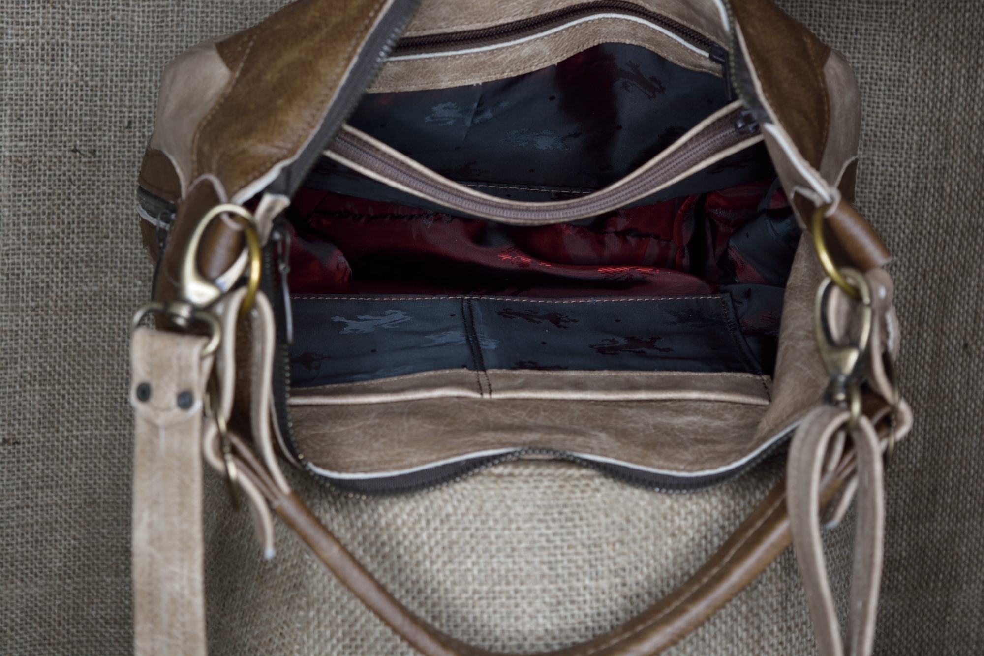 Vnitřek kabelky je navržen tak, aby v něm bylo možné pohodlně nosit dokumenty ve formátu A4.