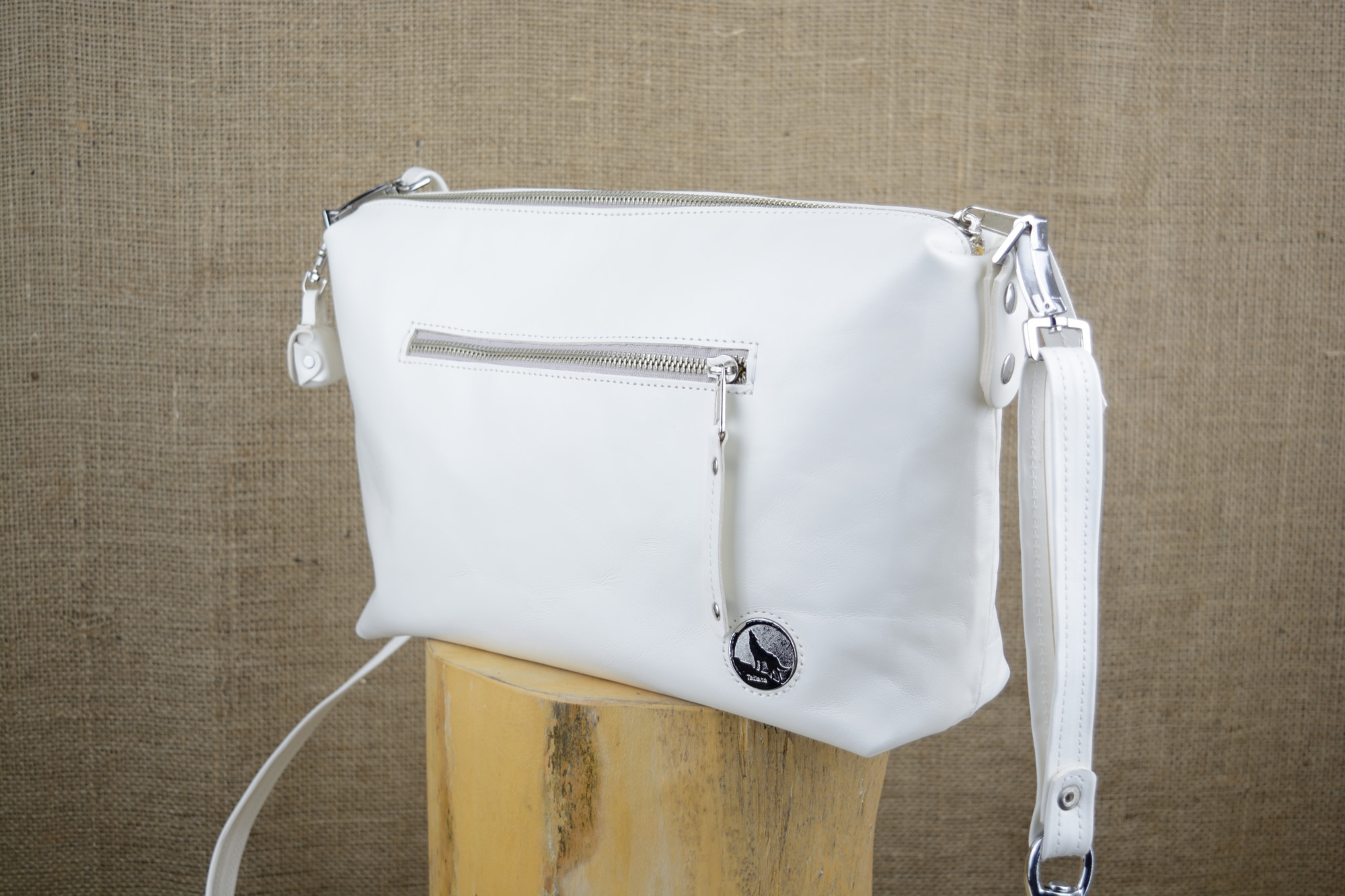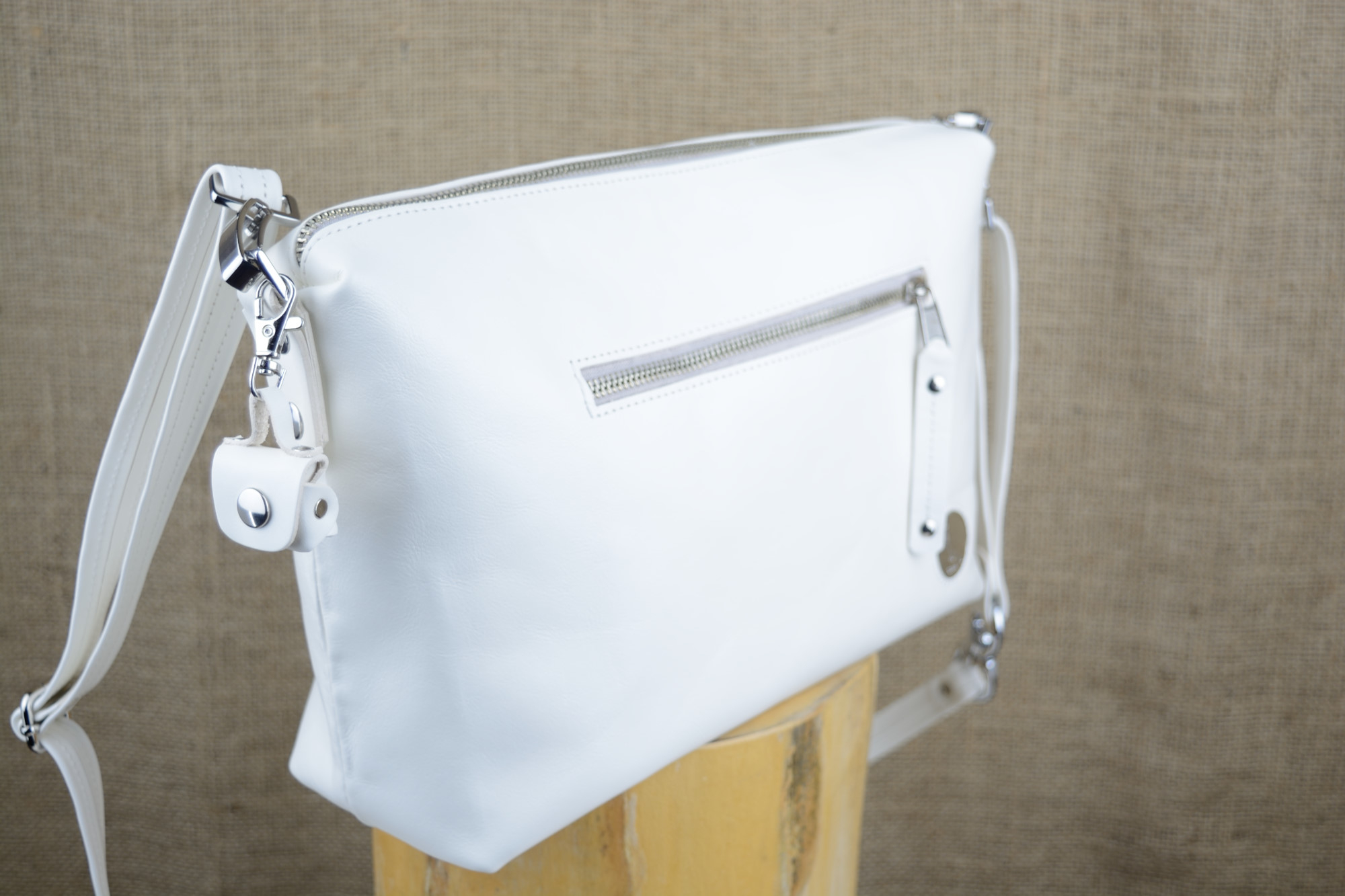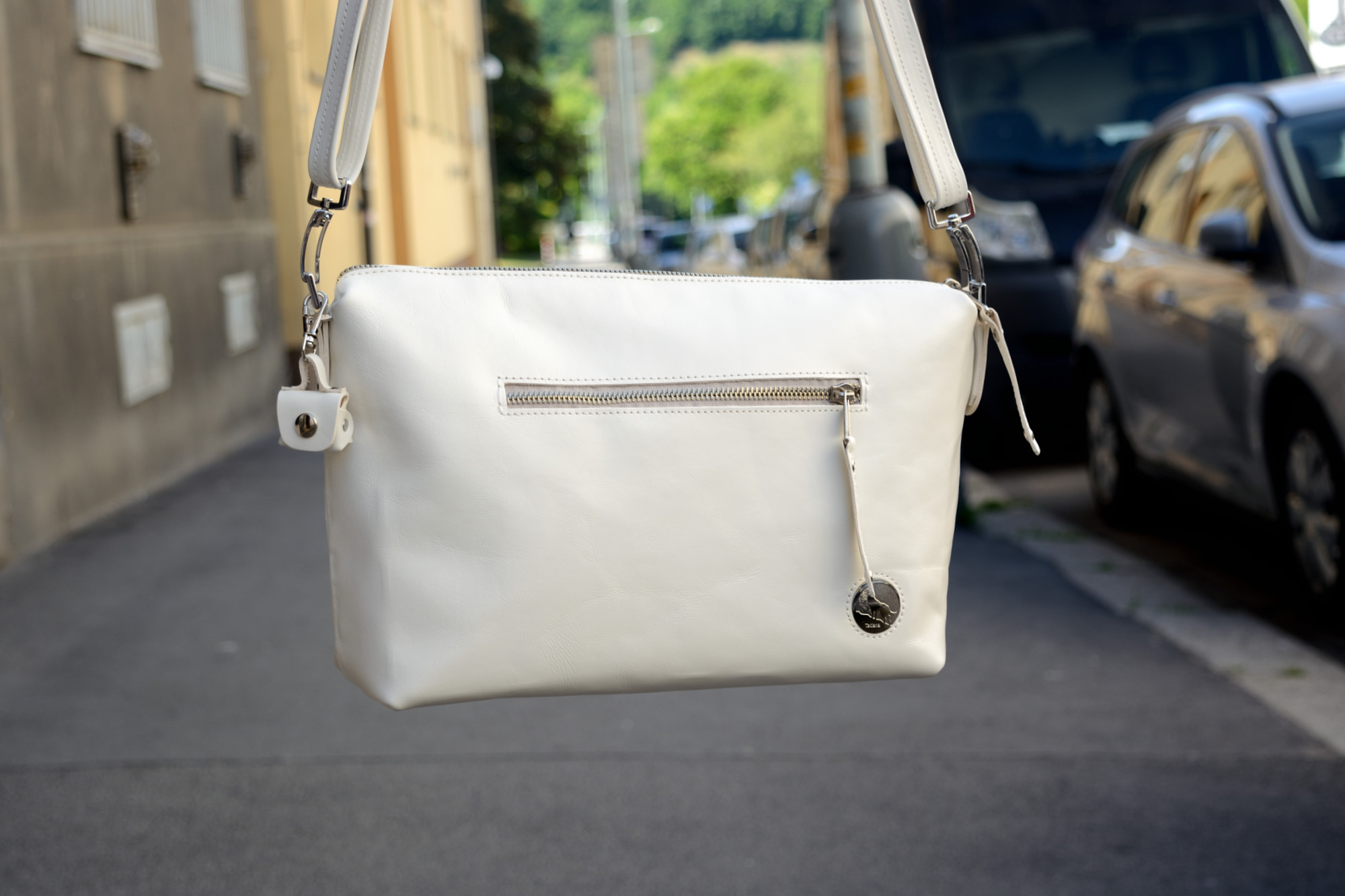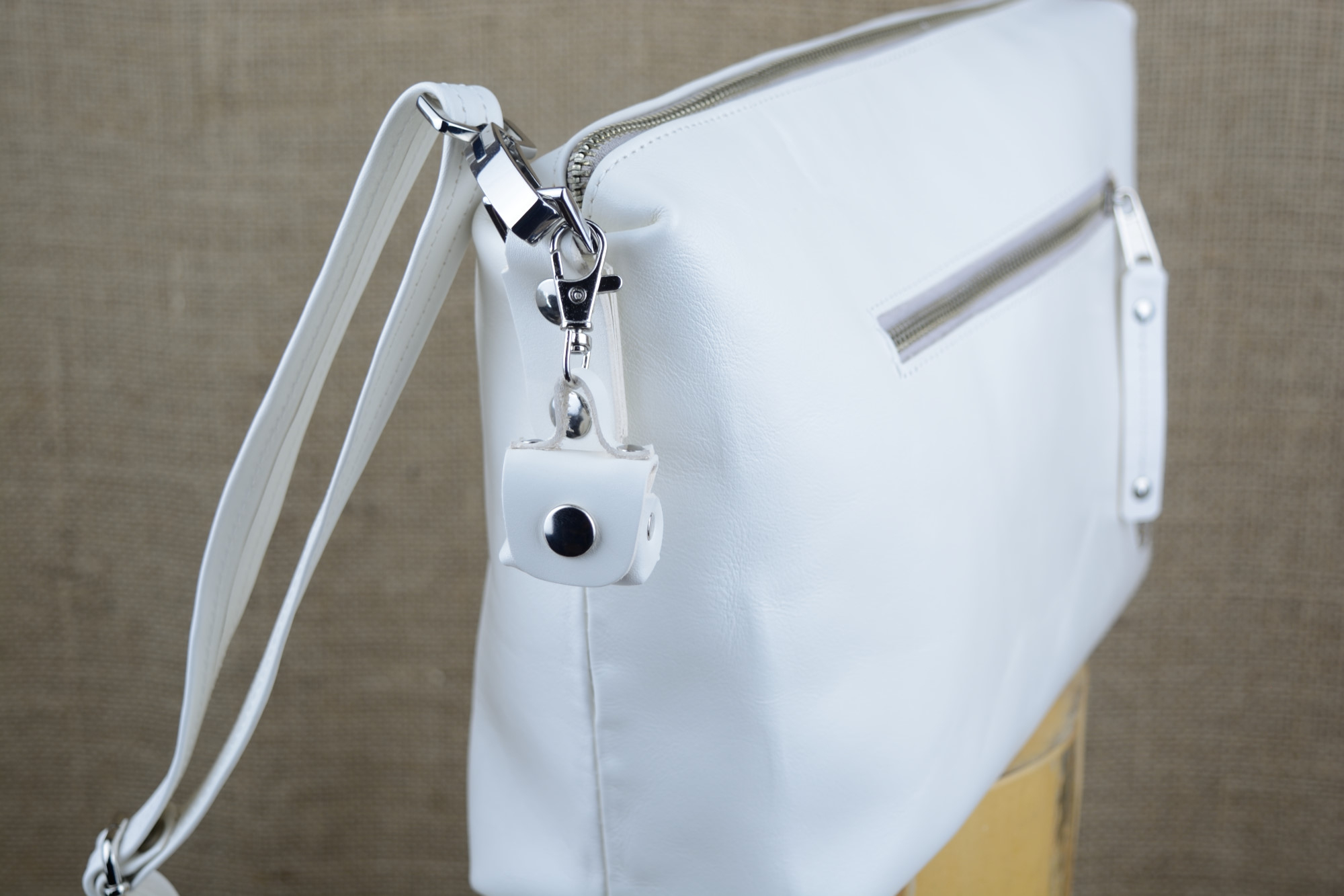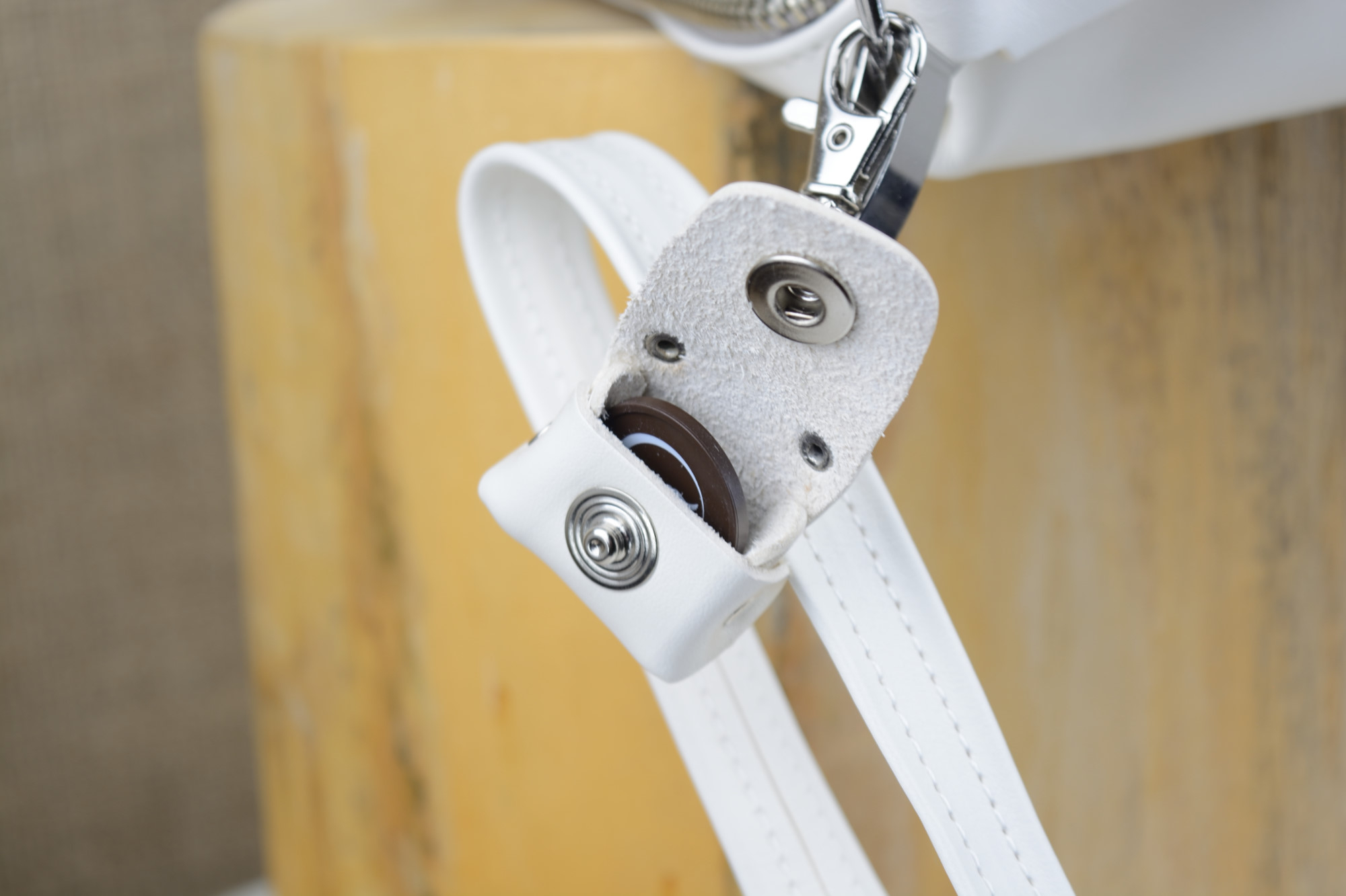 Kabelka má dlouhý řemen přes rameno, kterého délku je možé pohodlně upravovat pomocí zkracovače. Řemen je ke kabelce připnutý pomocí karabinek. Jako příslušenství kabelky přidáváme také malou kapsičku na žetony do nákupního košíku.