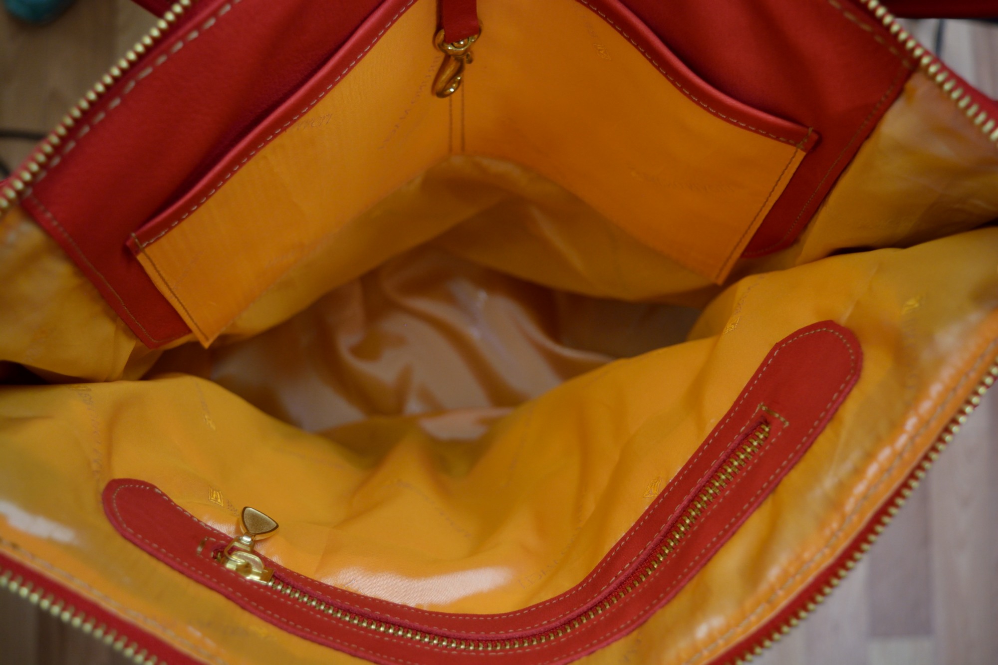 Vnitřek kabelky je navržen tak, aby v něm bylo možné pohodlně nosit dokumenty ve formátu A4.