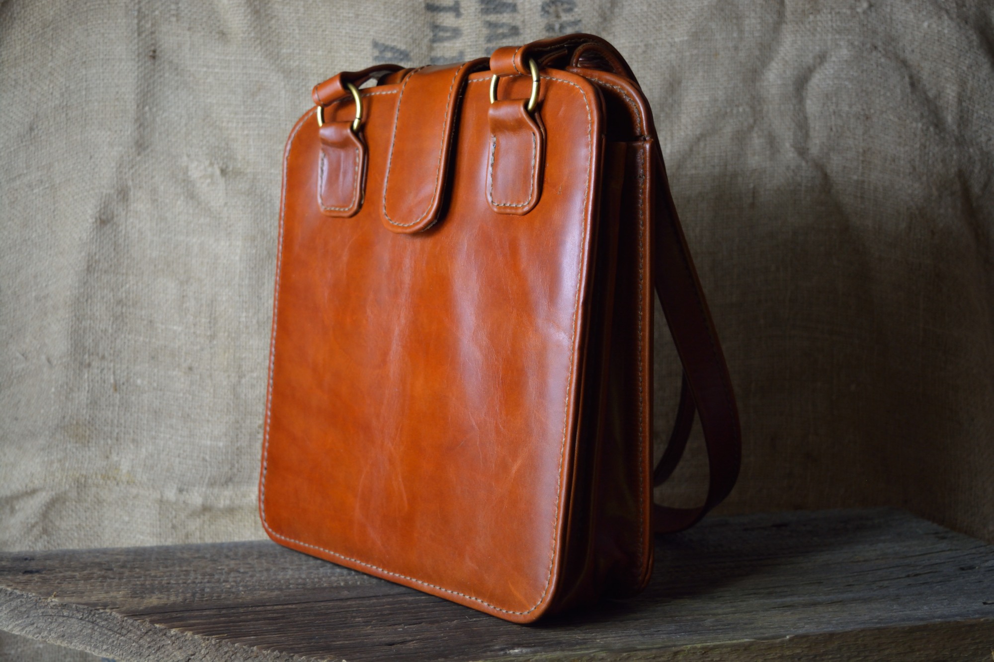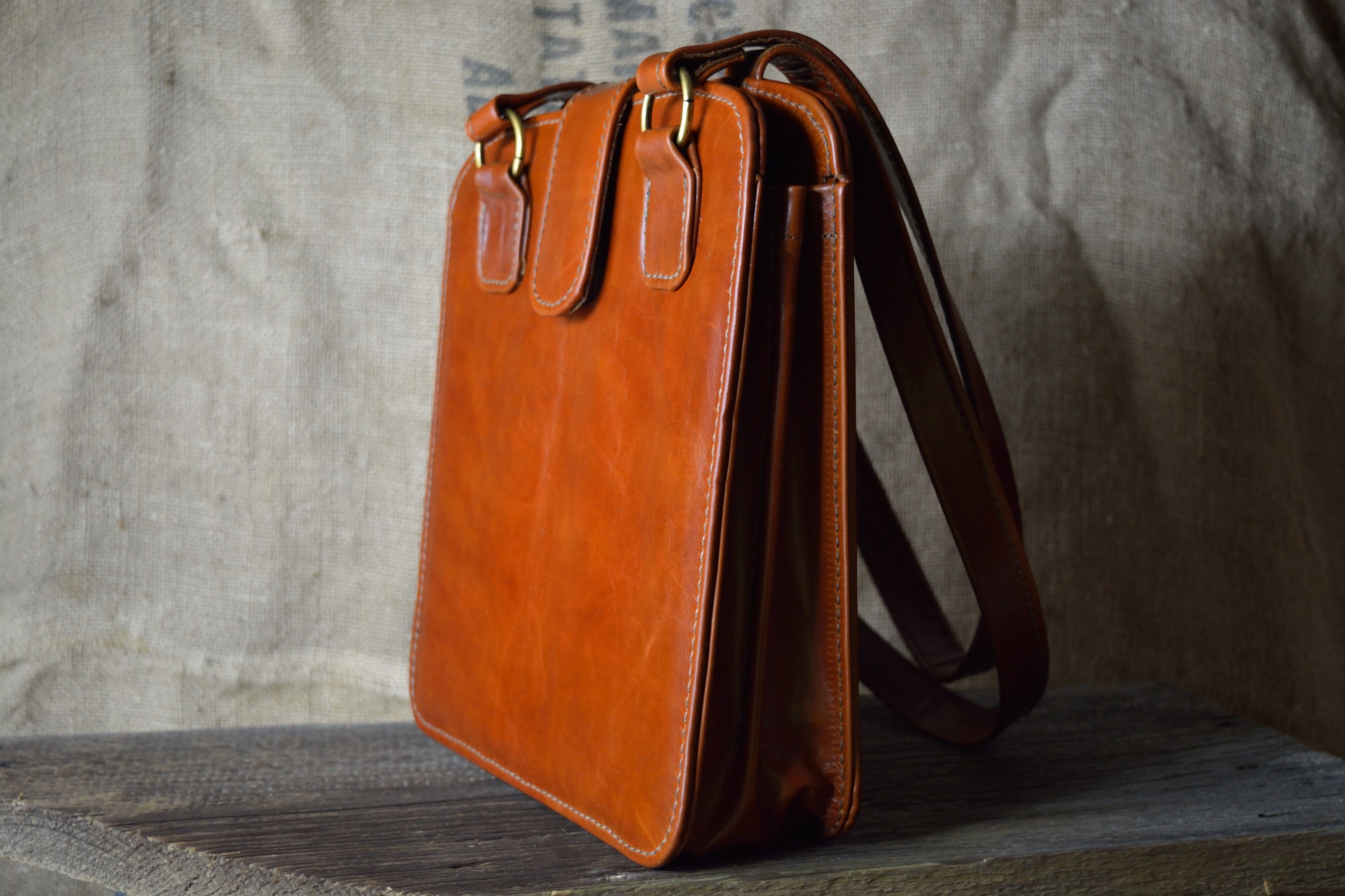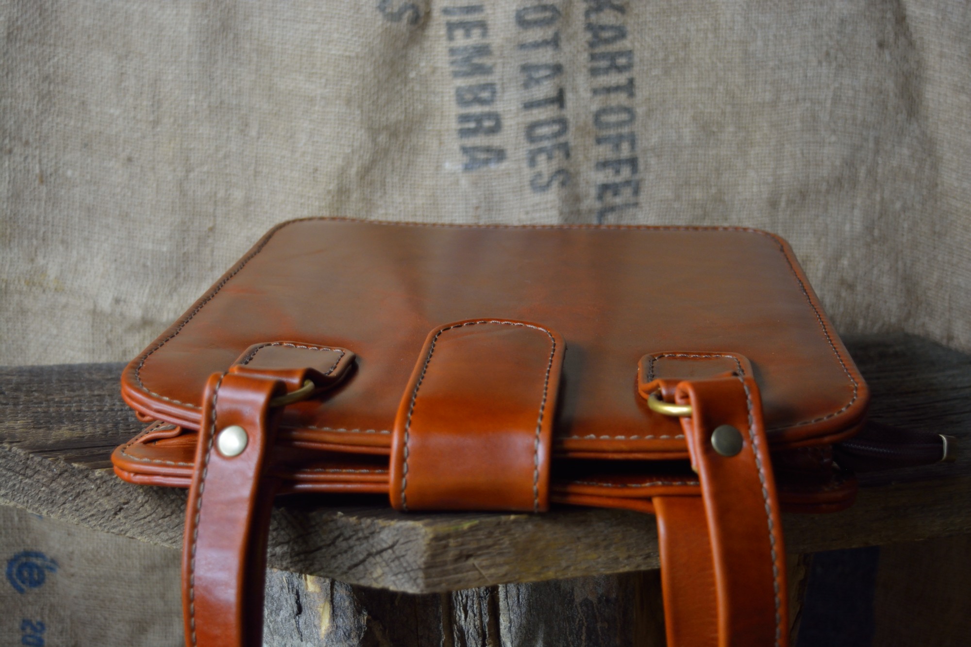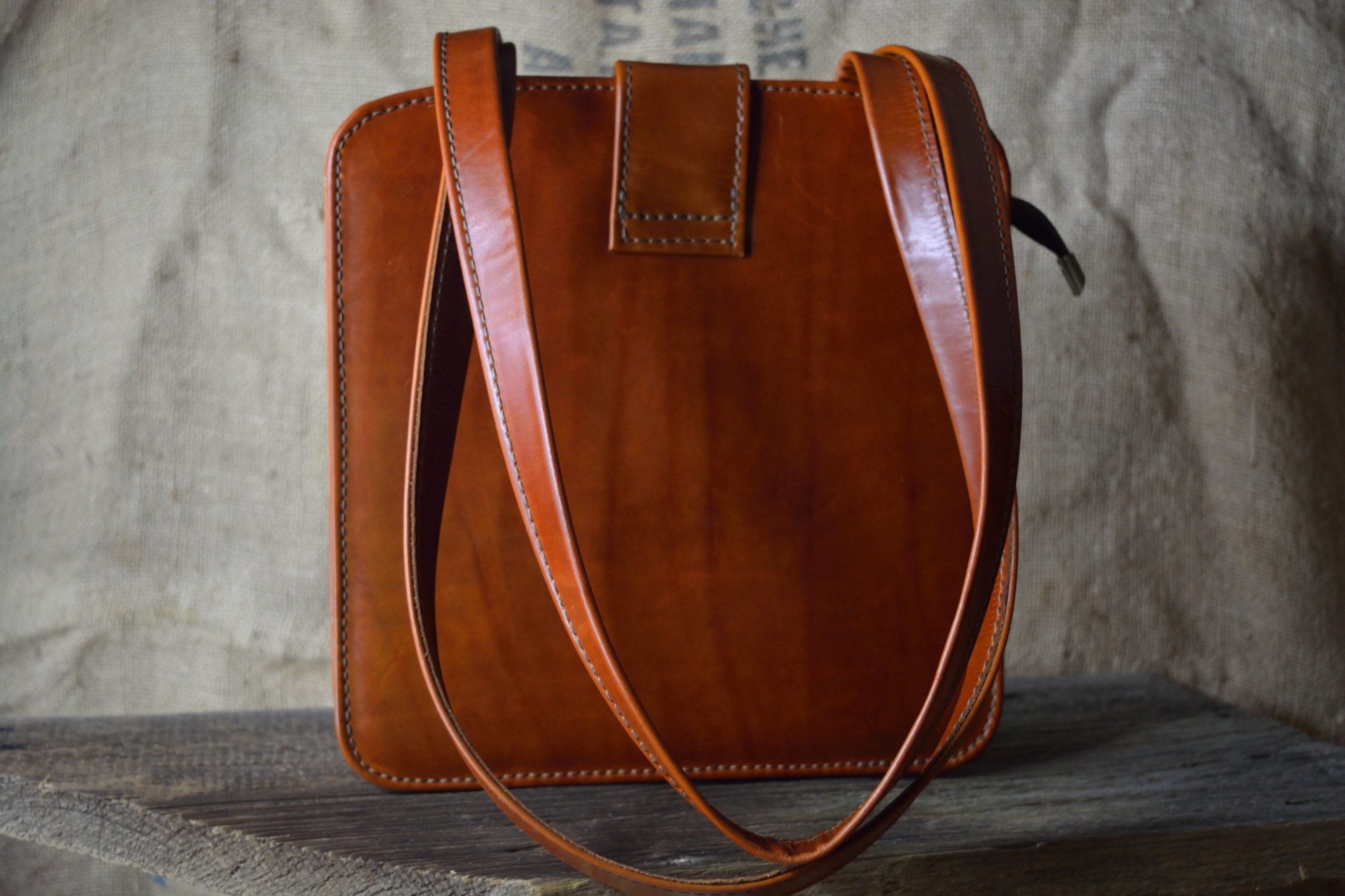 Kožená kabelka Jana má dvě větší (75 cm) držátka pro pohodlné nošení přes rameno upevněné po stranách kabelky.
