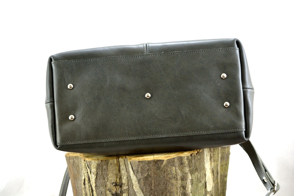 Aby se dno kabelky při manipulaci tolik neopotřebovávalo je vyztuženo a chráněno pěti kovovými nýty (puklemi).