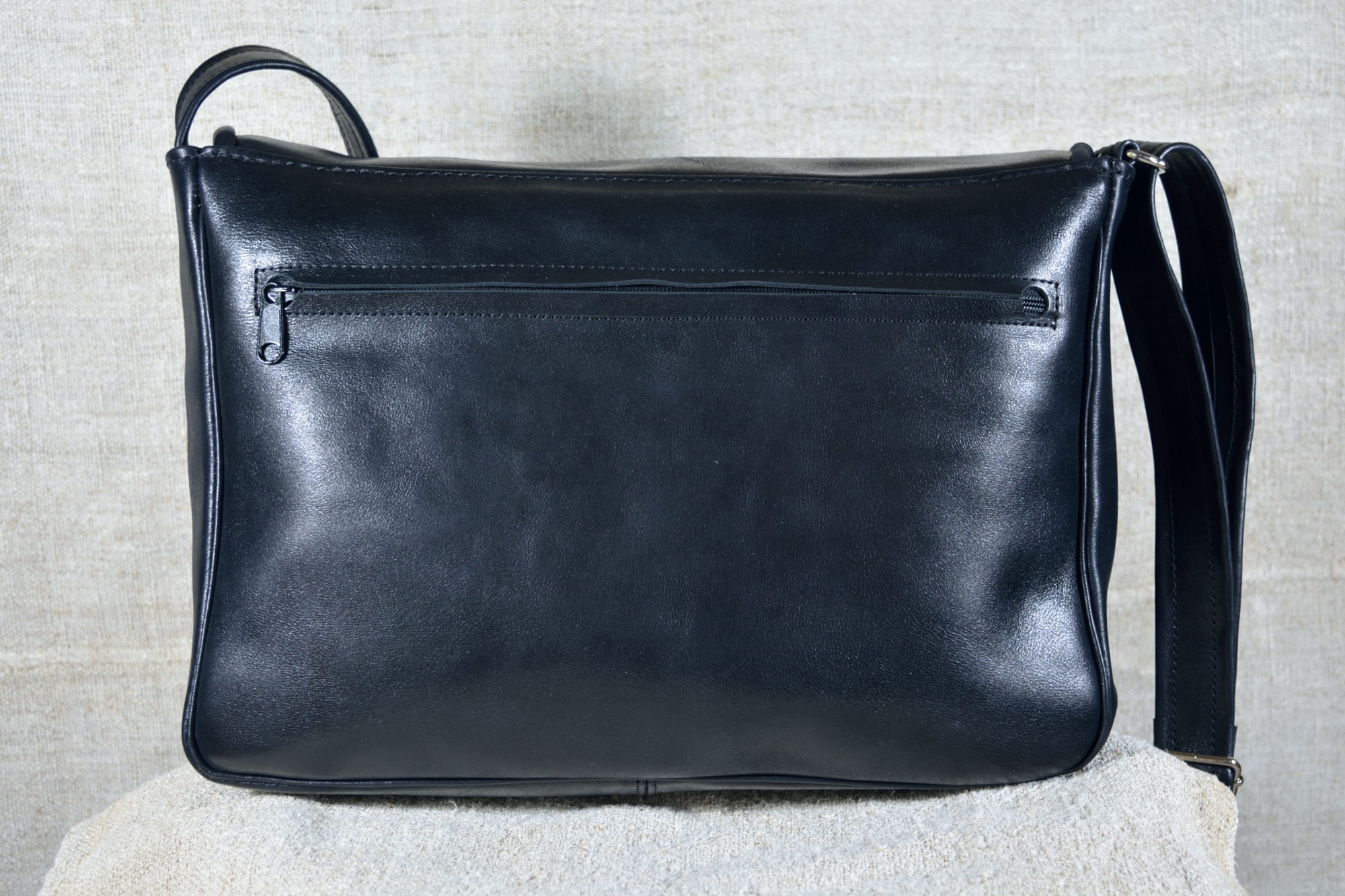 Dámská kožená kabelka Kelgera A4 - kvalitní dámská kožená kabelka vyrobená ručně z pravé hovězí kůže. Kožená kabelka má jedno hlavní oddělení, do kterého je všita podšívka, a které se uzavírá na zip. V hlavním oddělení na zadním díle má kožená kabelka našitou zipovou kapsu z pošívky a na předním dílu jsou ještě dvě malé podšívkové kapsičky na drobnosti. Na předním díle je zvenčí našita ještě jedna velká kožená kapsa. Zvenčí na zadní straně je kapsa na zip.