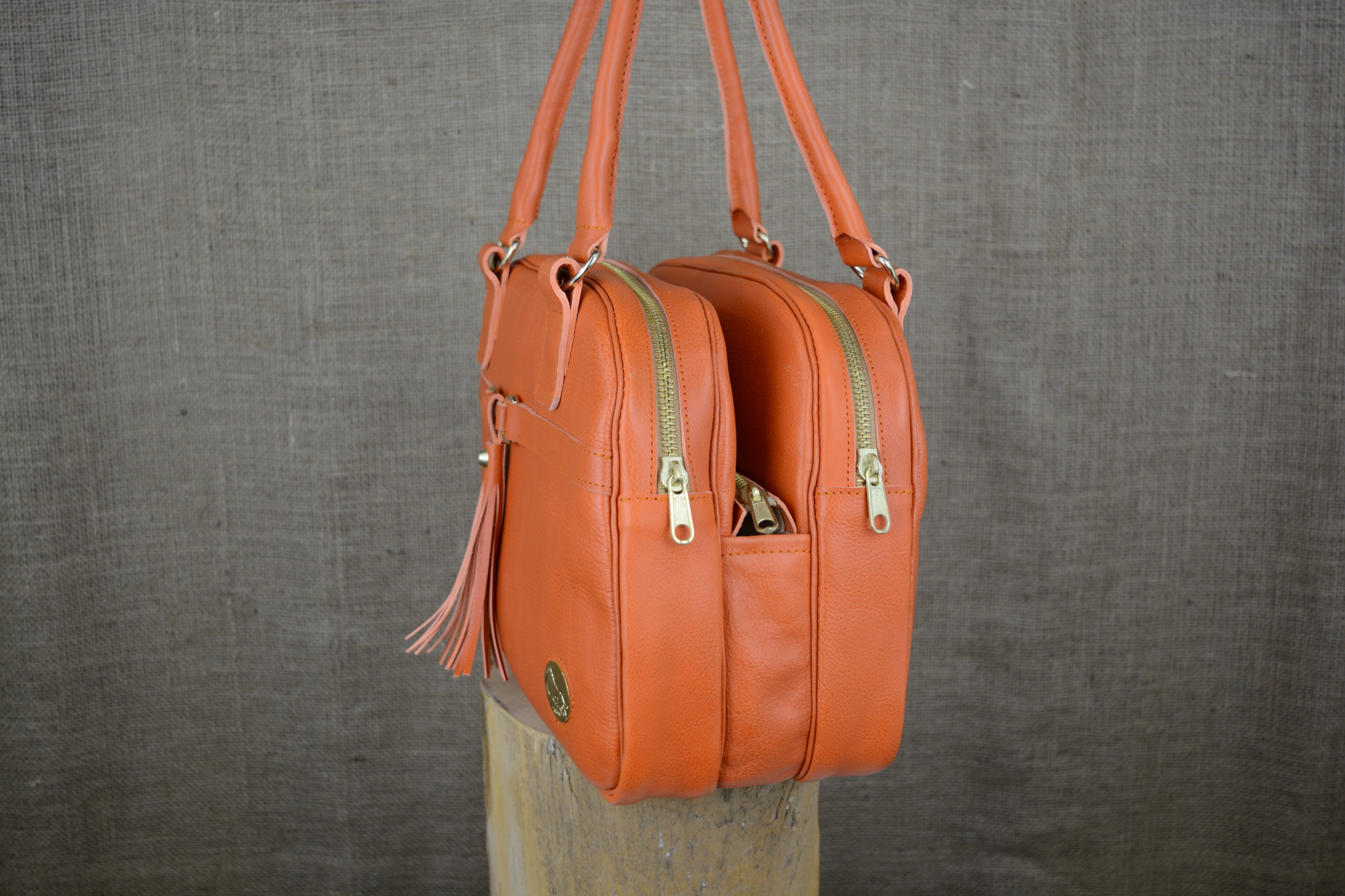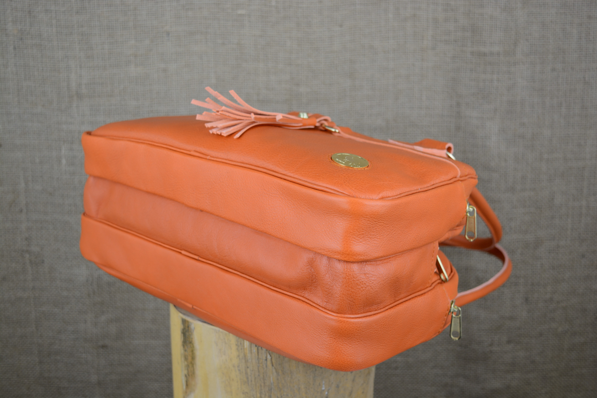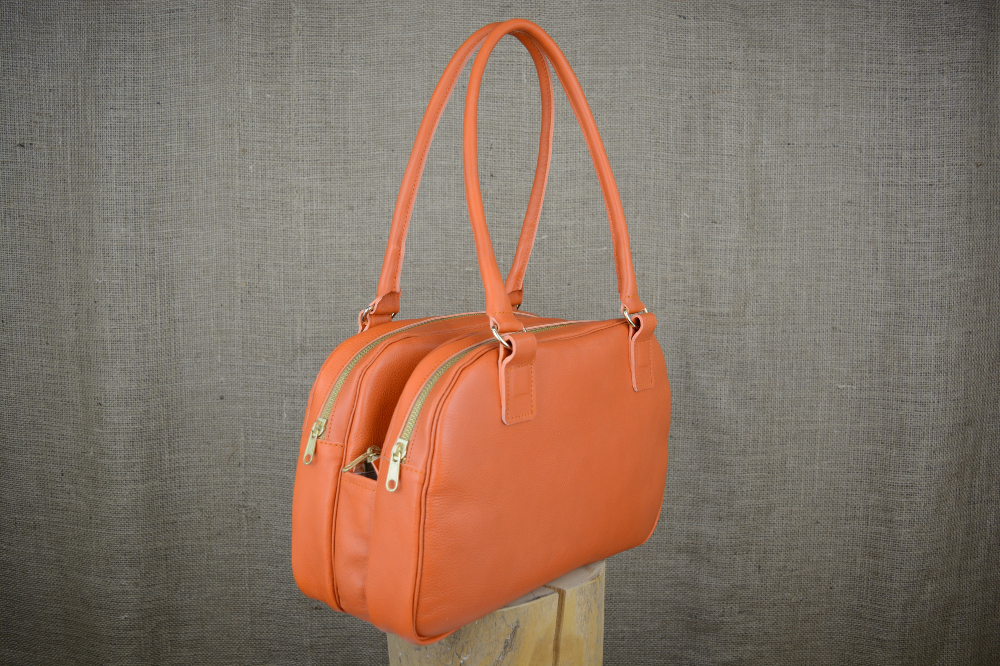 Dámská kožená kabelka London - kvalitní dámská kožená kabelka vyrobená ručně z pravé hovězí kůže. Kabelka se skládá ze dvou vyšších oddělení a z jednoho menšího umístěného uprostřed. Všechny tři oddělení jsou uzavíratelné zipem.