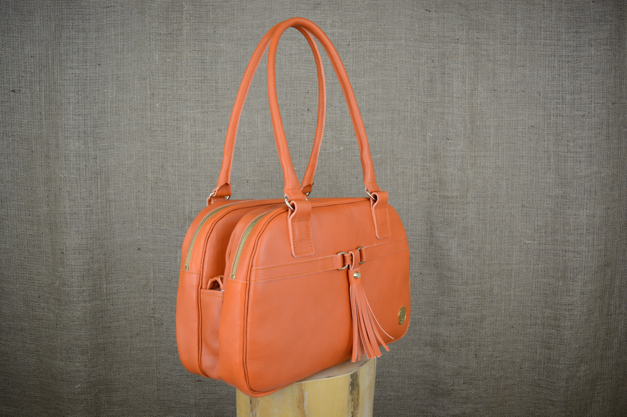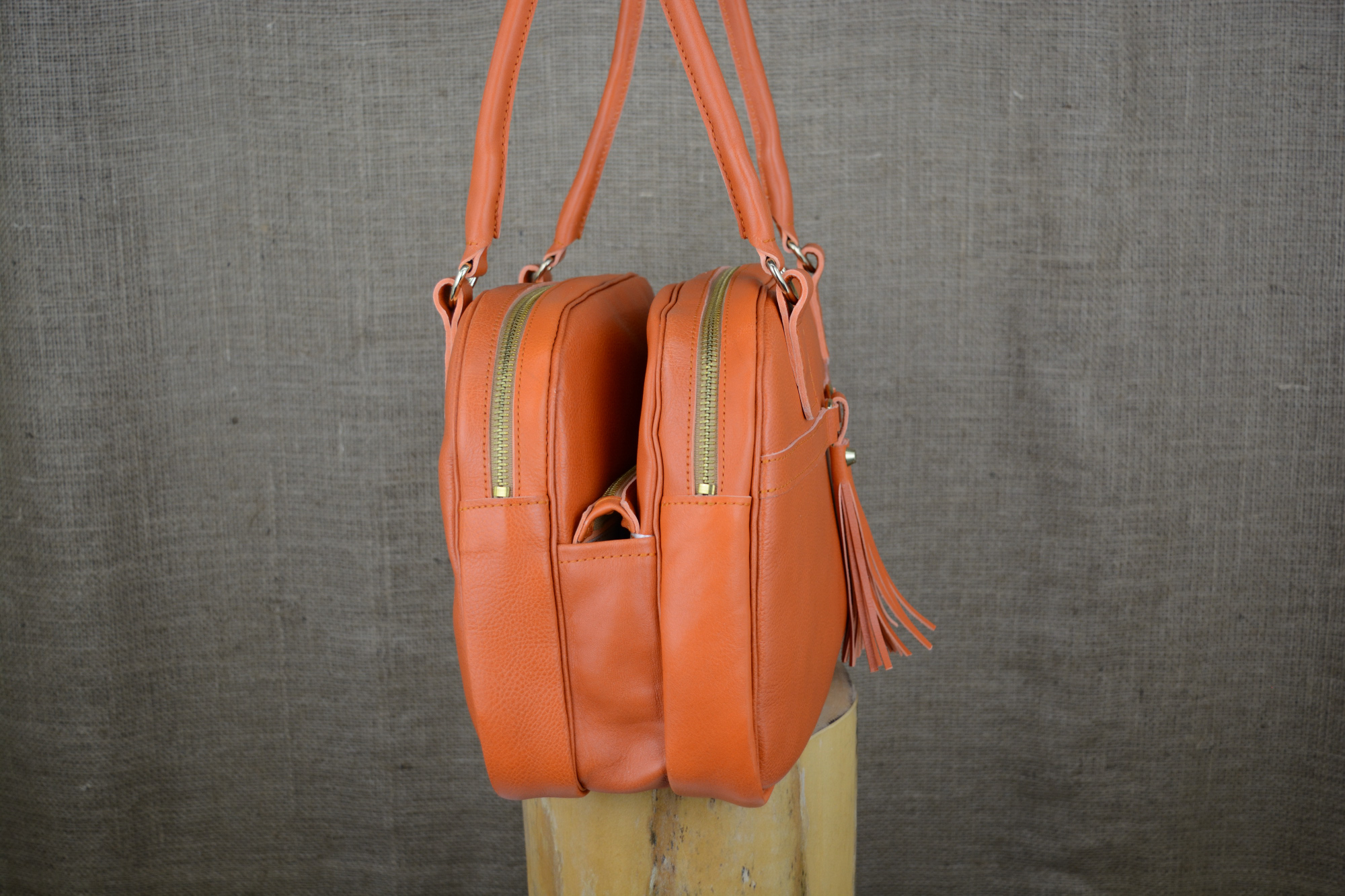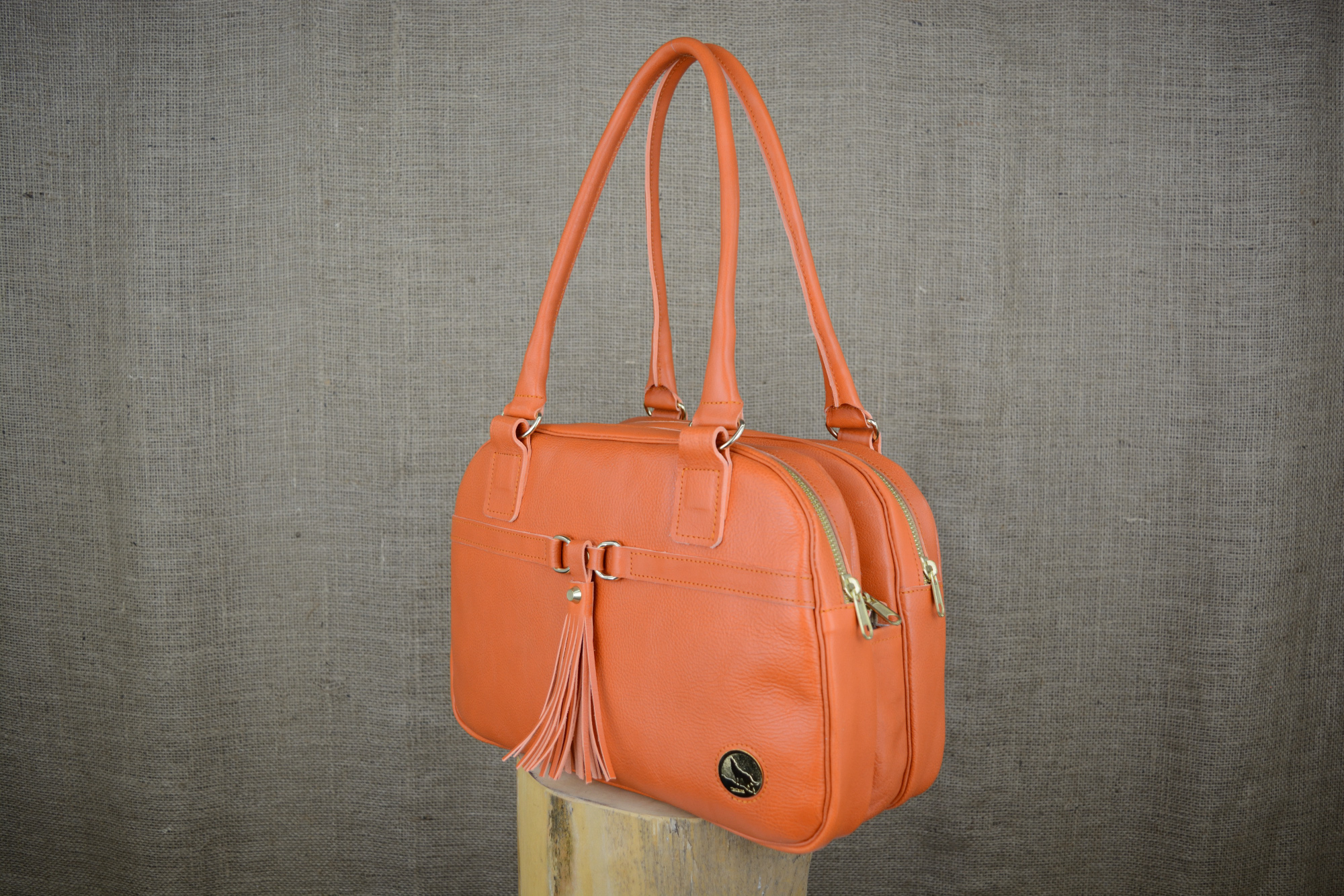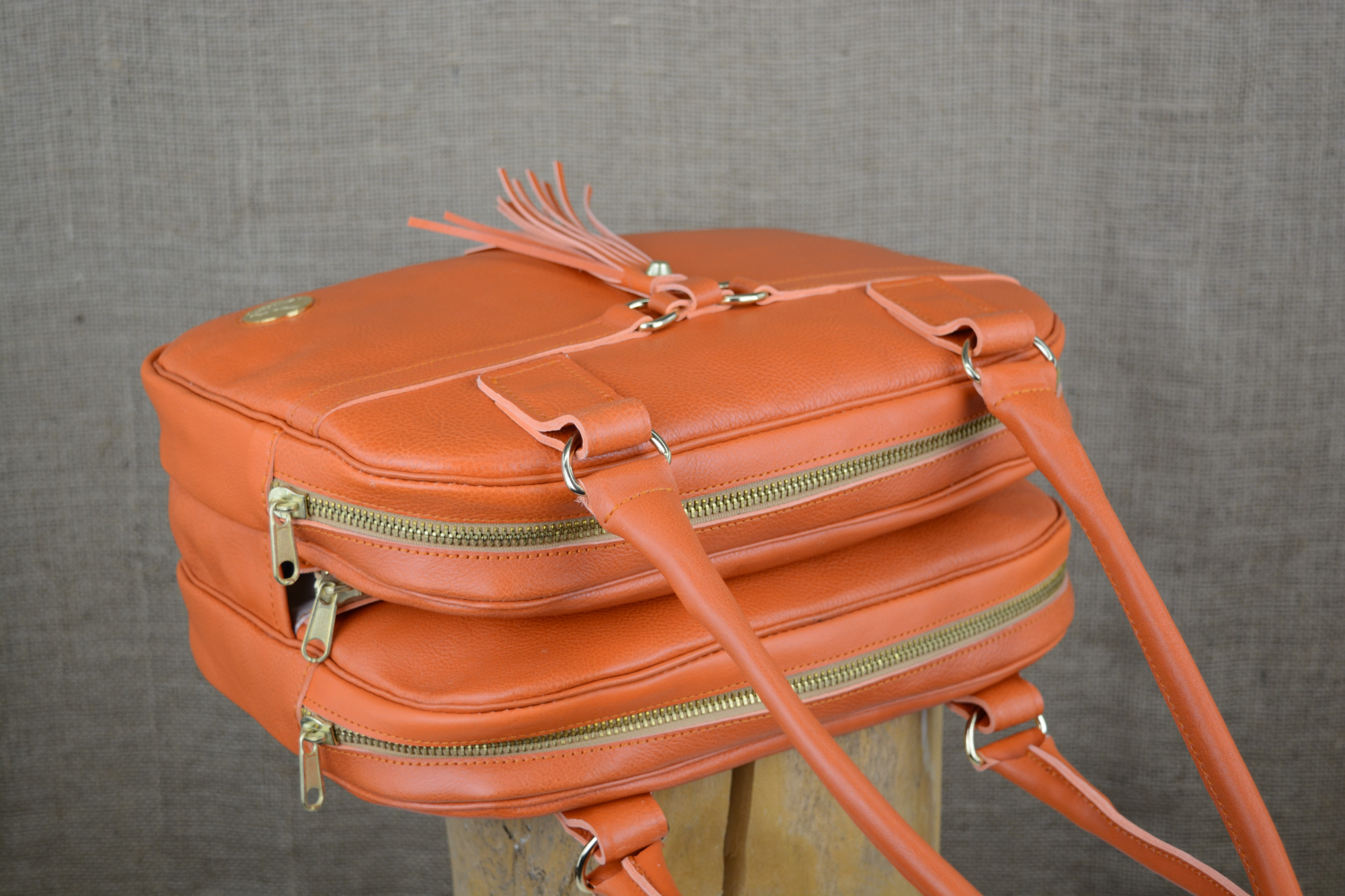 Dámská kožená kabelka London - kvalitní dámská kožená kabelka vyrobená ručně z pravé hovězí kůže. Kabelka se skládá ze dvou vyšších oddělení a z jednoho menšího umístěného uprostřed. Všechny tři oddělení jsou uzavíratelné zipem.