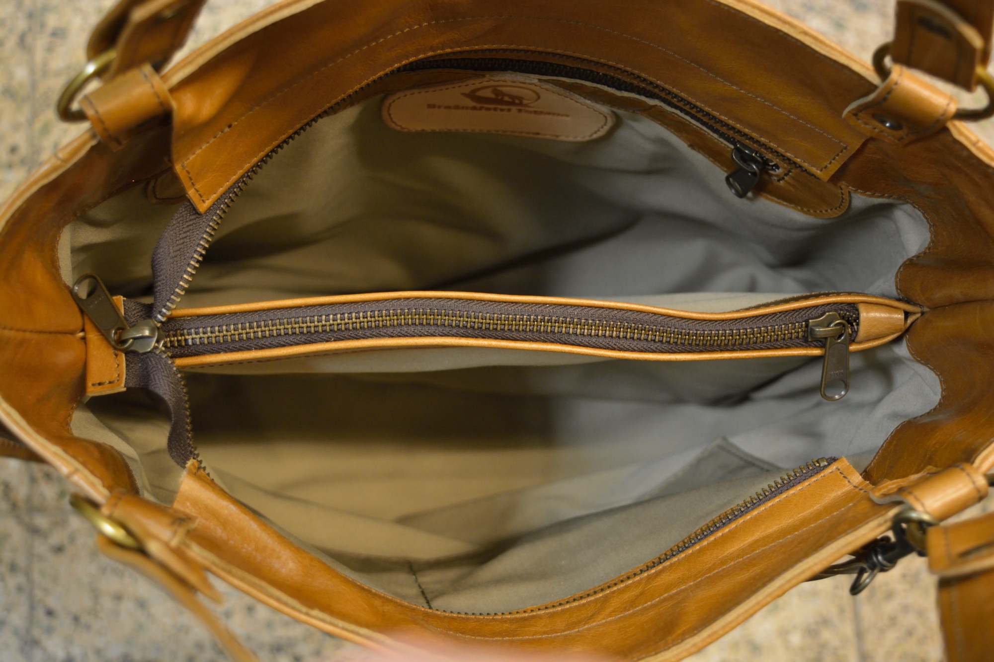 Vnitřek kabelky je navržen tak, aby v něm bylo možné pohodlně nosit dokumenty ve formátu A4.