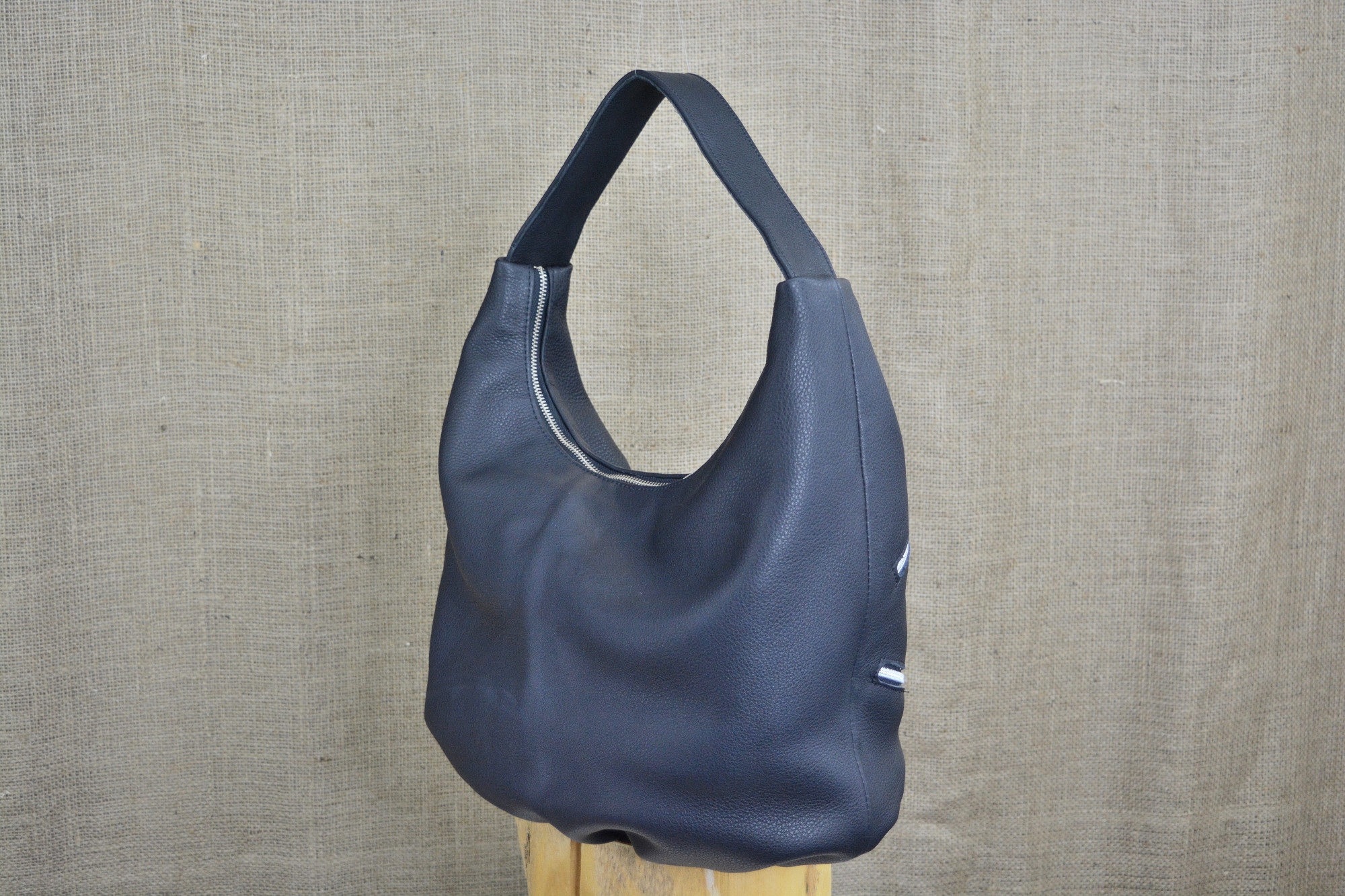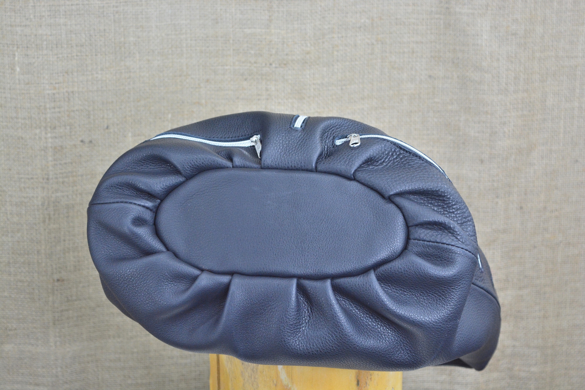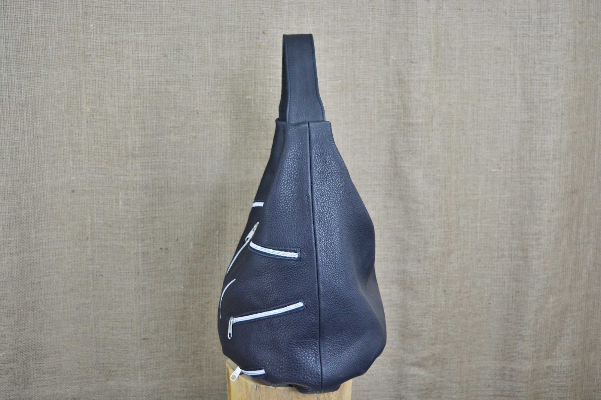 Dámská kožená kabelka Rebelka - kvalitní dámská kožená kabelka vyrobená ručně z pravé hovězí kůže. Kabelka má uvnitř jedno hlavní oddělení. Zevnitř na přední straně má našité ještě dvě malé volné kapsičky na drobnosti. Zevnitř na zadní straně se nachází jedna zipová kapsa z podšívky. Kabelka se ze shora uzavírá zipem. Po stranách kabelka plynule přechází do kratšího popruhu, pomocí kterého se kabelka nosí přes rameno. Zvenčí na přední straně je kabelka zdobená ozdobnými zipy. Tyto zipy slouží pouze jako ozdoba kabelky a nenachází se zde žádné funkční kapsy.