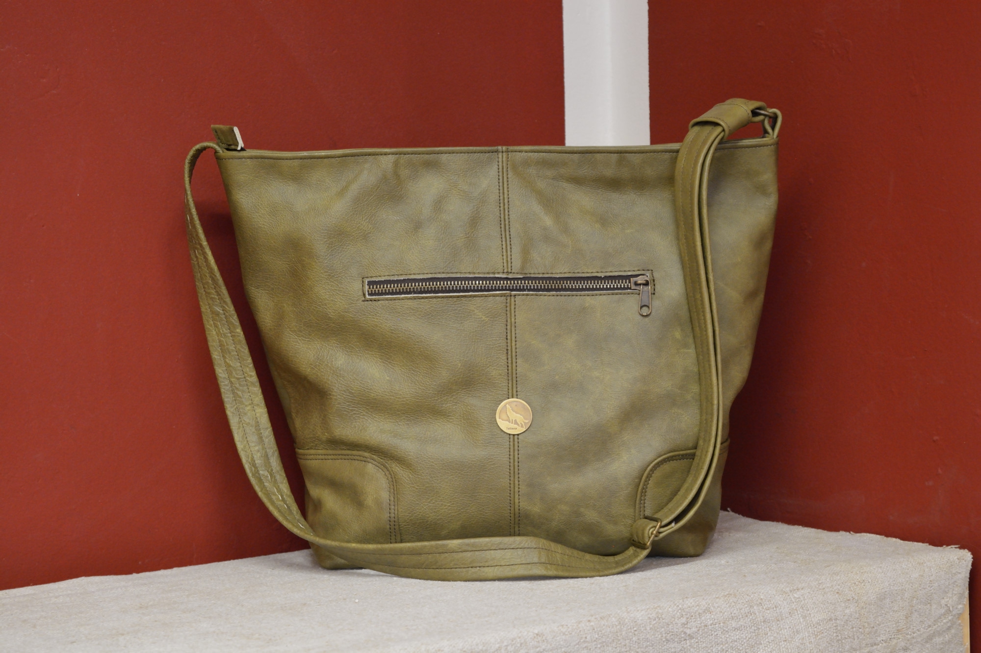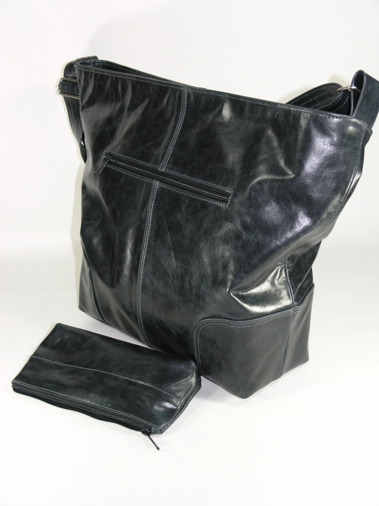 Dámská kožená kabelka Šárka - kvalitní dámská kožená kabelka vyrobená ručně z pravé hovězí kůže. Kožená kabelka má jen jedno hlavní oddělení, ve kterém se na zadní straně nachází větší kapsa uzavíratelná na zip a na přední straně jsou našity dvě menší kožené kapsičky, vhodné pro nošení mobilu, či peněženky.