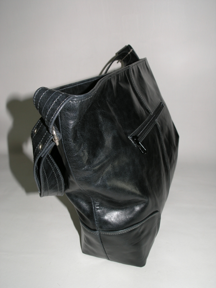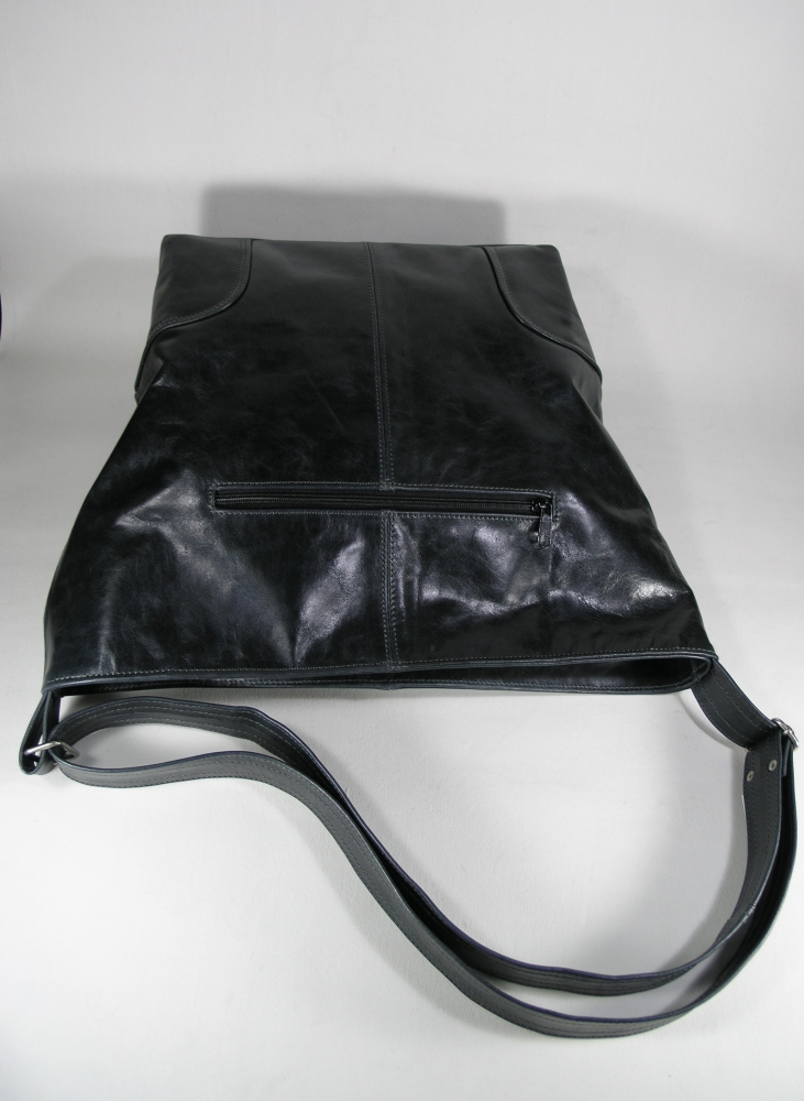 Kožená kabelka Šárka je uzavíratelná z vrchní strany na zip. Zvenčí zezadu je na kabelce našitá ještě jedna kapsa na zip. Spodní část kožené kabelky je v rozích ozdobně vyztužena kůži. Aby se dno kabelky při manipulaci tolik neopotřebovávalo je vyztuženo a chráněno kovovými nýty (puklemi).