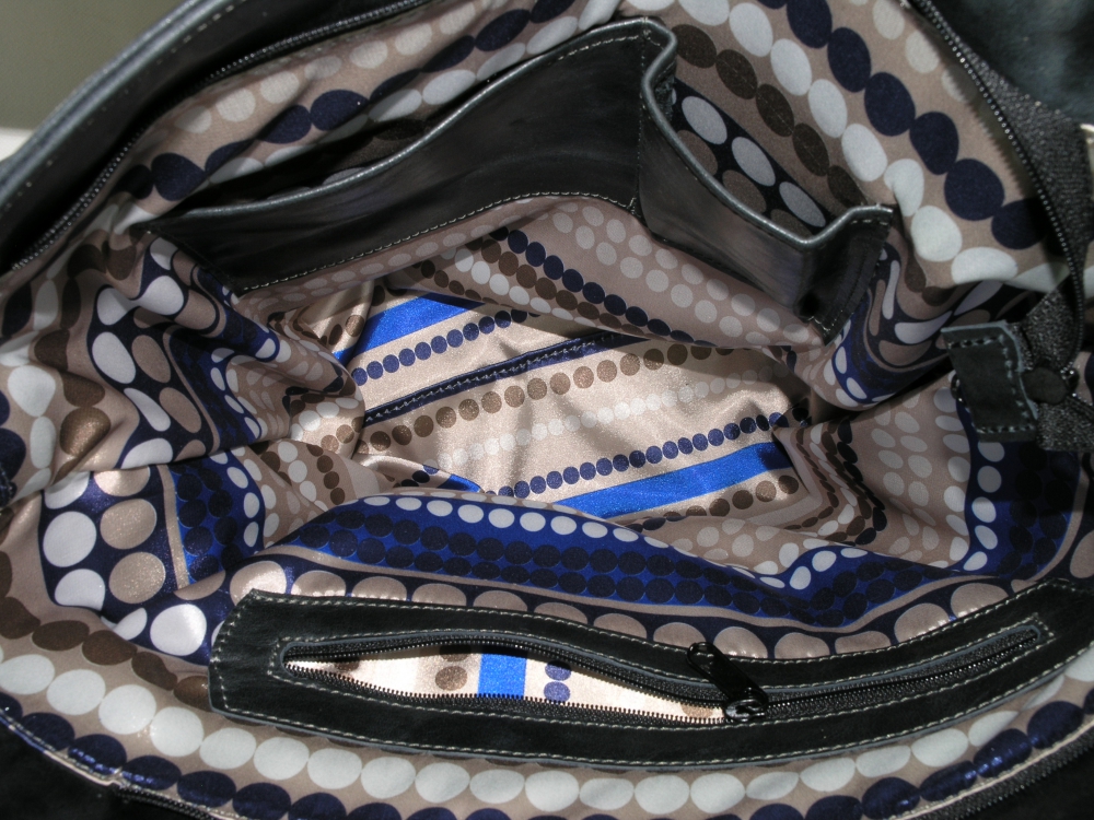 Vnitřek kabelky je navržen tak, aby v něm bylo možné pohodlně nosit dokumenty ve formátu A4.