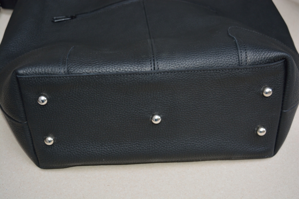 Kožená kabelka Šárka s přepážkou se uzavírá zipem. Zvenčí je na zadní straně kabelky našitá ještě jedna kapsa na zip. Spodní část kožené kabelky je v rozích ozdobně vyztužena kůži. Aby se dno kabelky při manipulaci tolik neopotřebovávalo je vyztuženo a chráněno kovovými nýty (puklemi).