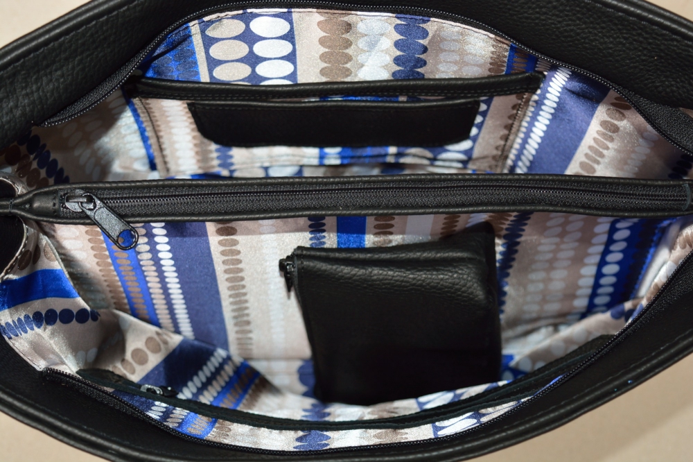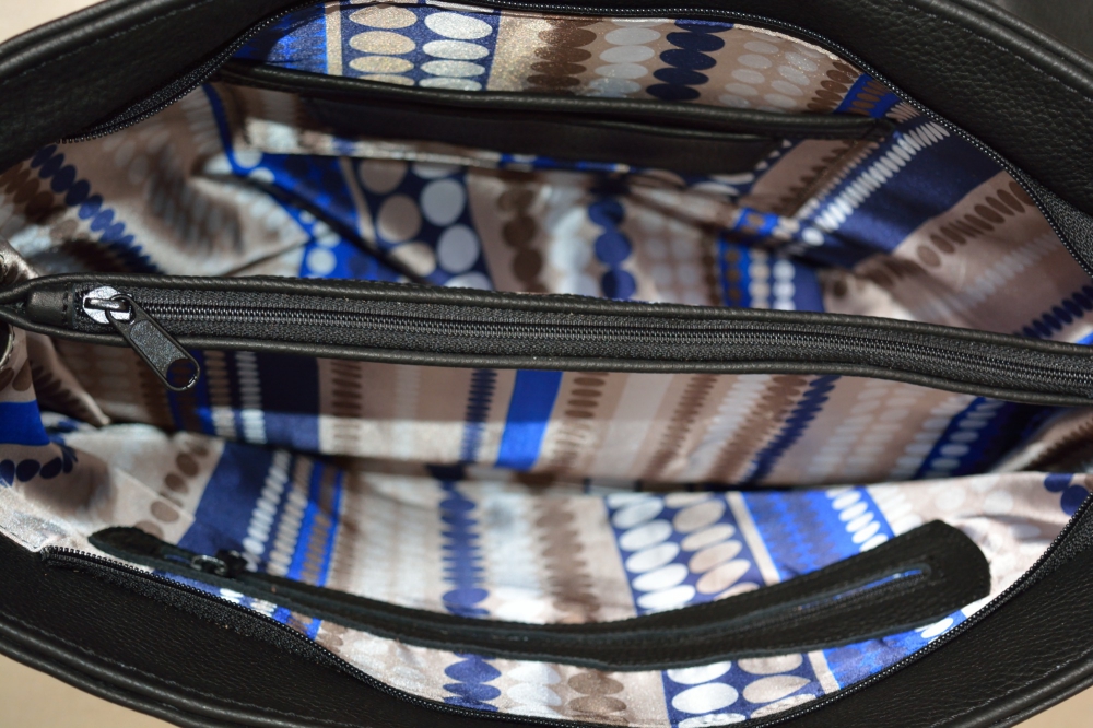 Vnitřek kabelky je navržen tak, aby v něm bylo možné pohodlně nosit dokumenty ve formátu A4.