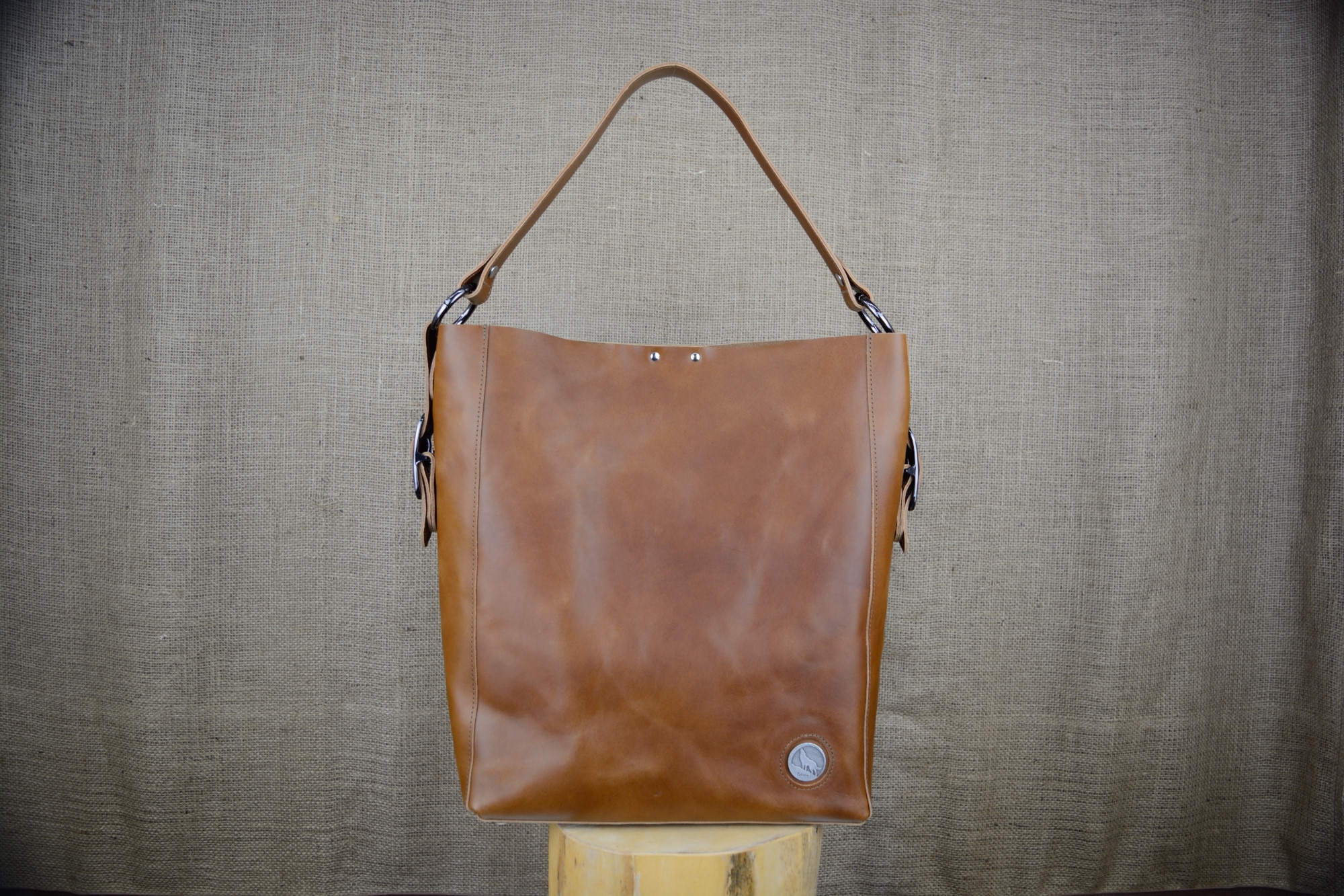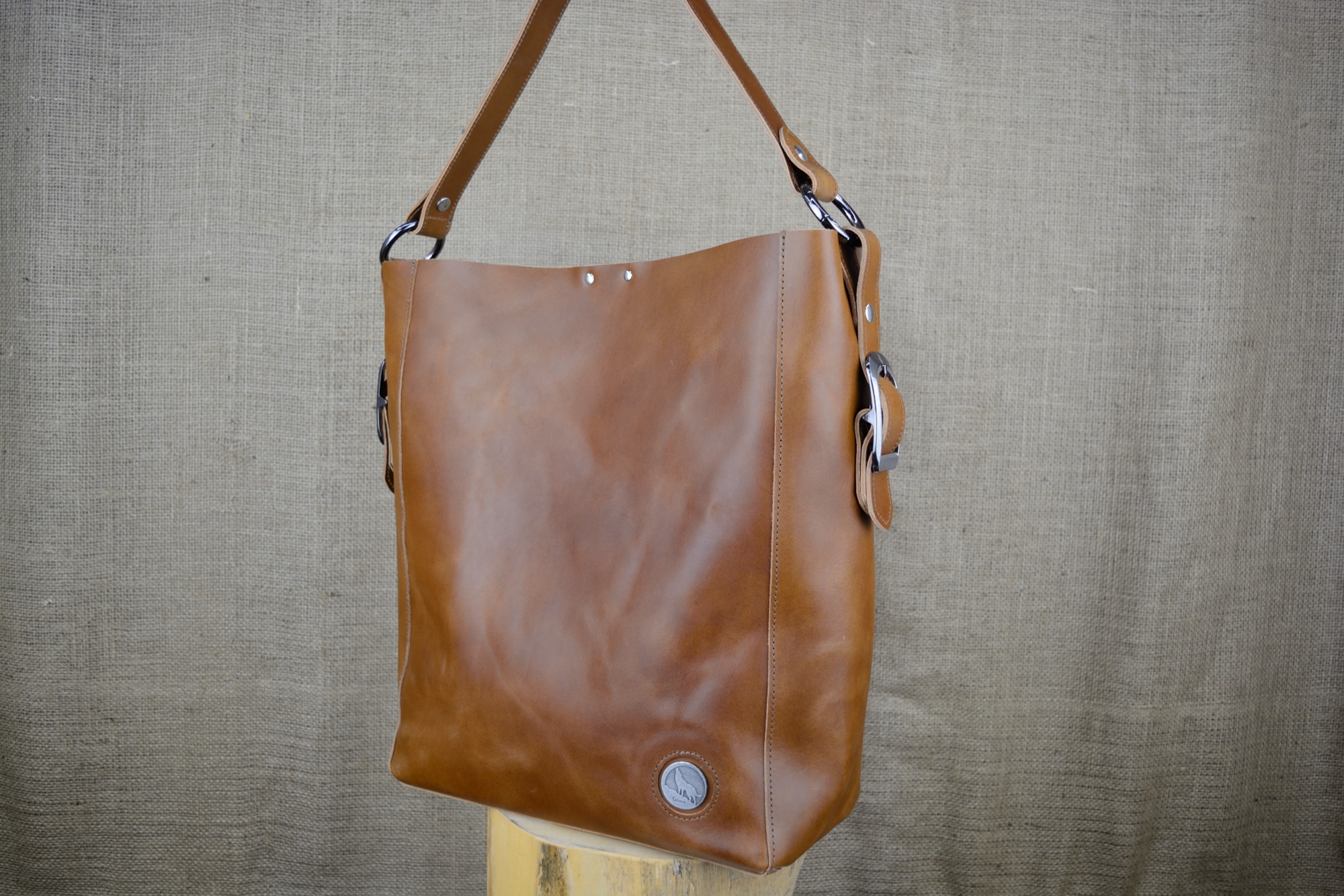 Dámská kožená taška Karin - kvalitní dámská kožená taška vyrobená ručně z pravé hovězí kůže. Kožená taška se uzavírá magnetem. Uvnitř tašky se nachází odepínací kapsa na zip z podšívky, na které jsou našité ještě dvě malé kapsičky. Na bočních částech se nacházejí ozdobné kožené jazýčky na přezku.