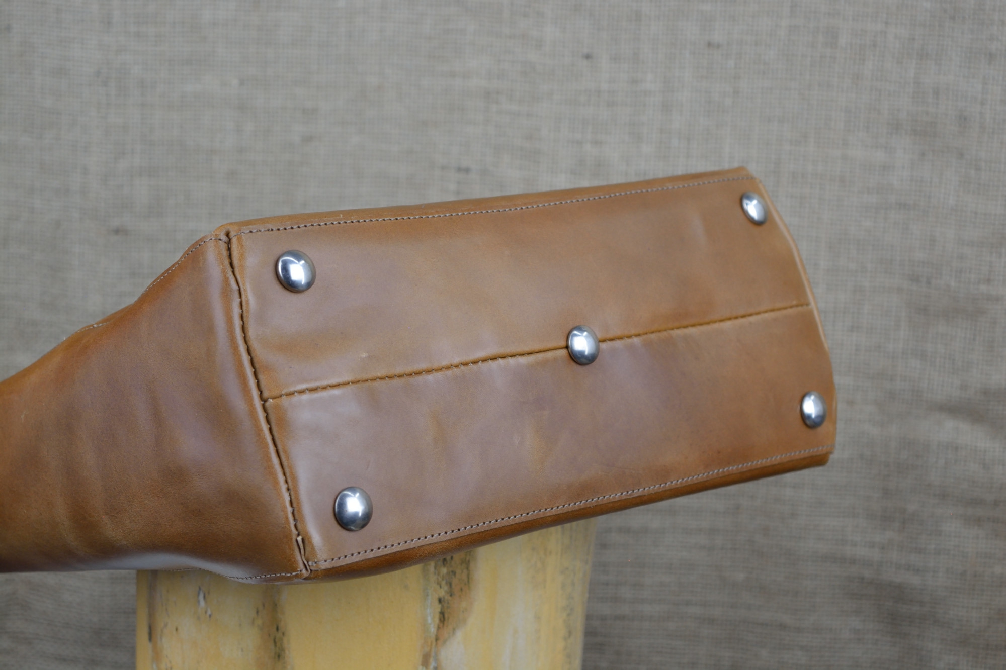 Aby se dno kabelky při manipulaci tolik neopotřebovávalo je vyztužené a chráněné kovovými nýty (puklemi).