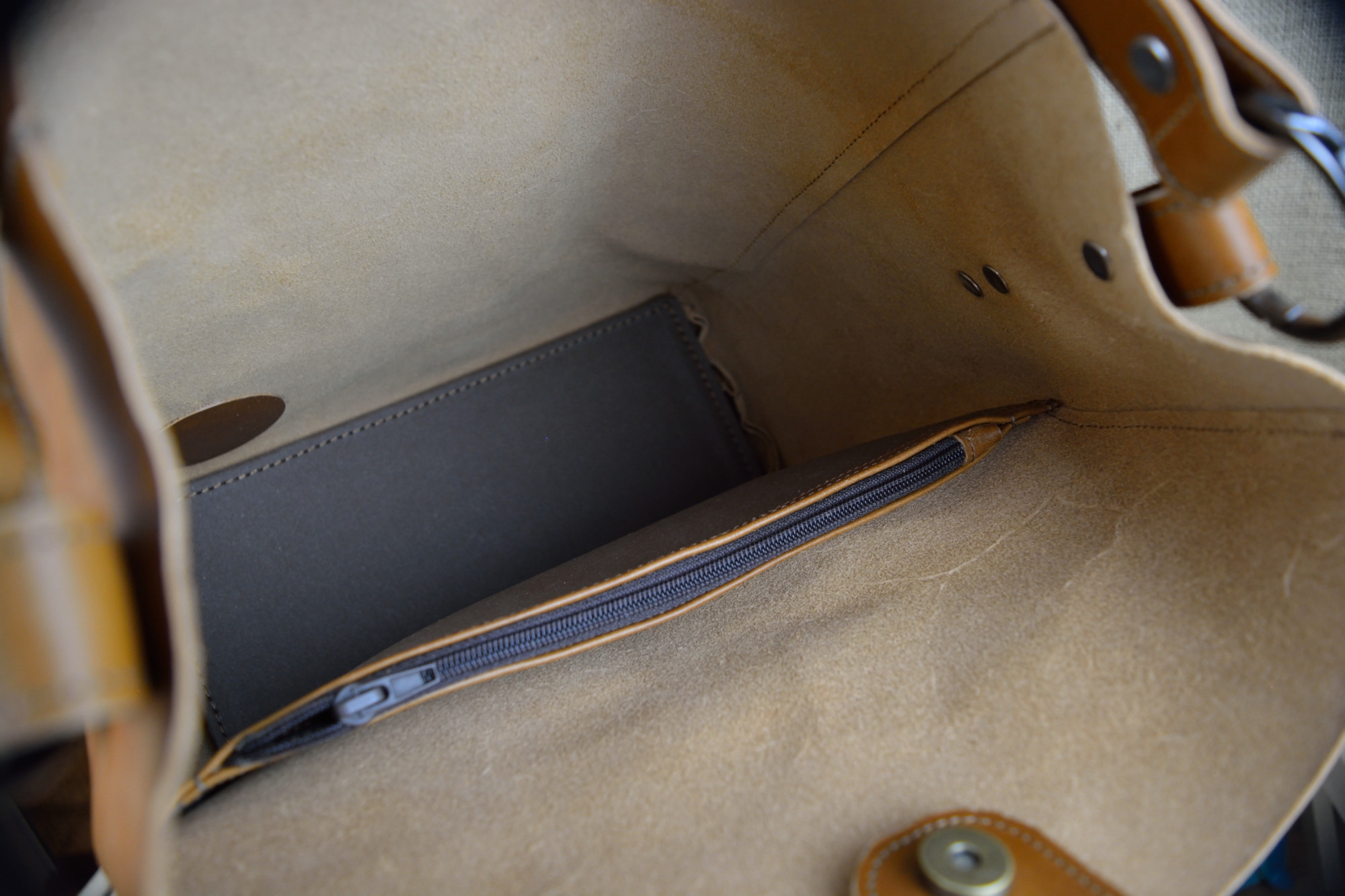 Vnitřek kabelky je navržen tak, aby v něm bylo možné pohodlně nosit dokumenty ve formátu A4.
