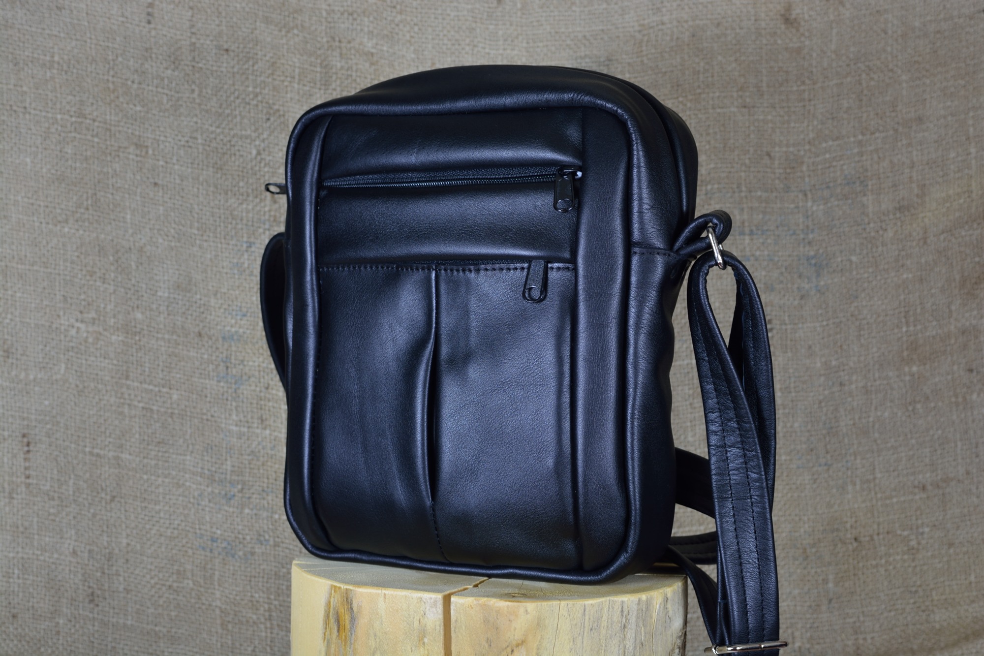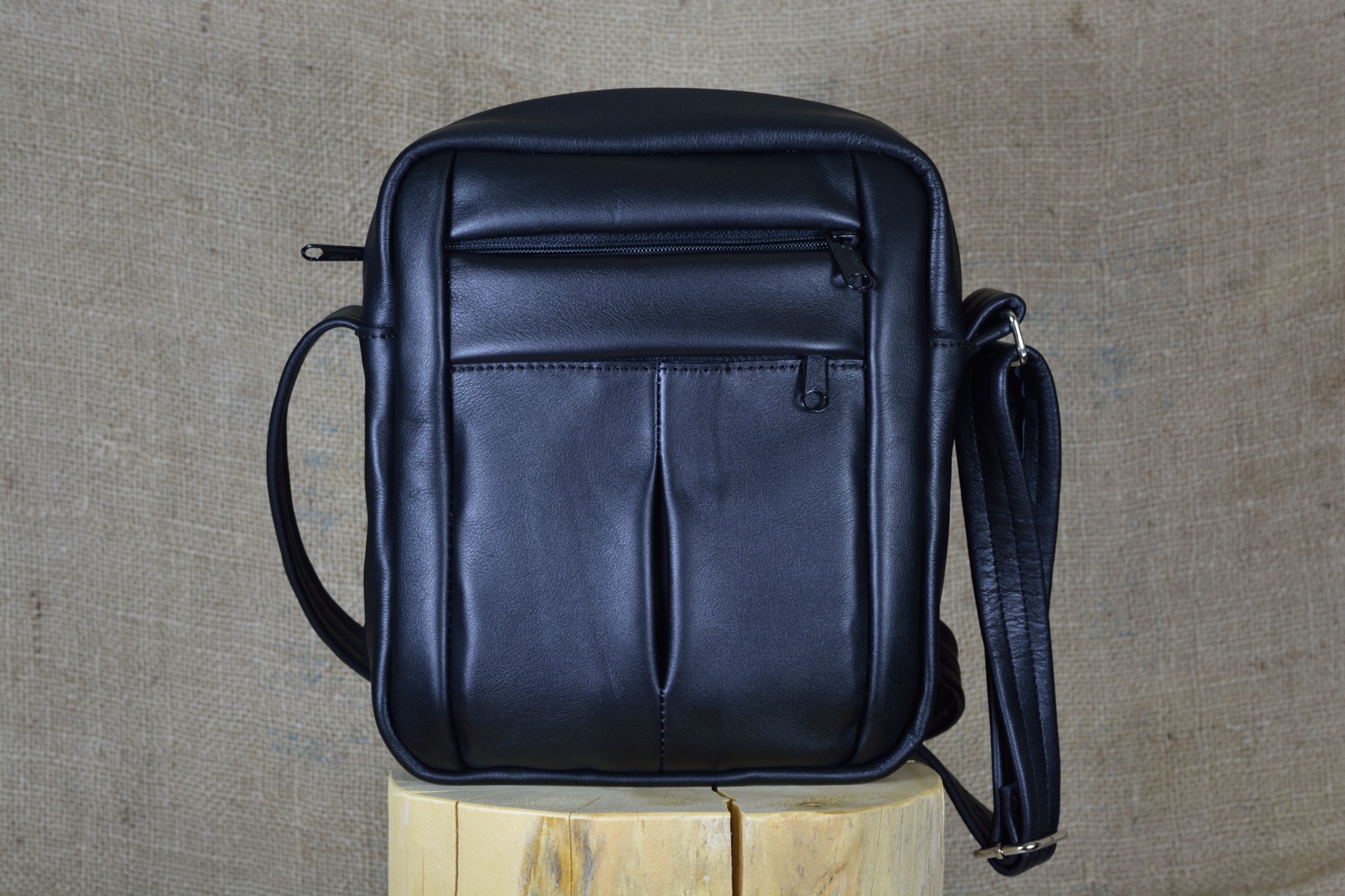 Kožená kabela Akse - kvalitní kožená kabela vyrobená ručně z pravé hovězí kůže. Kabela má jen jedno hlavní oddělení, ve kterém se zevnitř nachází na zadním díle jedna menší zipová kapsa a na předním díle jedna kapsa z podšívky. Zvenčí na předním díle kabely se nachází ještě dvě funkční zipové kapsy a na zadním díle jedna funkční zipová kapsa.