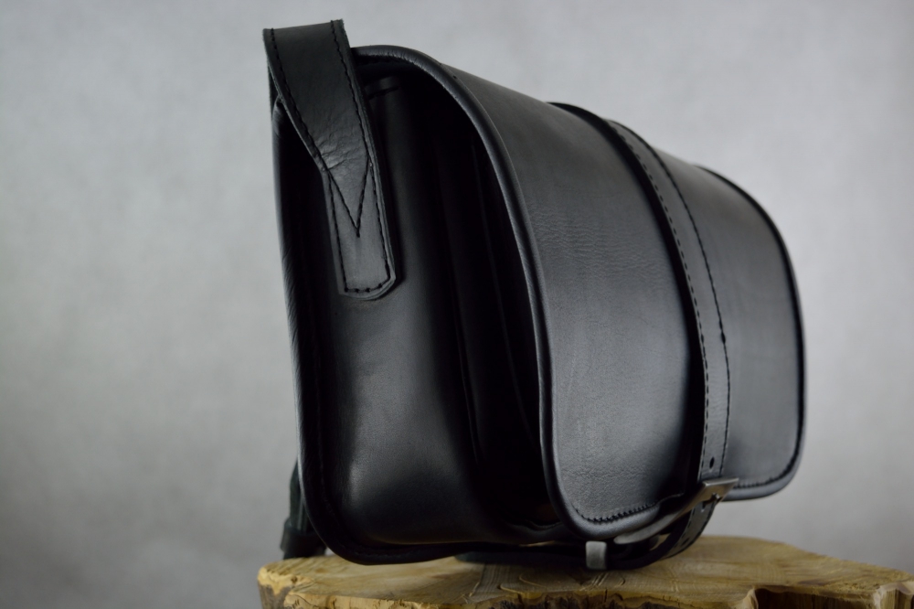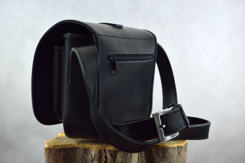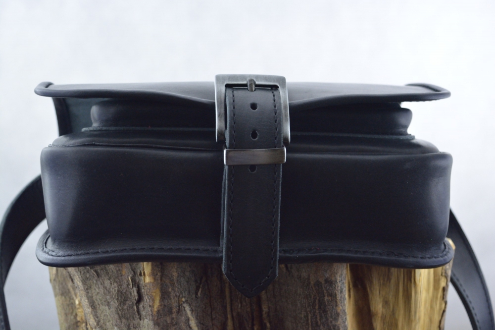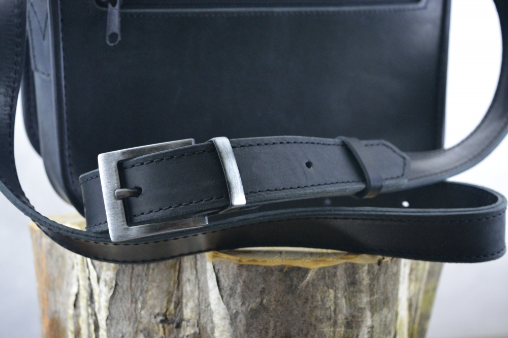 Kabela se uzavírá na přezku. Po stranách kabely je napevno našitý dlouhý kožený řemen s přezkou pro pohodlnou úpravu délky řemene.