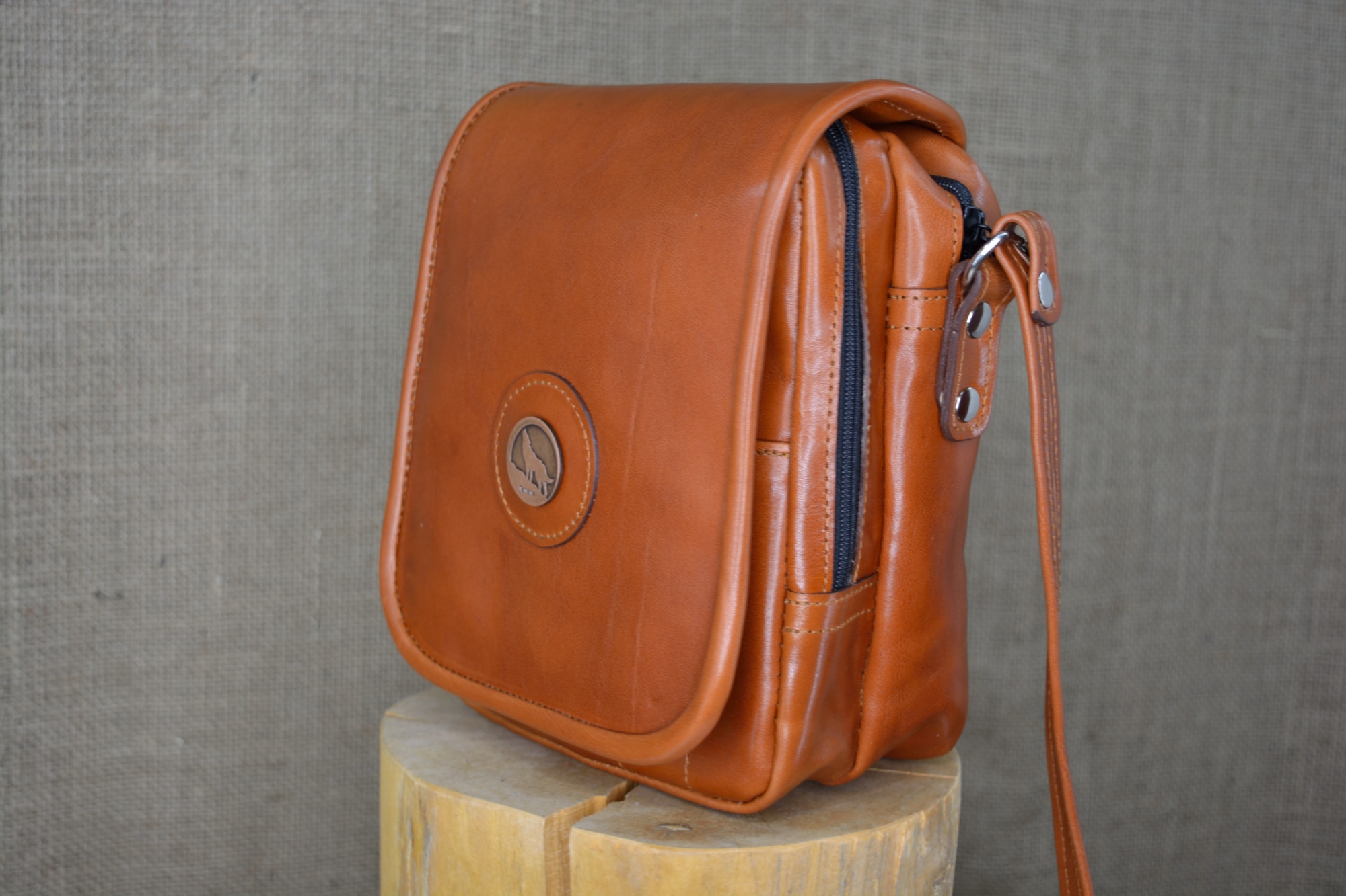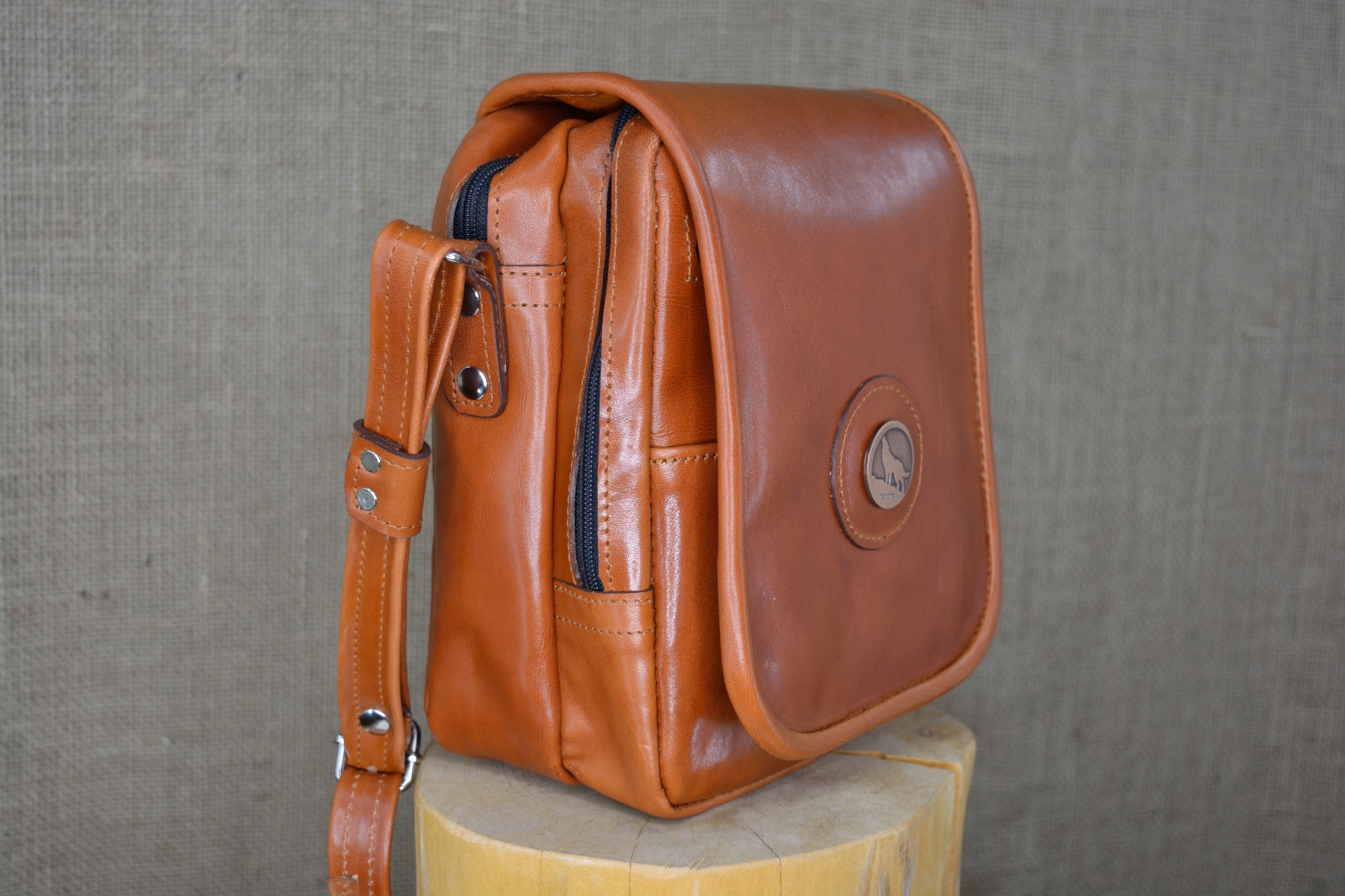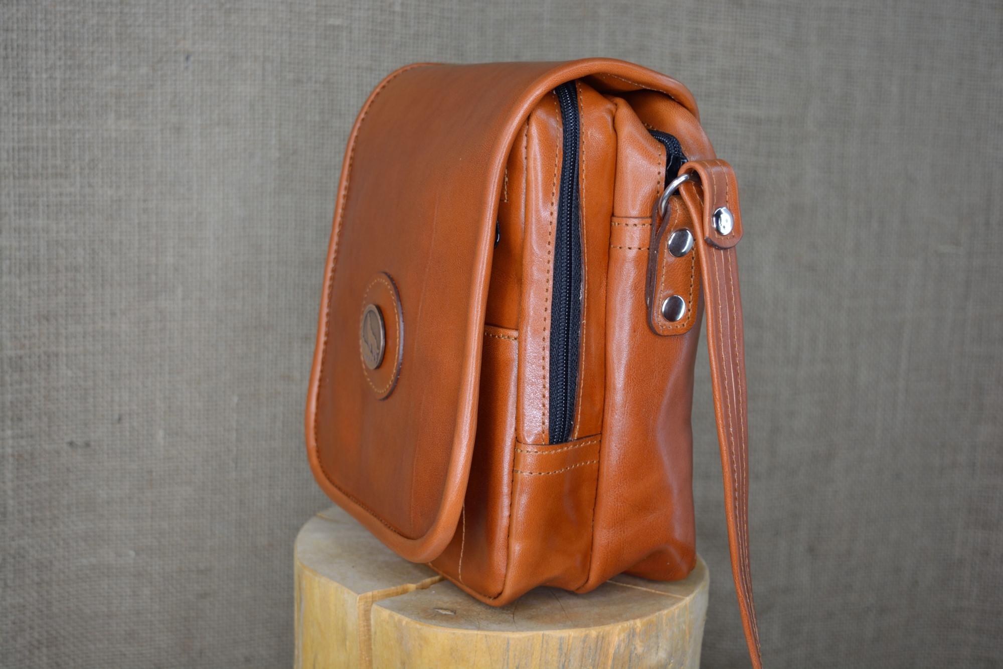 Kožená kabela Dorn - kvalitní kožená kabela vyrobená ručně z pravé hovězí kůže. Kabela má dvě hlavní oddělení, které jsou uzavíratelné na zip. Na předním dílu pod klapnou má kabela ještě jednu zipovou kapsičku, malou kapsu na drobnosti a dvě kapsičky na tužky. Celá kabela se ještě uzavírá klapnou na magnet. Na klapně zvenčí má kabela našite ozdobné logo.