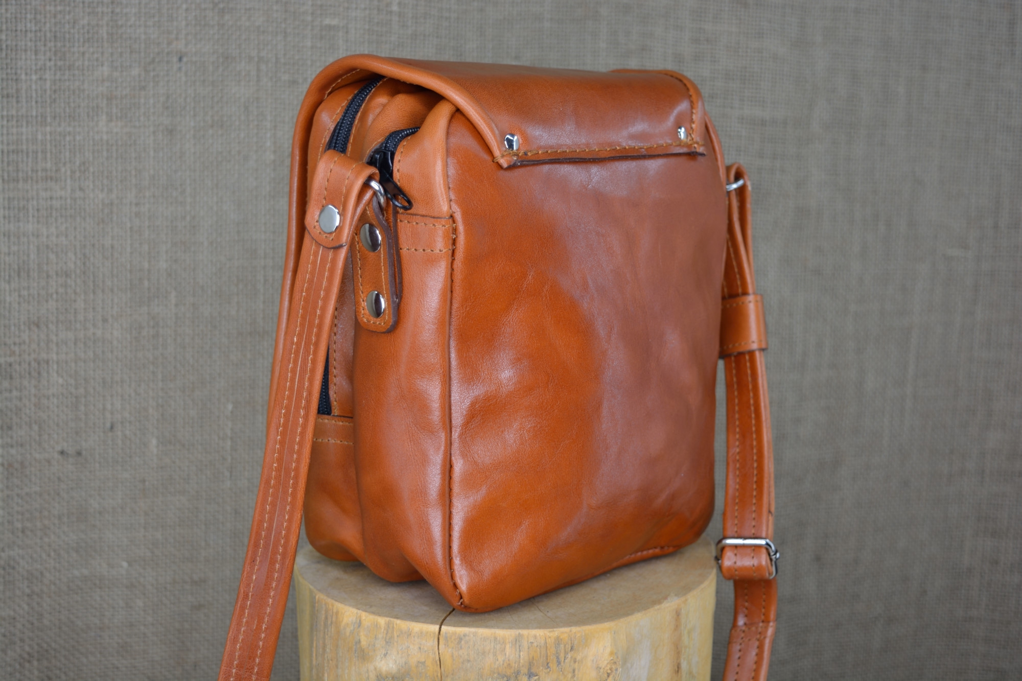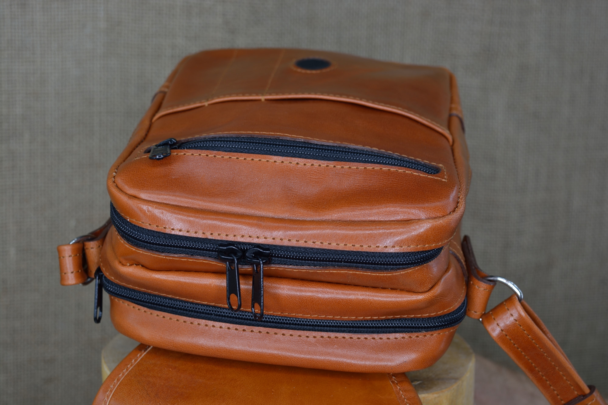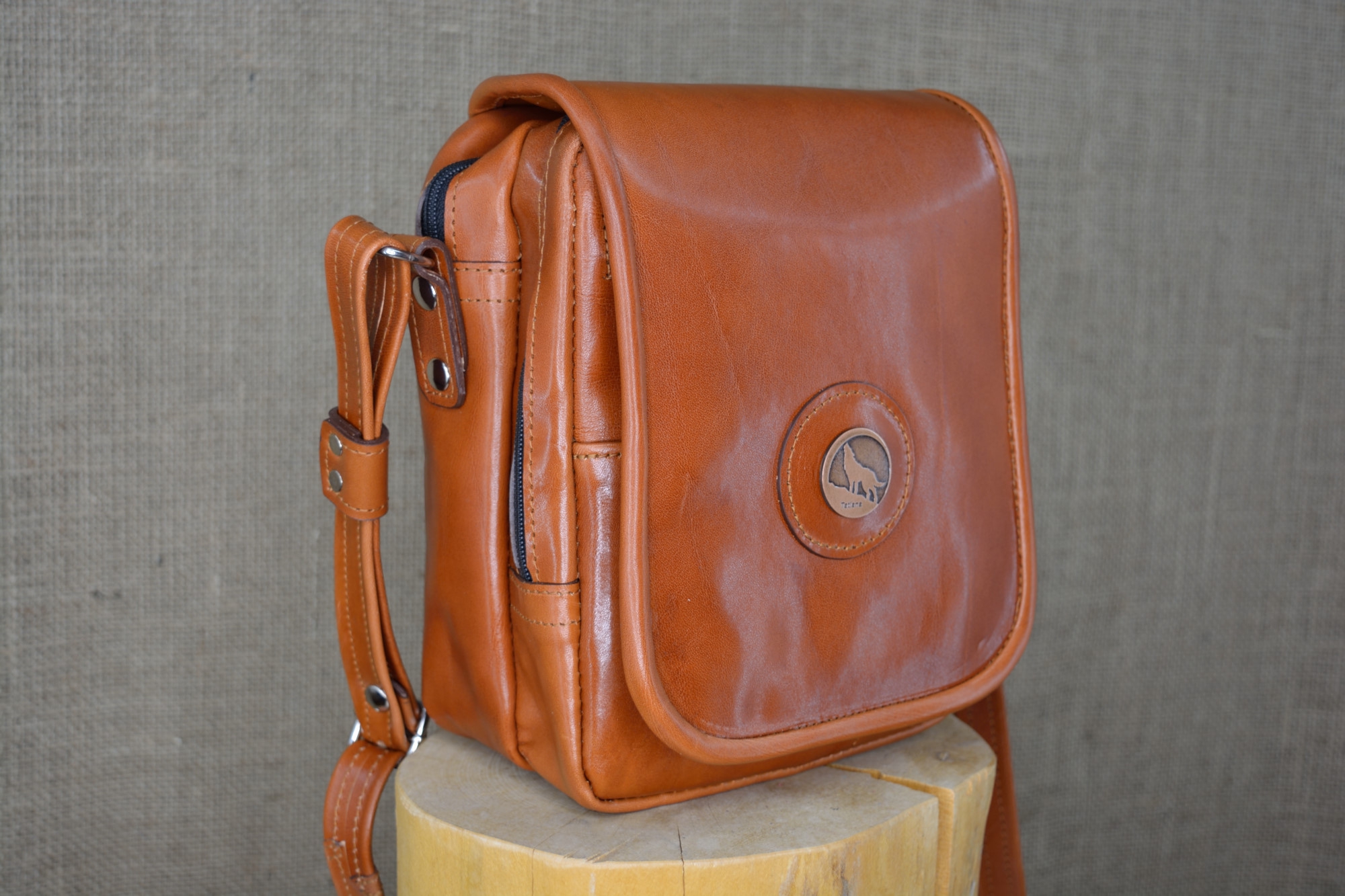 Kožená kabela Dorn - kvalitní kožená kabela vyrobená ručně z pravé hovězí kůže. Kabela má dvě hlavní oddělení, které jsou uzavíratelné na zip. Na předním dílu pod klapnou má kabela ještě jednu zipovou kapsičku, malou kapsu na drobnosti a dvě kapsičky na tužky. Celá kabela se ještě uzavírá klapnou na magnet. Na klapně zvenčí má kabela našite ozdobné logo.