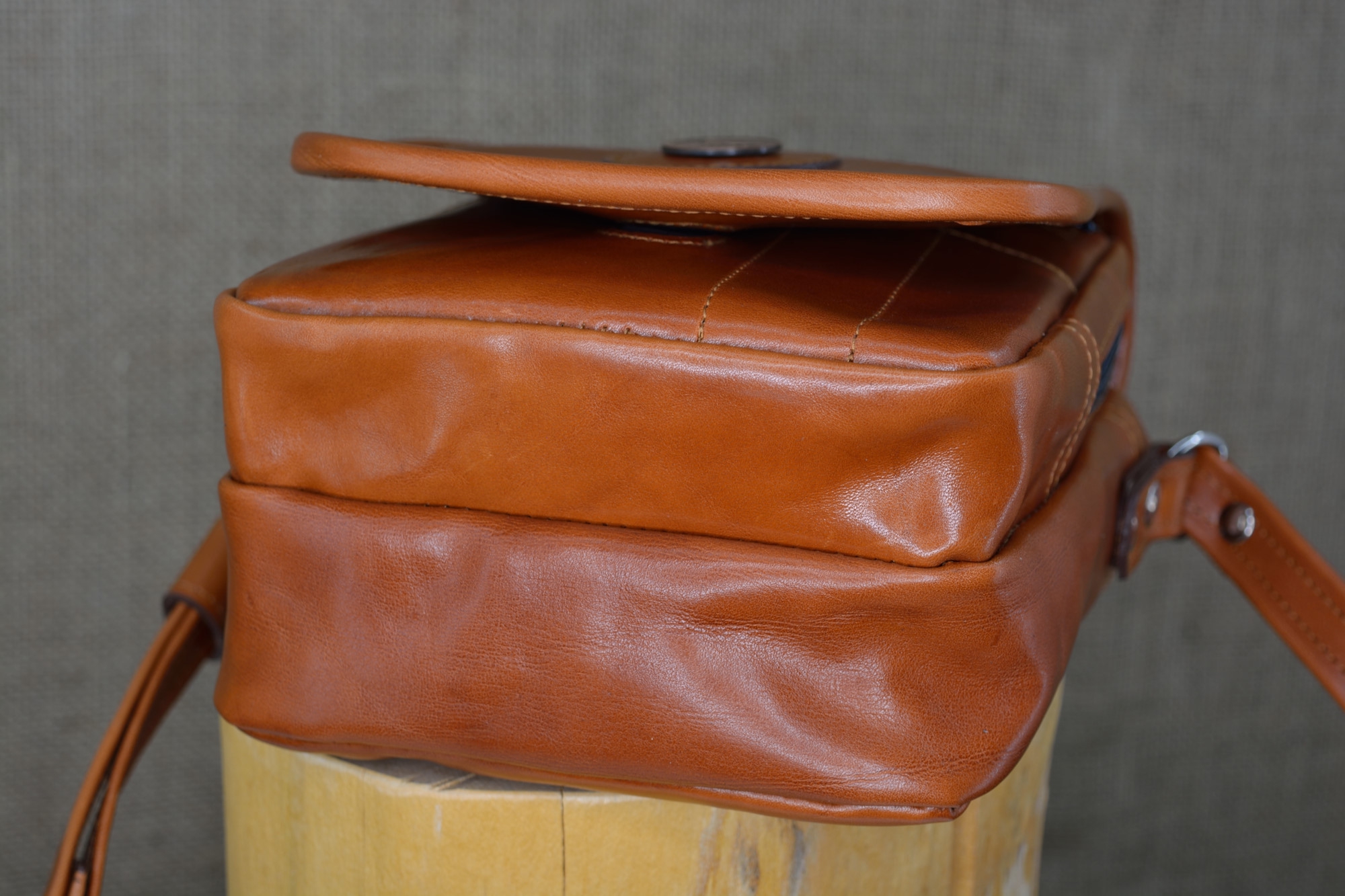Kabela je vybavena dlouhým koženým řemenem s přezkou pro pohodlnou úpravu délky řemenu.