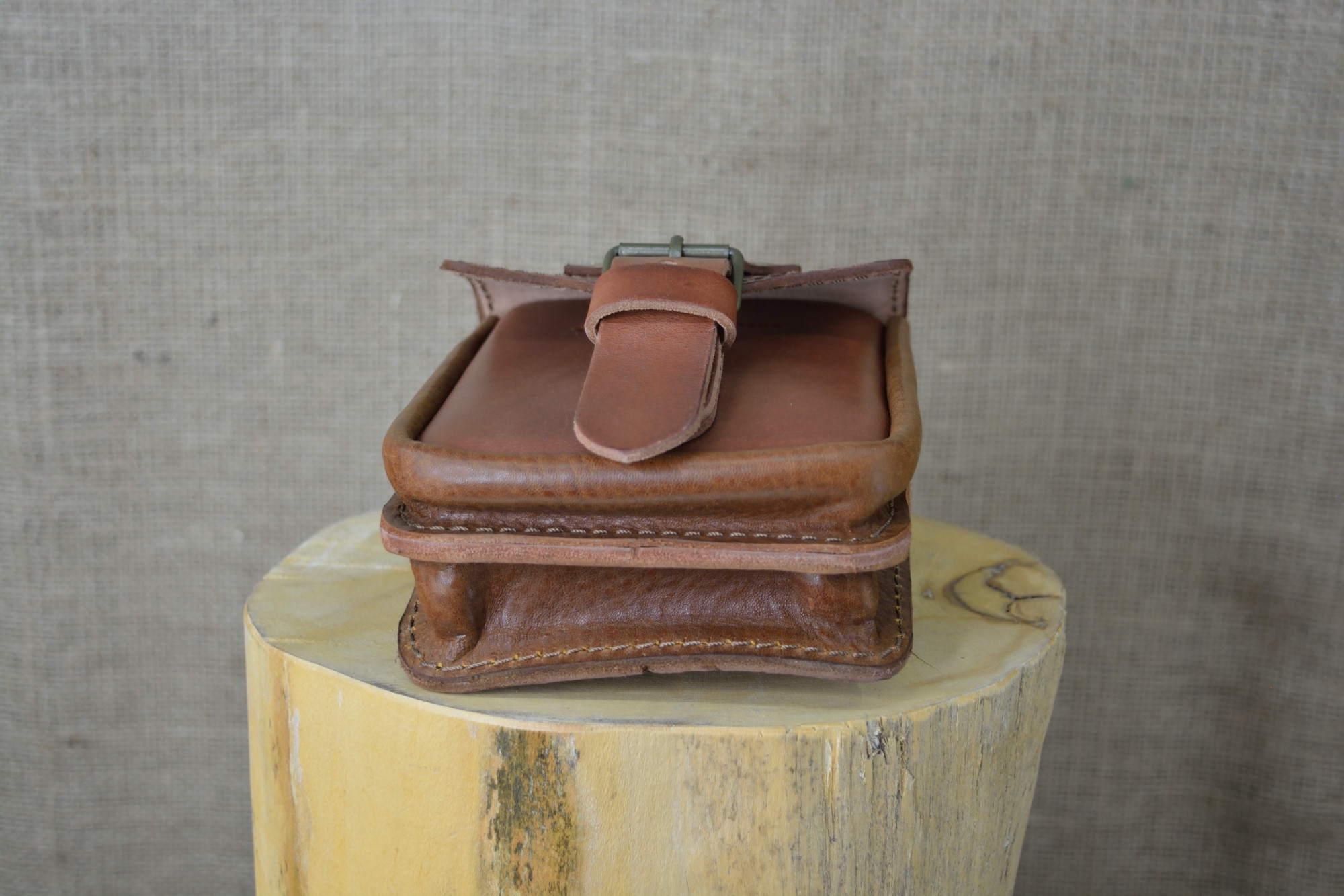 Kožená kapsa má vnější rozměry V 16 cm x Š 12,5 cm x H 6 cm.