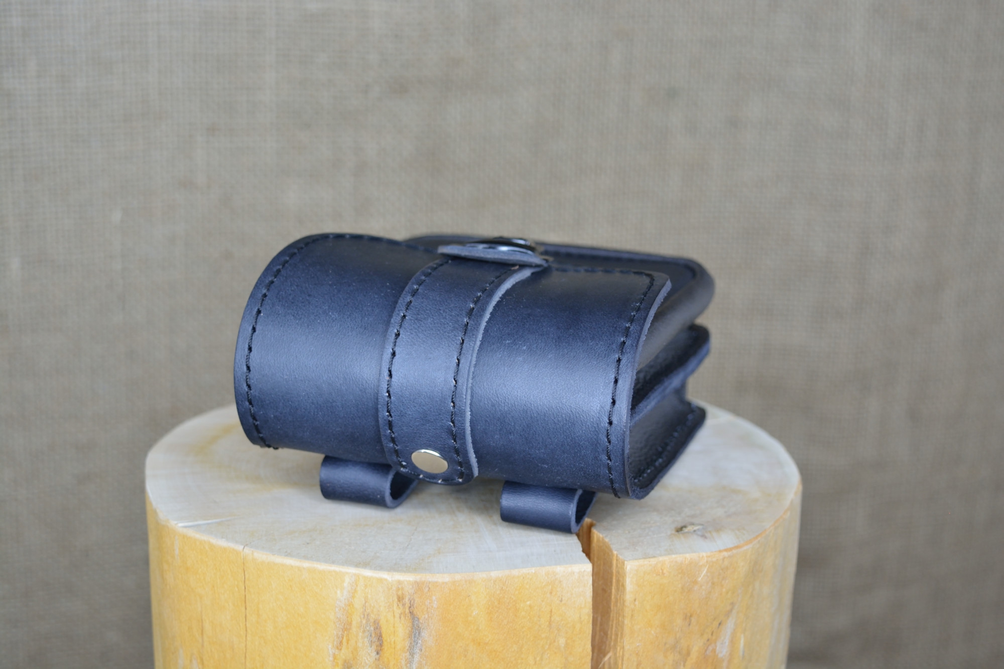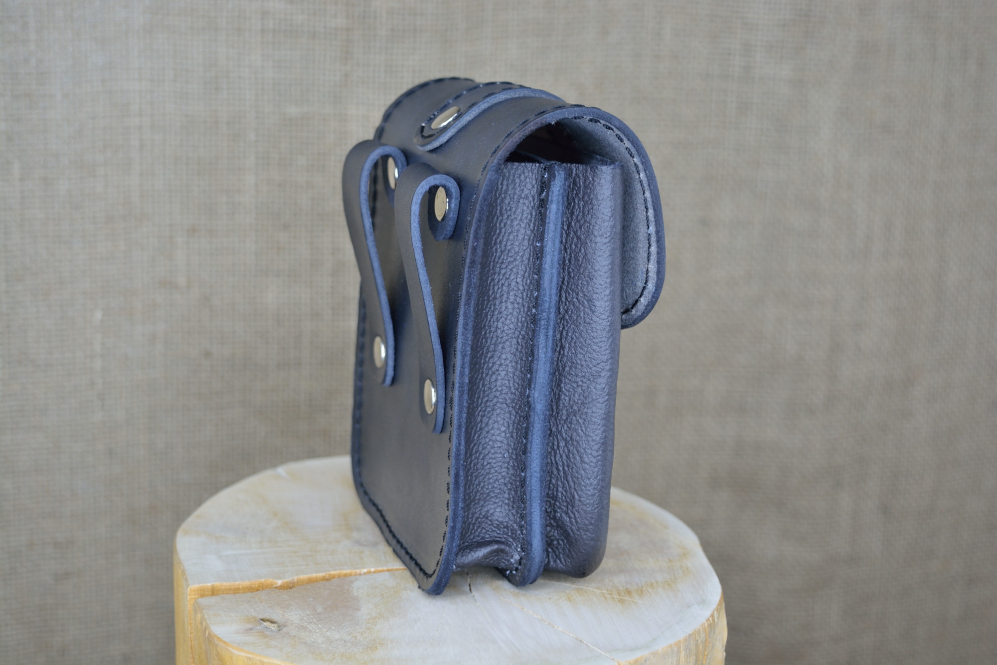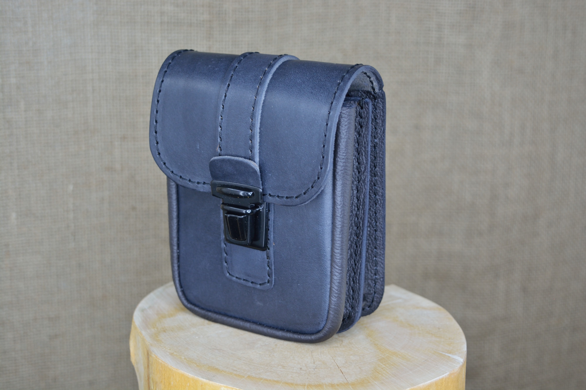 Kožená kapsa má vnitřní rozměry přední foch V 13,5 cm x Š 10 cm x H 3 cm, přední foch V 13,5 cm x Š 10 cm x H 2 cm.