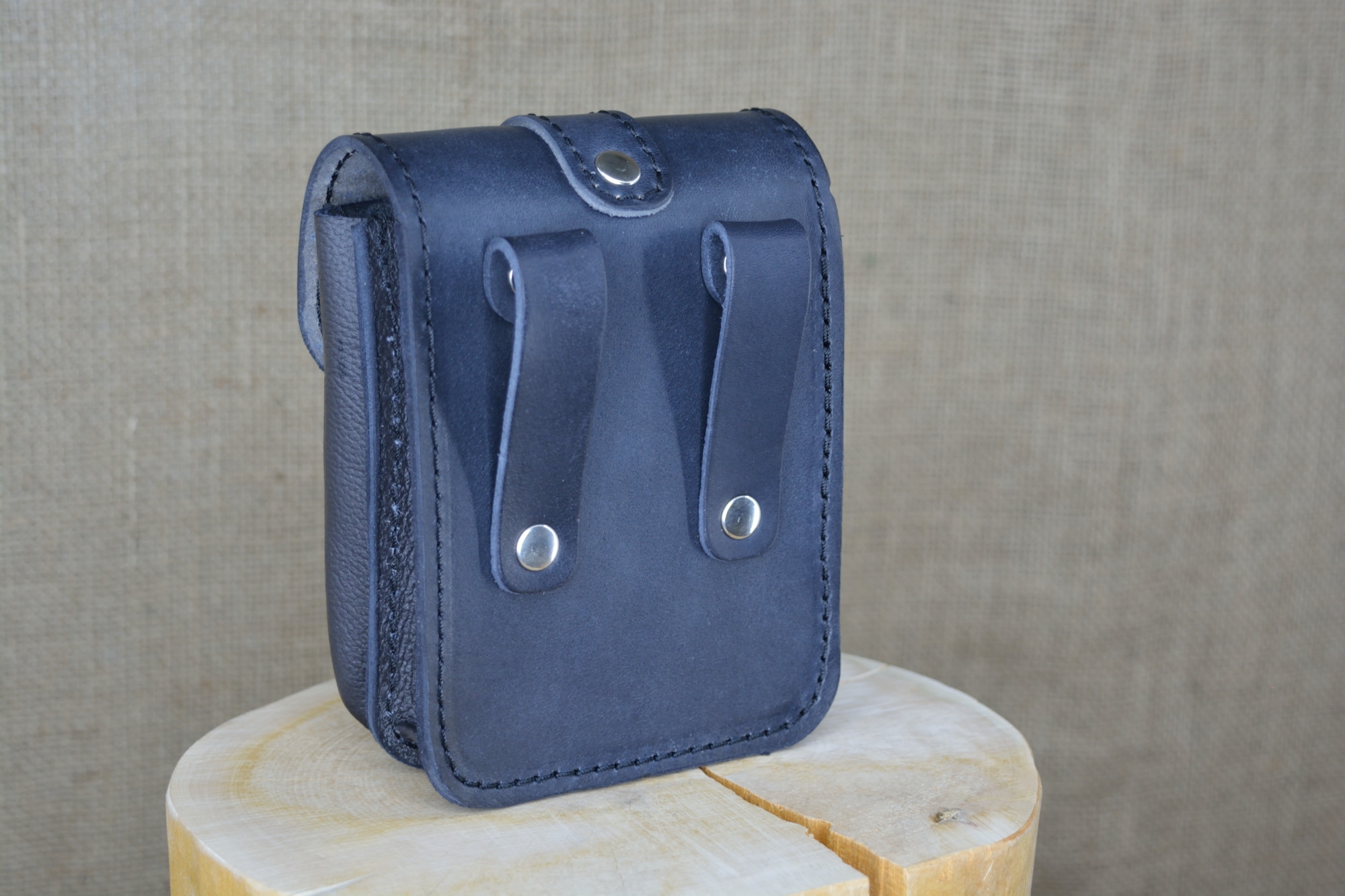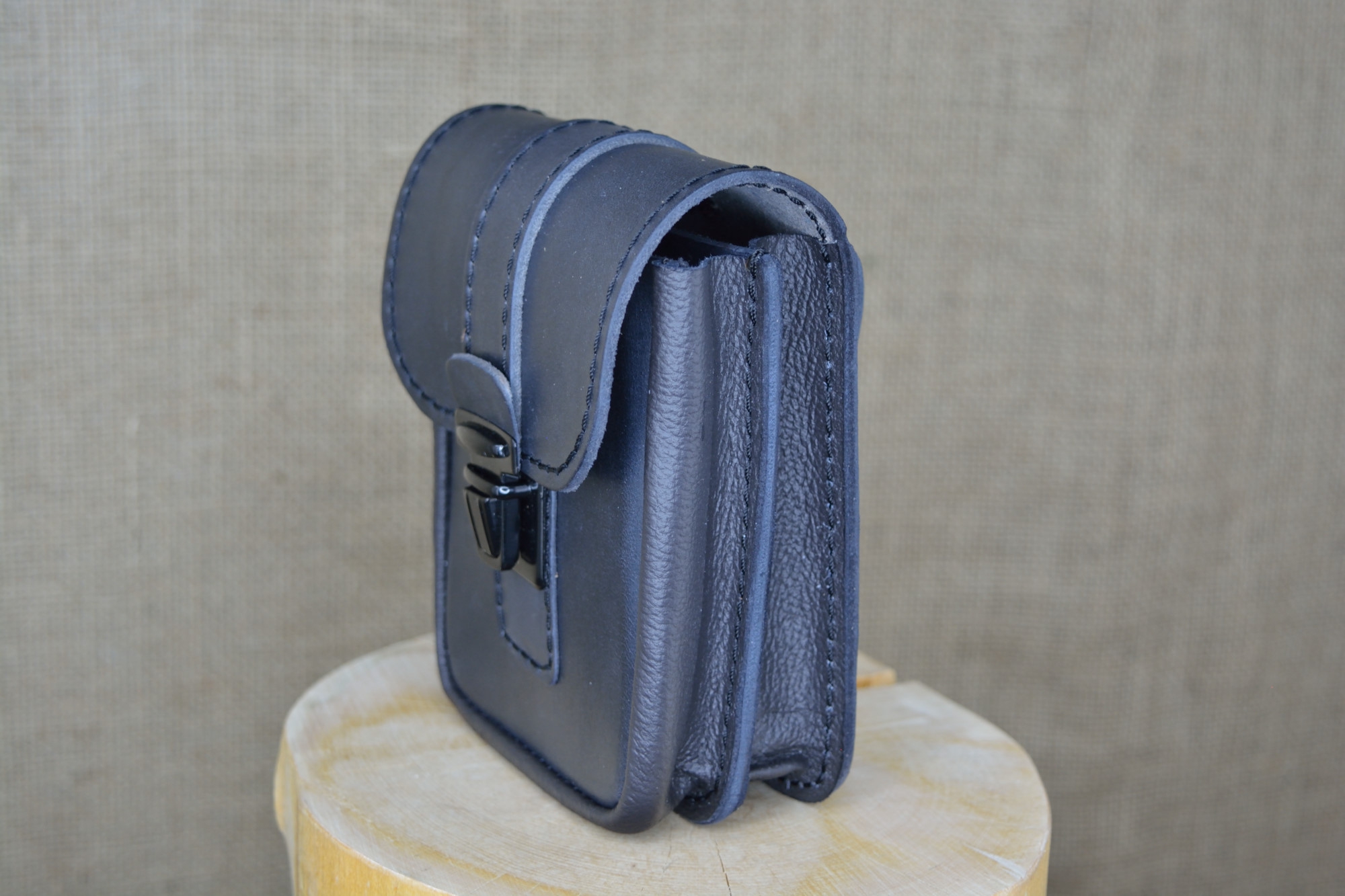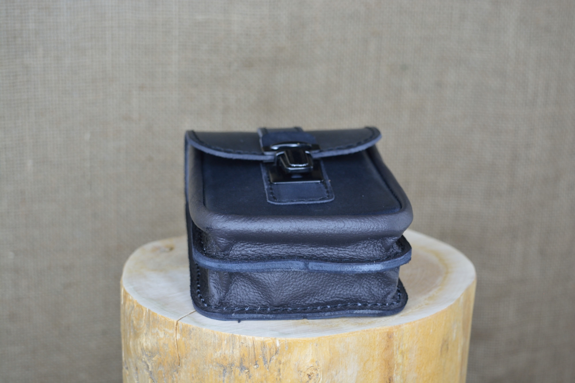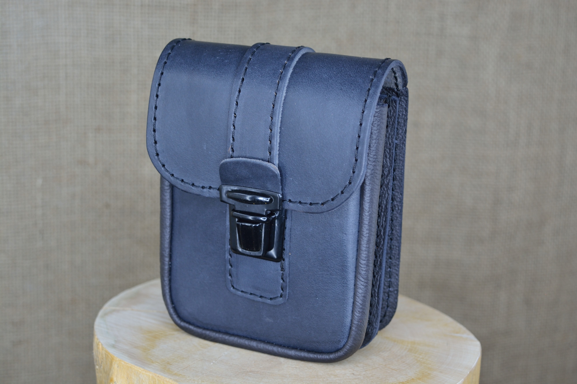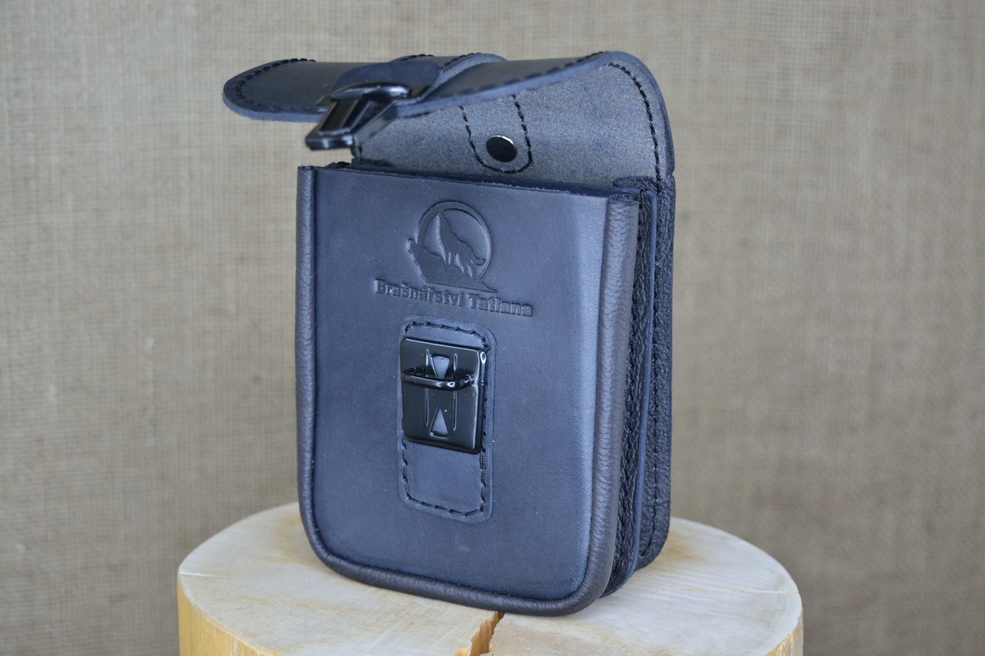 Kožená kapsa dvojitá na výšku na zámeček - kvalitní kožená kapsa vyrobená ručně z pravé hovězí kůže. Kožená kapsa se skládá ze dvou přihrádek. Zapínání kapsy je řešeno na zámeček. Pomocí zámečku se kapsa snadno otevírá. Na zadní straně má dvě kožená poutka pro uchycení na opasek.
