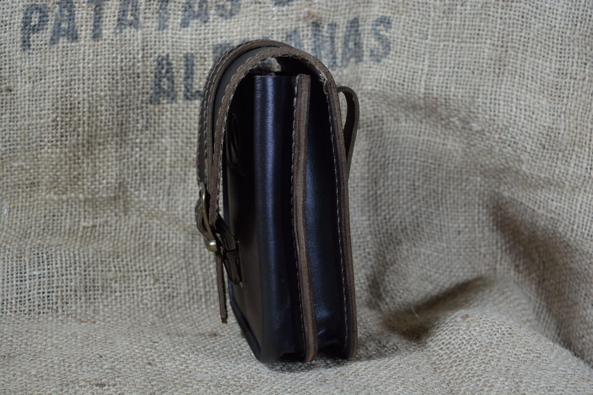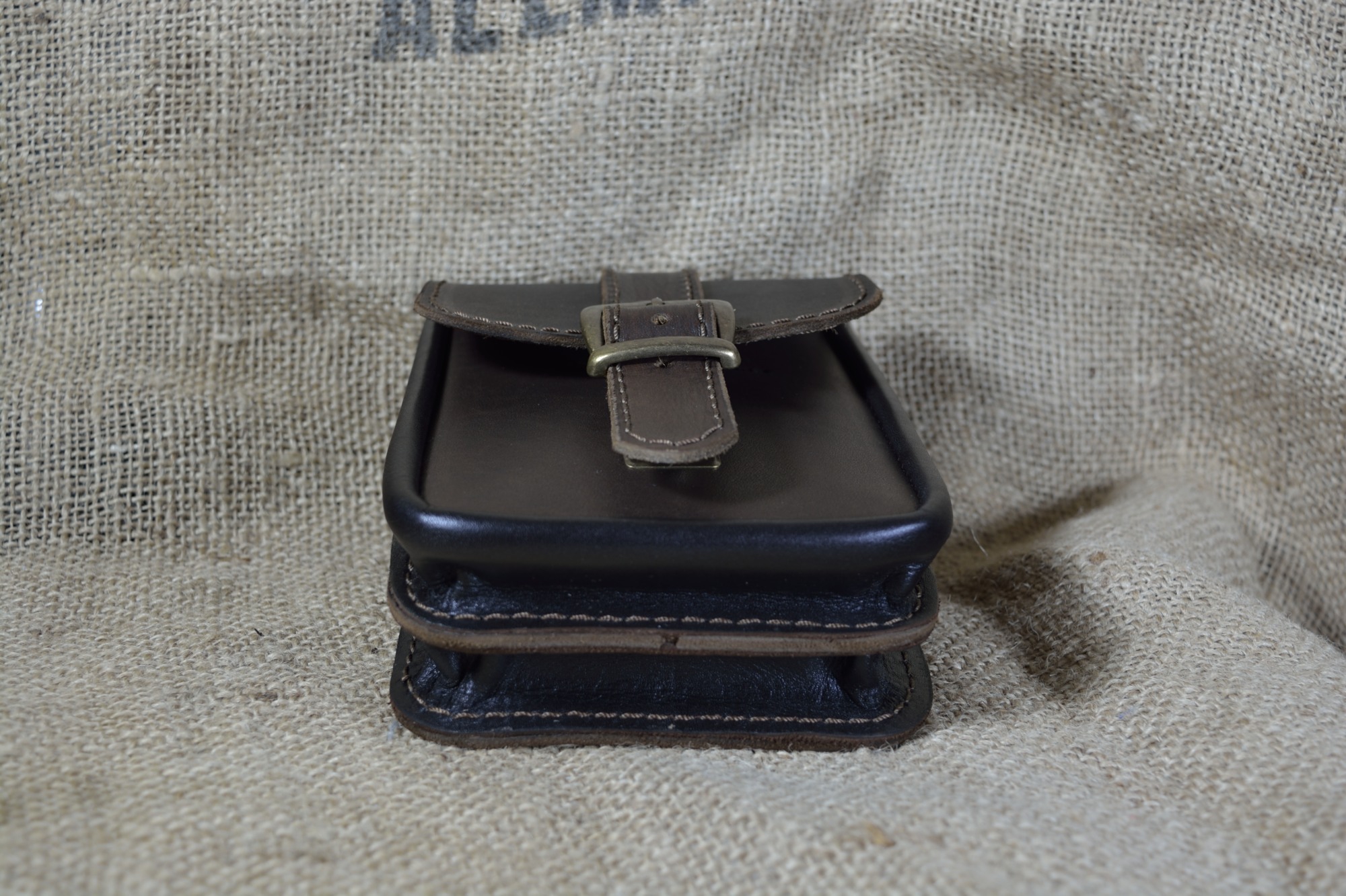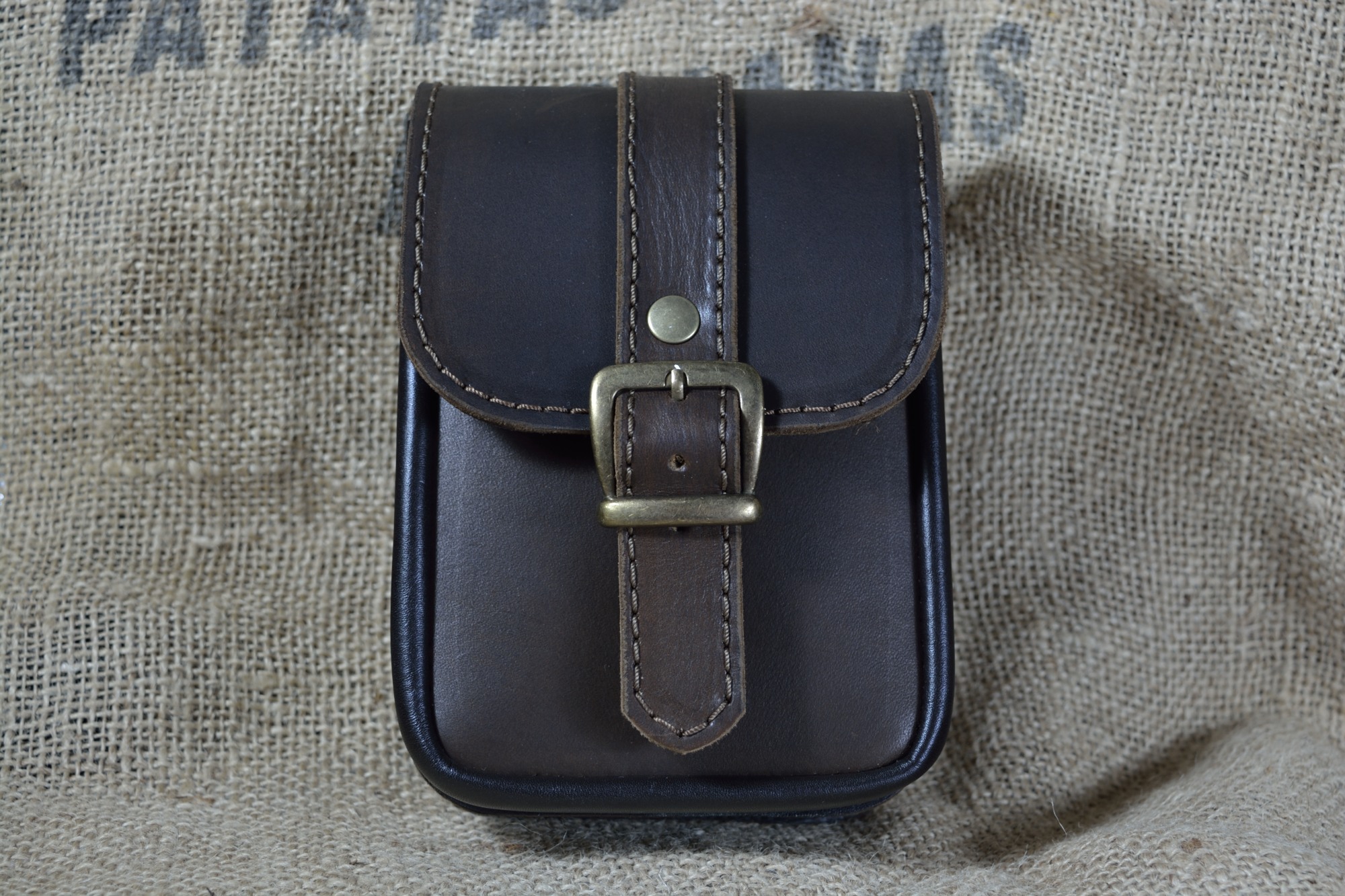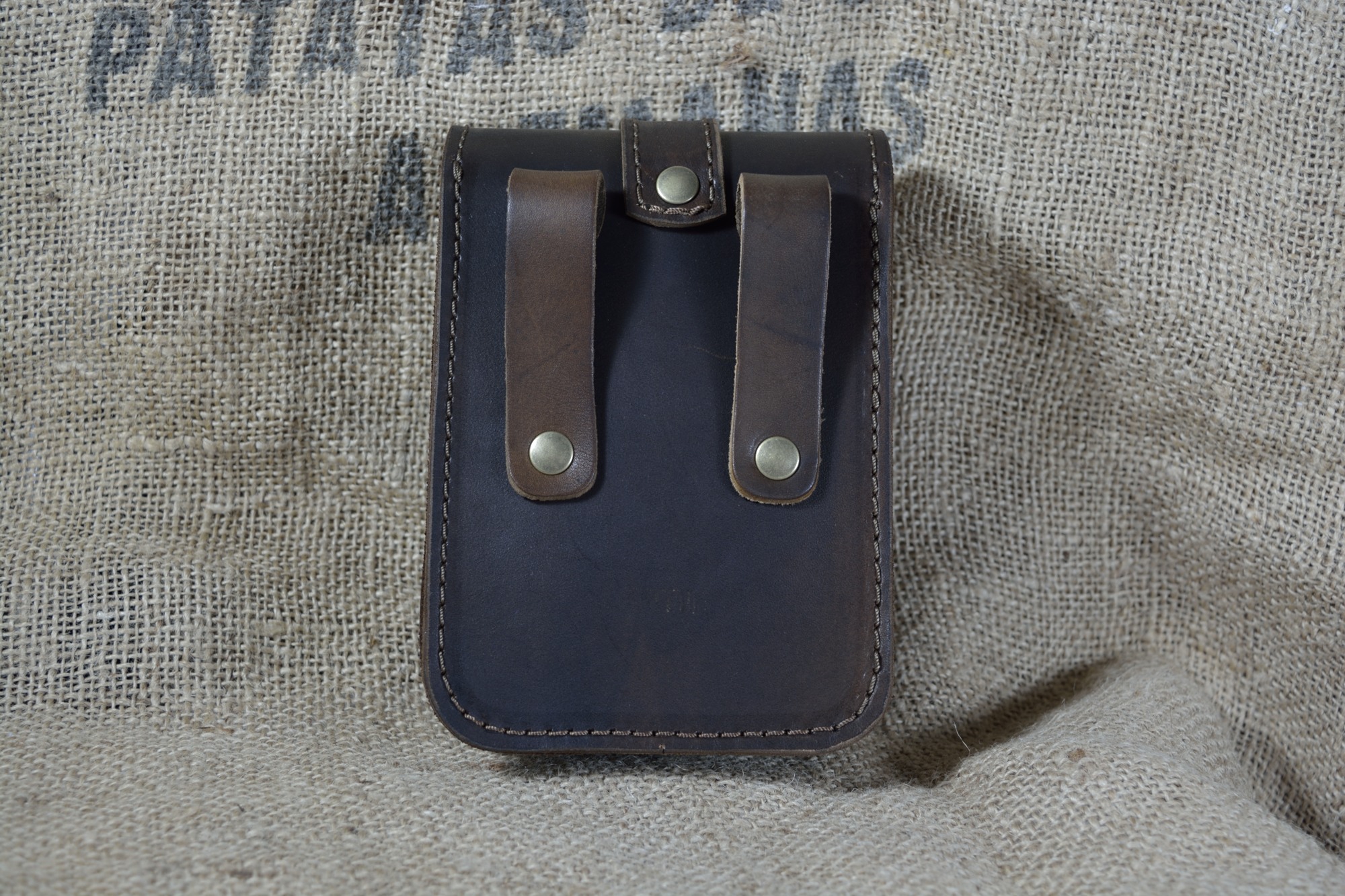 Kožená kapsa dvojitá na výšku s kombinovaným zapínáním