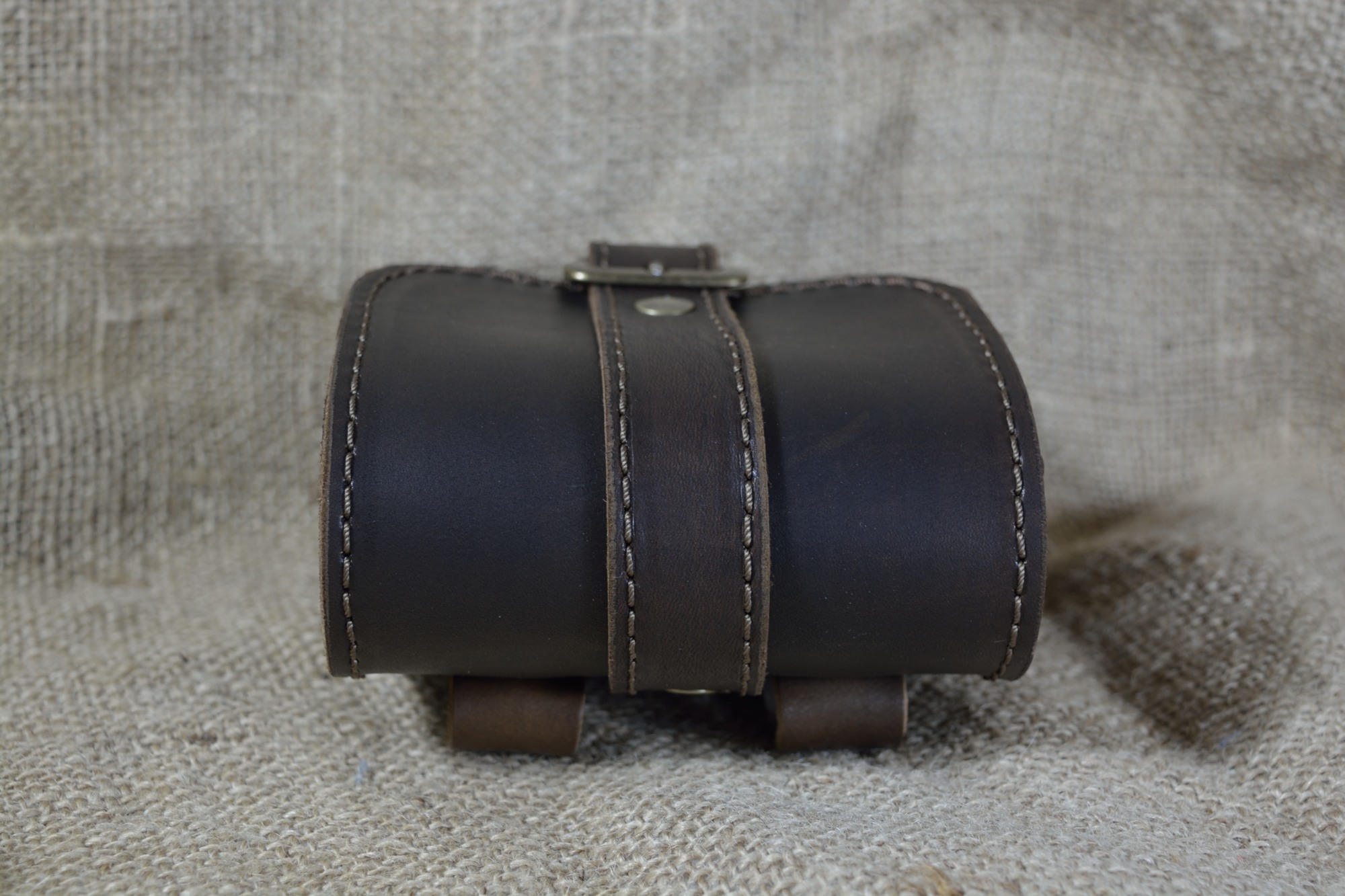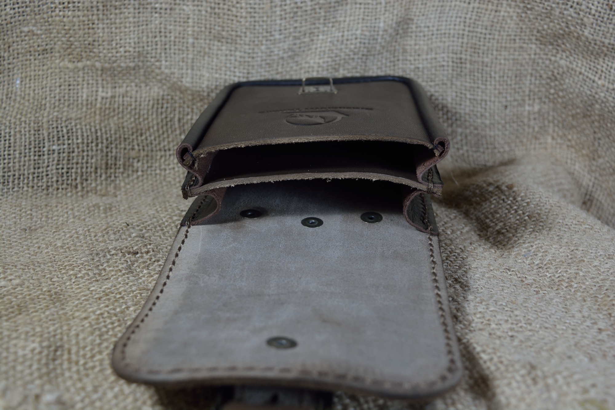 Kožená kapsa dvojitá na výšku s kombinovaným zapínáním - kvalitní kožená kapsa vyrobená ručně z pravé hovězí kůže. Kožená kapsa se skládá ze dvou přihrádek. Zapínání kapsy je řešeno kombinací zámečku a přezky. Pomocí zámečku se kapsa snadno otevírá a v případě potřeby se dá pomocí přezky zvětšit. Na zadní straně má dvě kožená poutka pro uchycení na opasek.