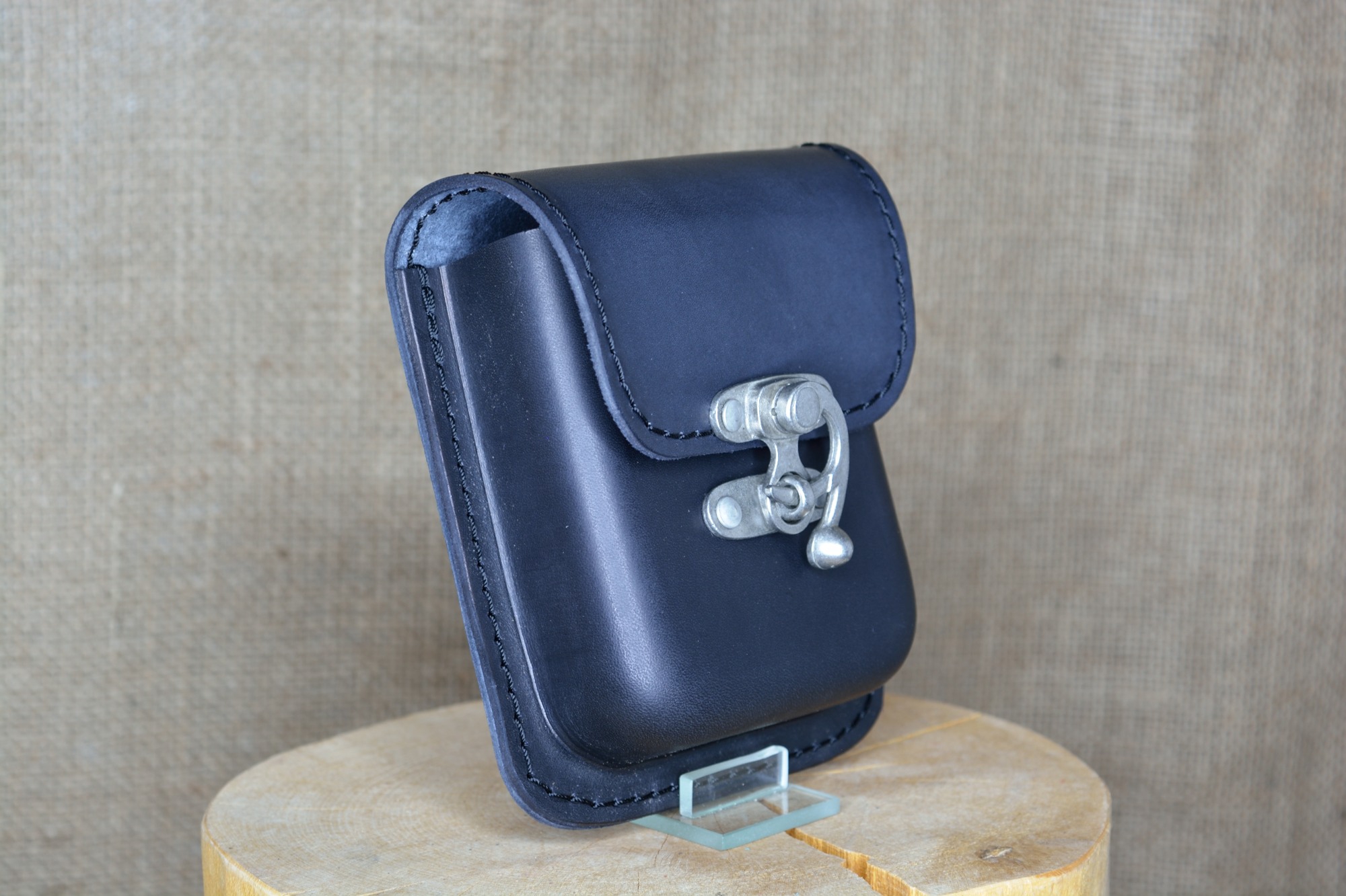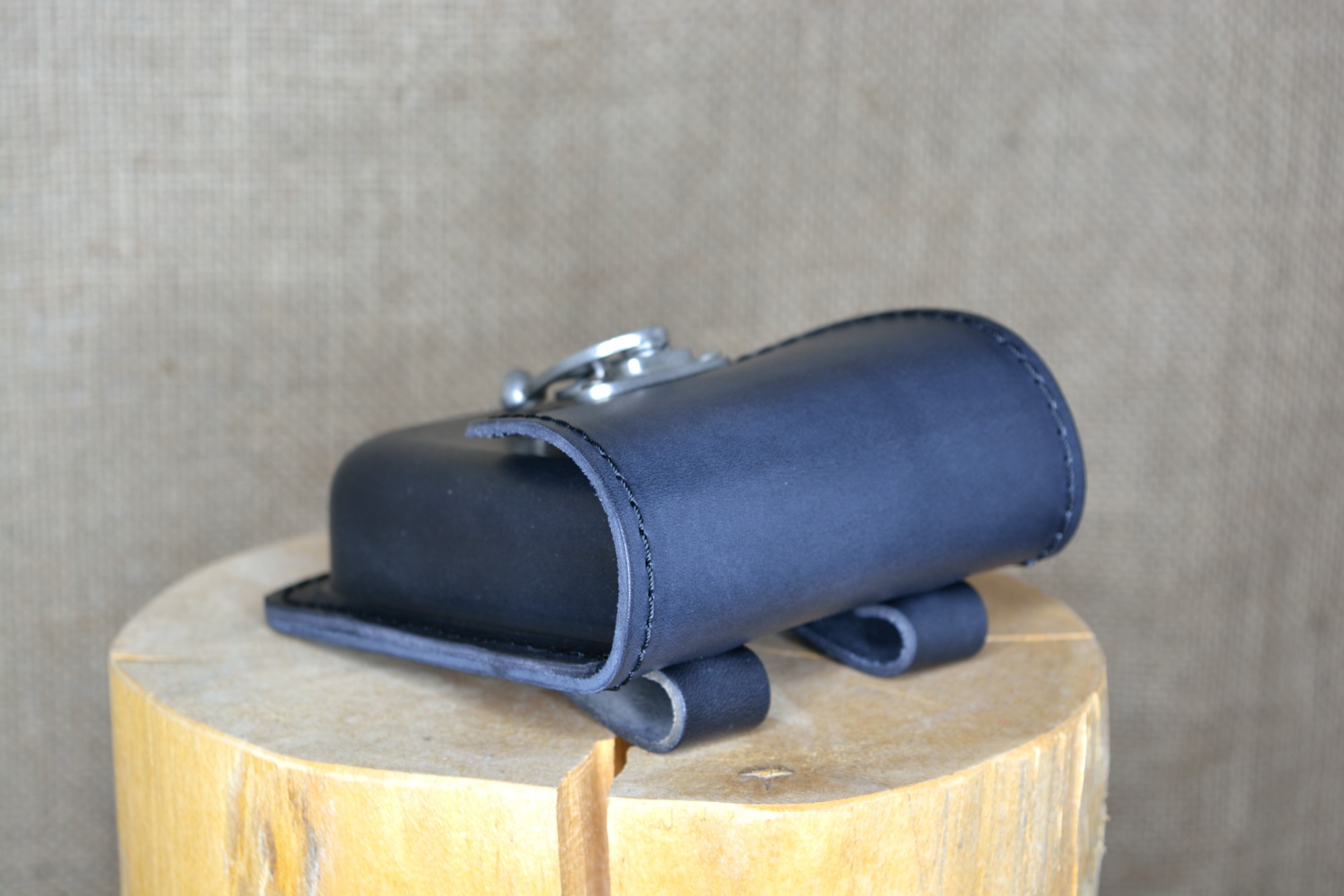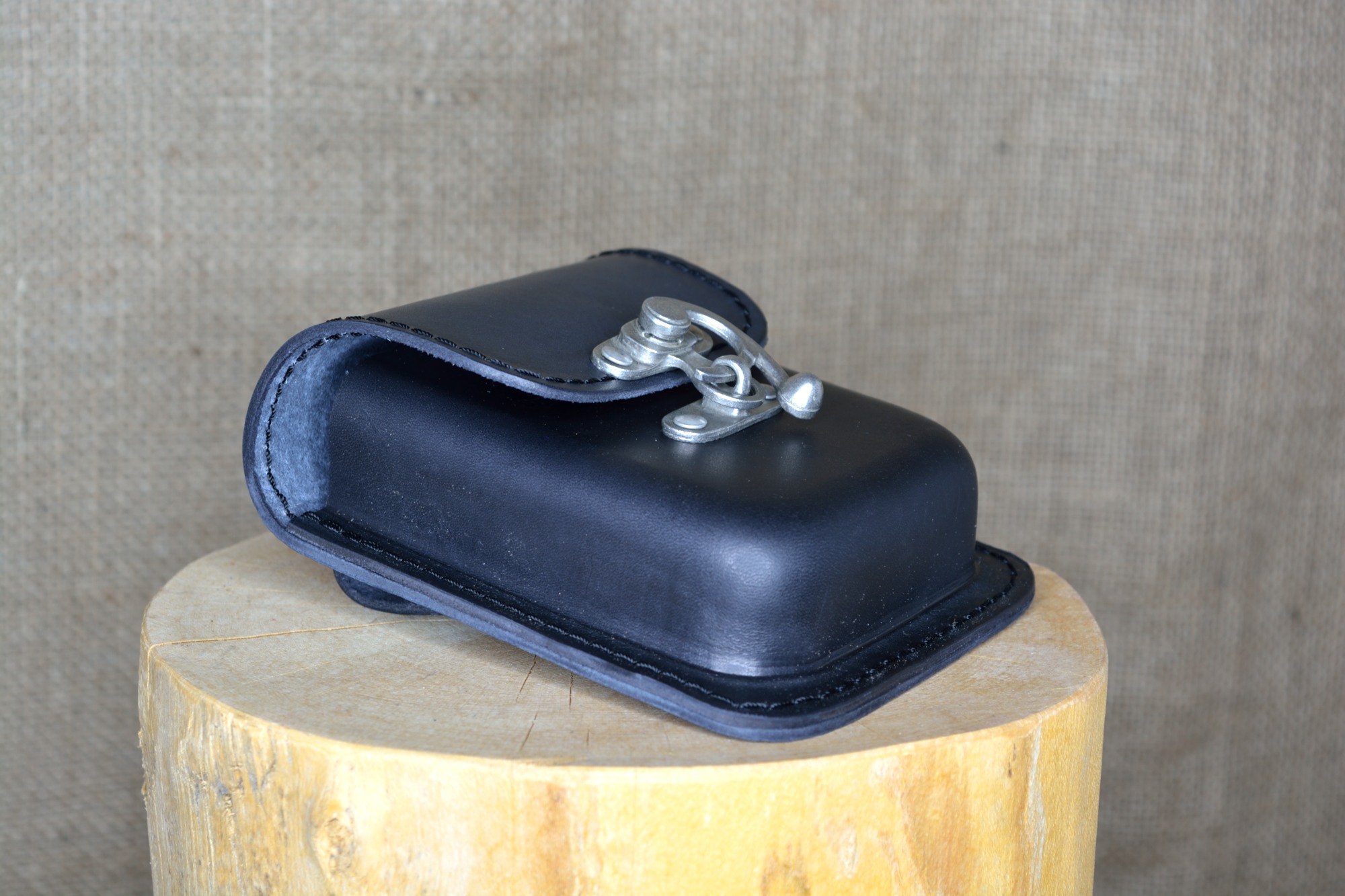 Kožená kapsa Klasik na kotvu - kvalitní kožená kapsa vyrobená ručně z pravé hovězí kůže. Kožená kapsa má jednu větší přihrádku a je vhodná pro nošení drobností jako klíče, mobil, peněženka. Zapínání kapsy je řešeno pomocí kovové kotvičky, která poskytuje zároveň bezpečné uzavření kapsy a také jednoduchou a rychlou možnost otevírání a zavírání kapsy. Na zadní straně má dvě kožená poutka pro uchycení na opasek.