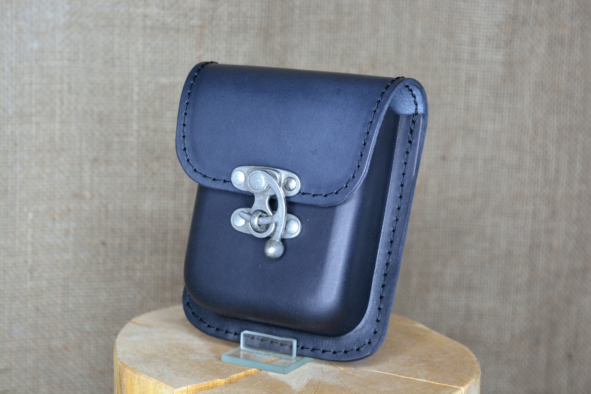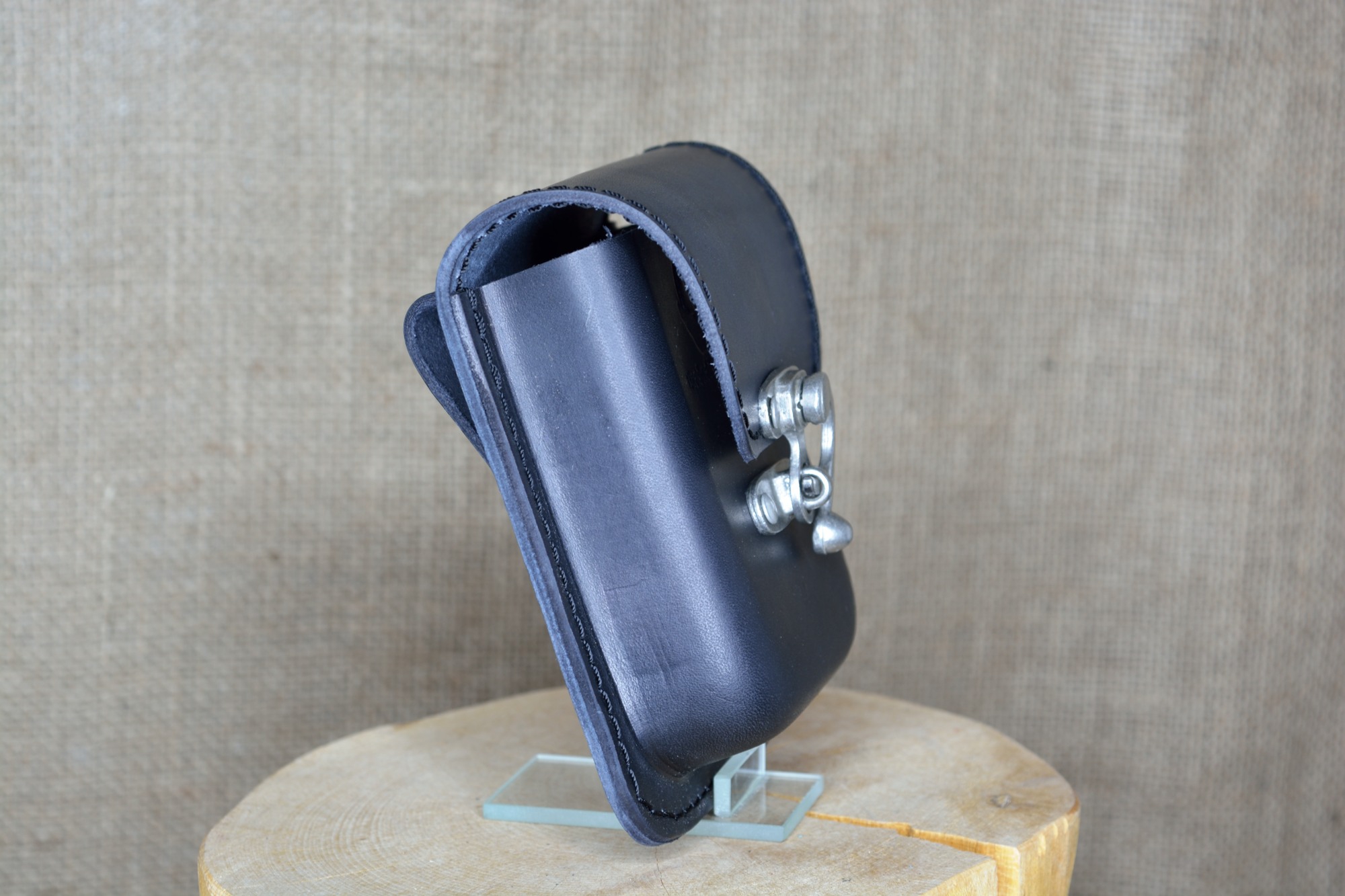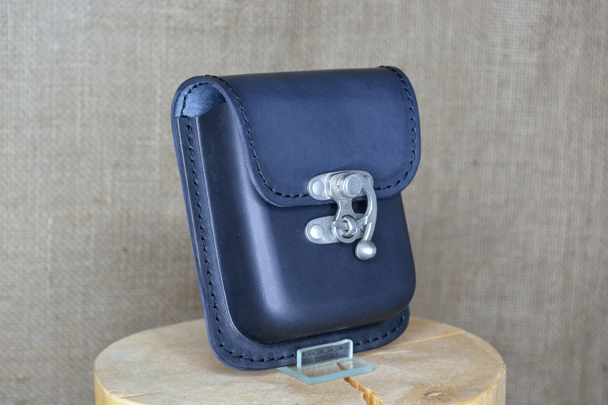 Kožená kapsa Klasik na kotvu - kvalitní kožená kapsa vyrobená ručně z pravé hovězí kůže. Kožená kapsa má jednu větší přihrádku a je vhodná pro nošení drobností jako klíče, mobil, peněženka. Zapínání kapsy je řešeno pomocí kovové kotvičky, která poskytuje zároveň bezpečné uzavření kapsy a také jednoduchou a rychlou možnost otevírání a zavírání kapsy. Na zadní straně má dvě kožená poutka pro uchycení na opasek.