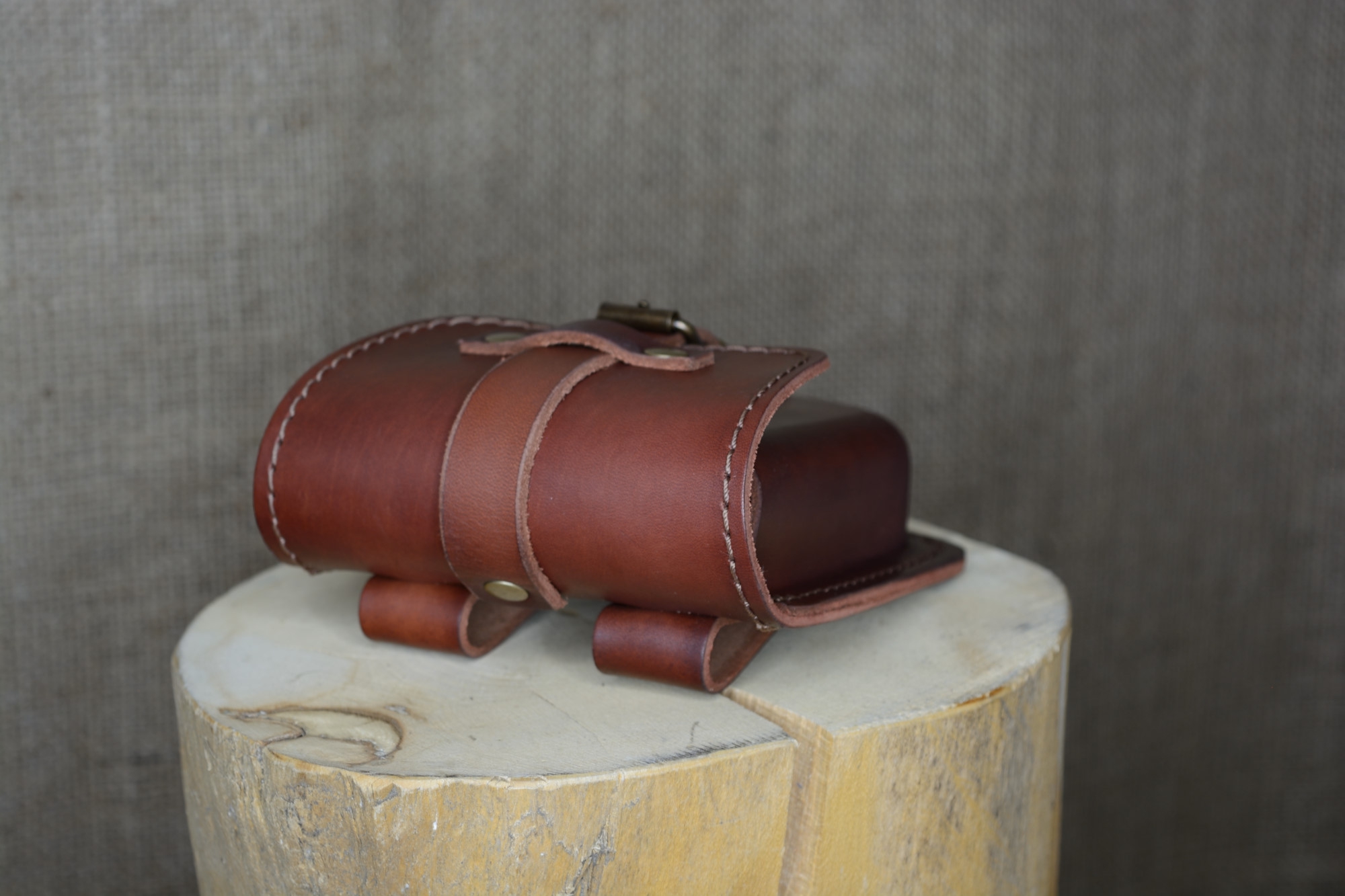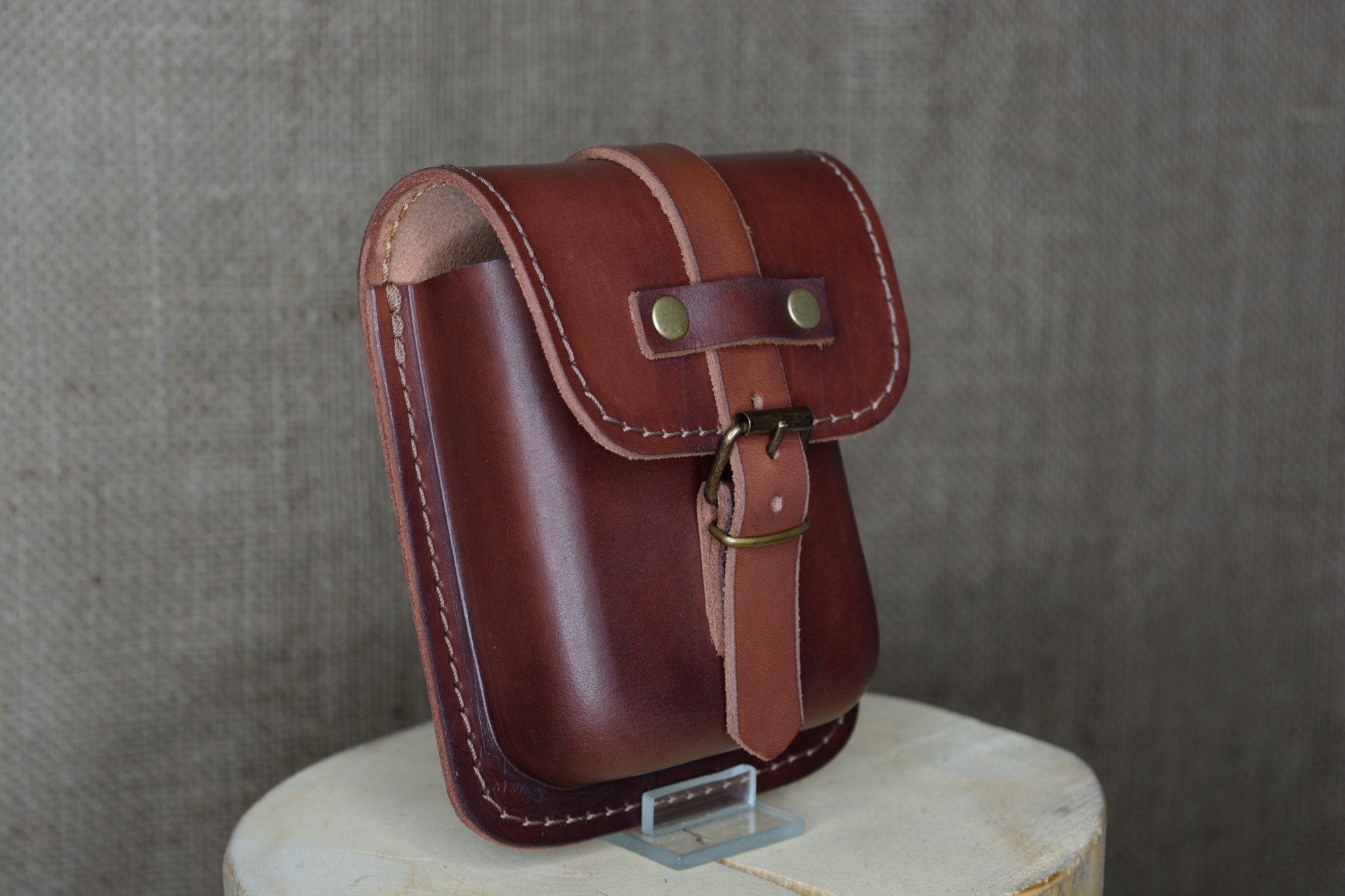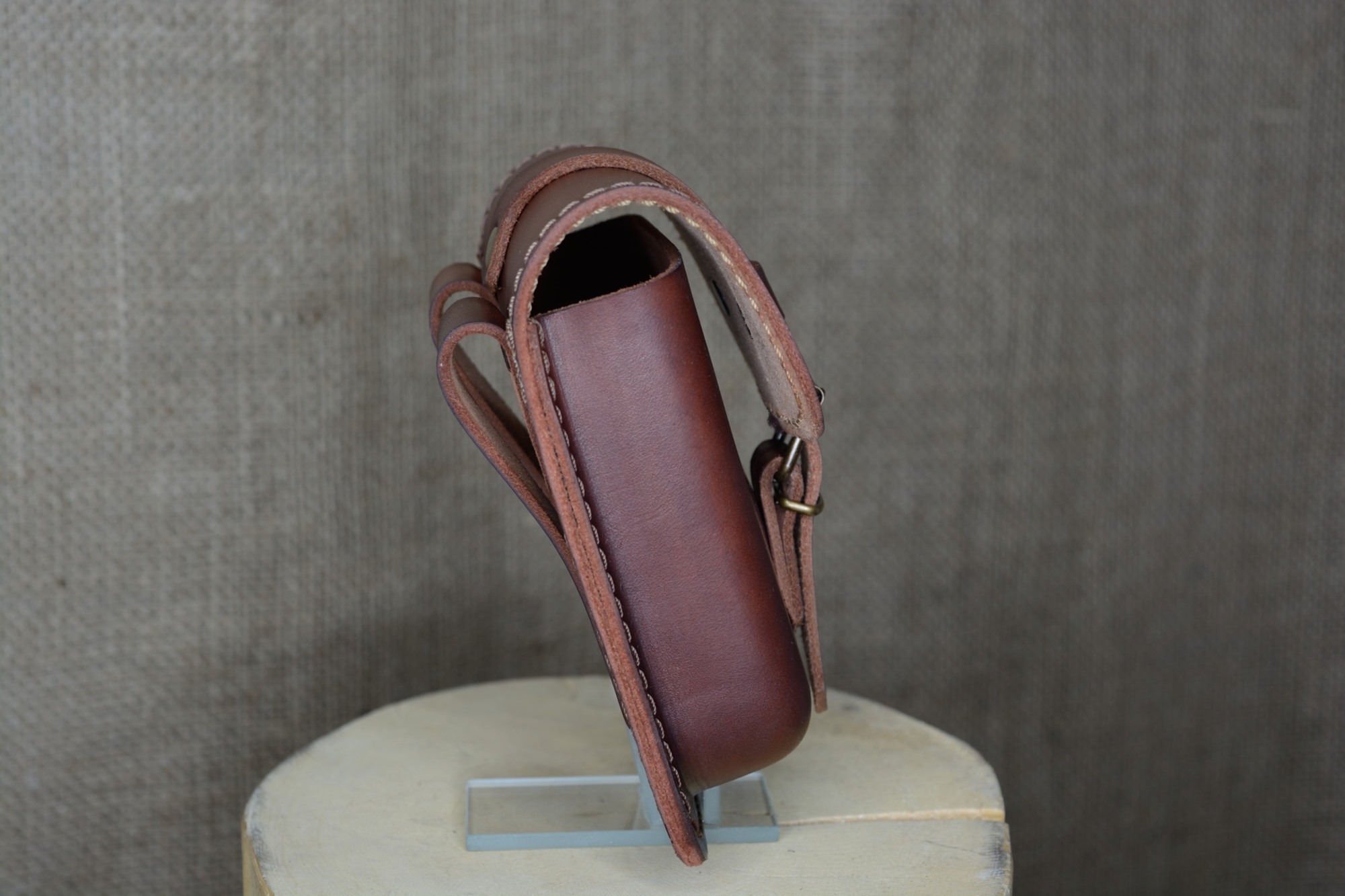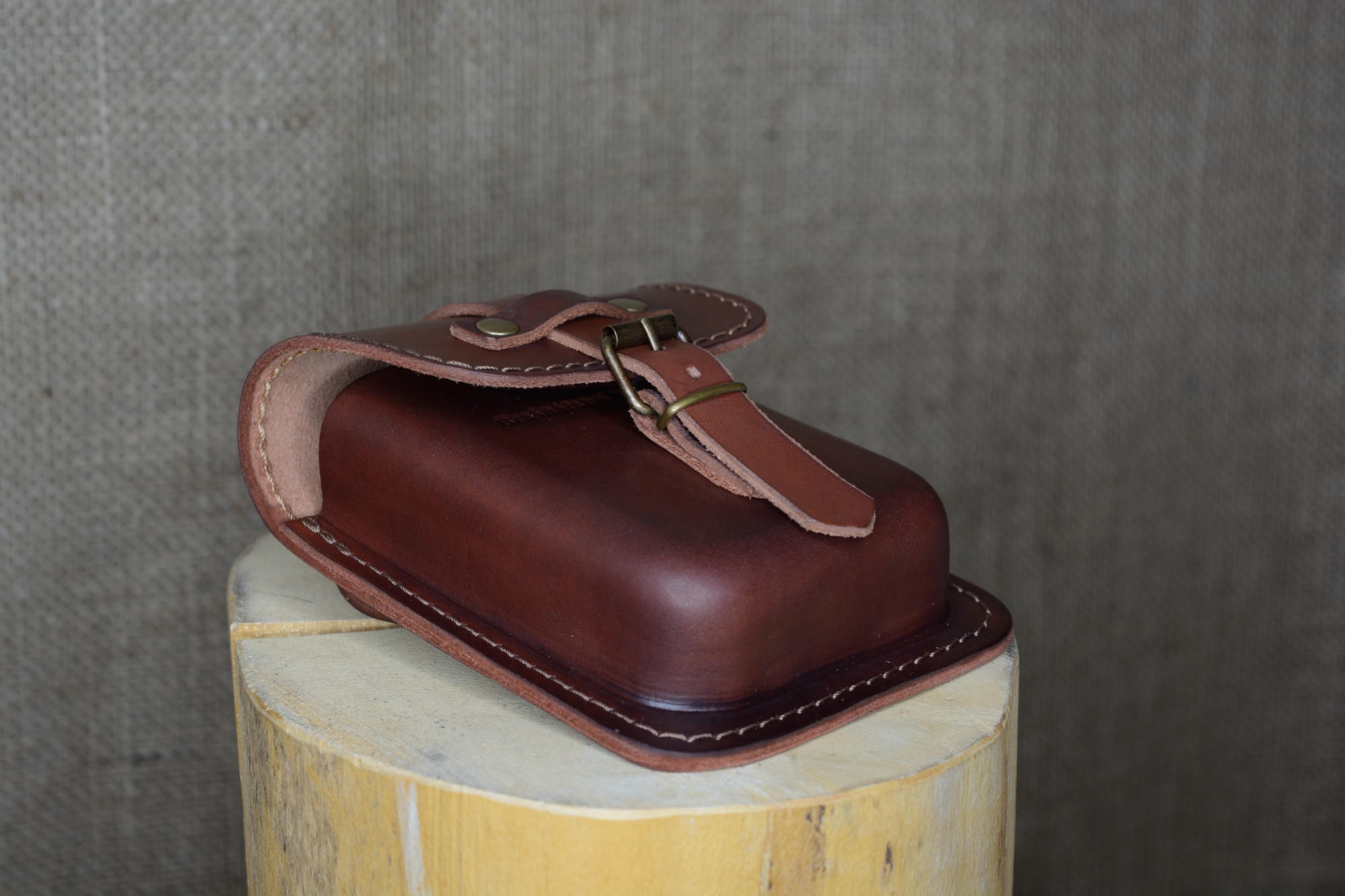 Kožená kapsa Klasik na přezku - kvalitní kožená kapsa vyrobená ručně z pravé hovězí kůže. Kožená kapsa má jednu větší přihrádku a je vhodná pro nošení drobností jako klíče, mobil, peněženka. Zapínání kapsy je řešeno pomocí kovové přezky, která poskytuje zároveň bezpečné uzavření kapsy a také jednoduchou a rychlou možnost otevírání a zavírání kapsy. Na zadní straně má dvě kožená poutka pro uchycení na opasek.