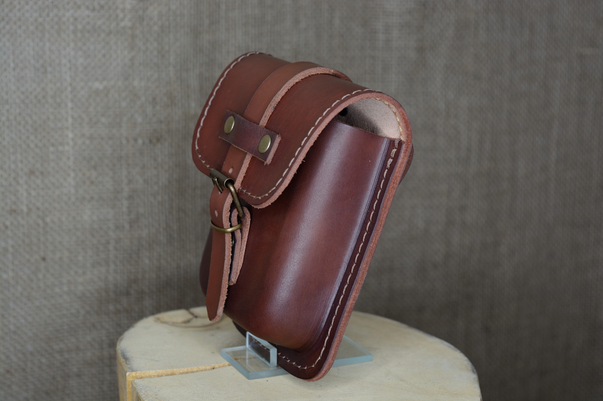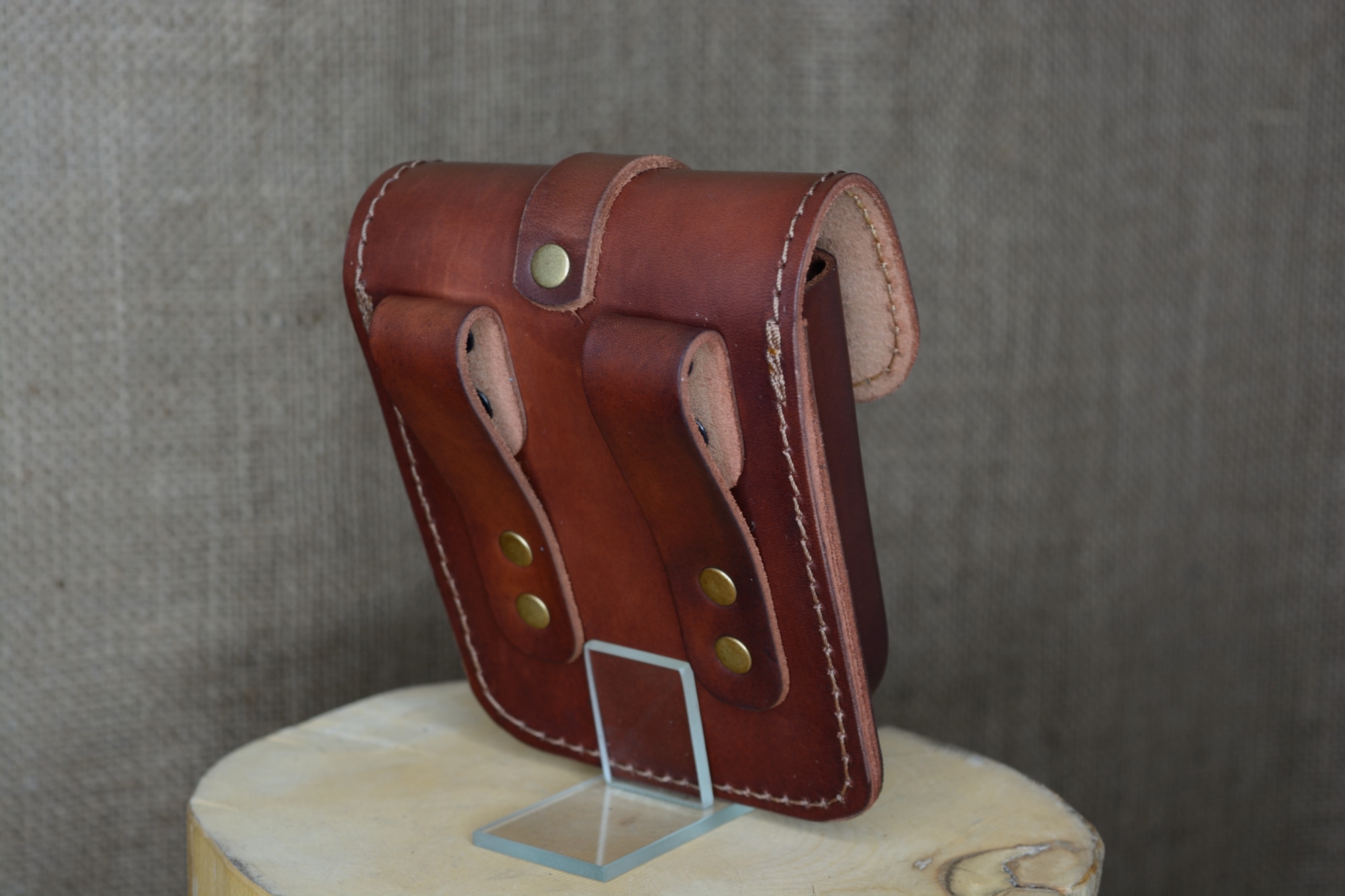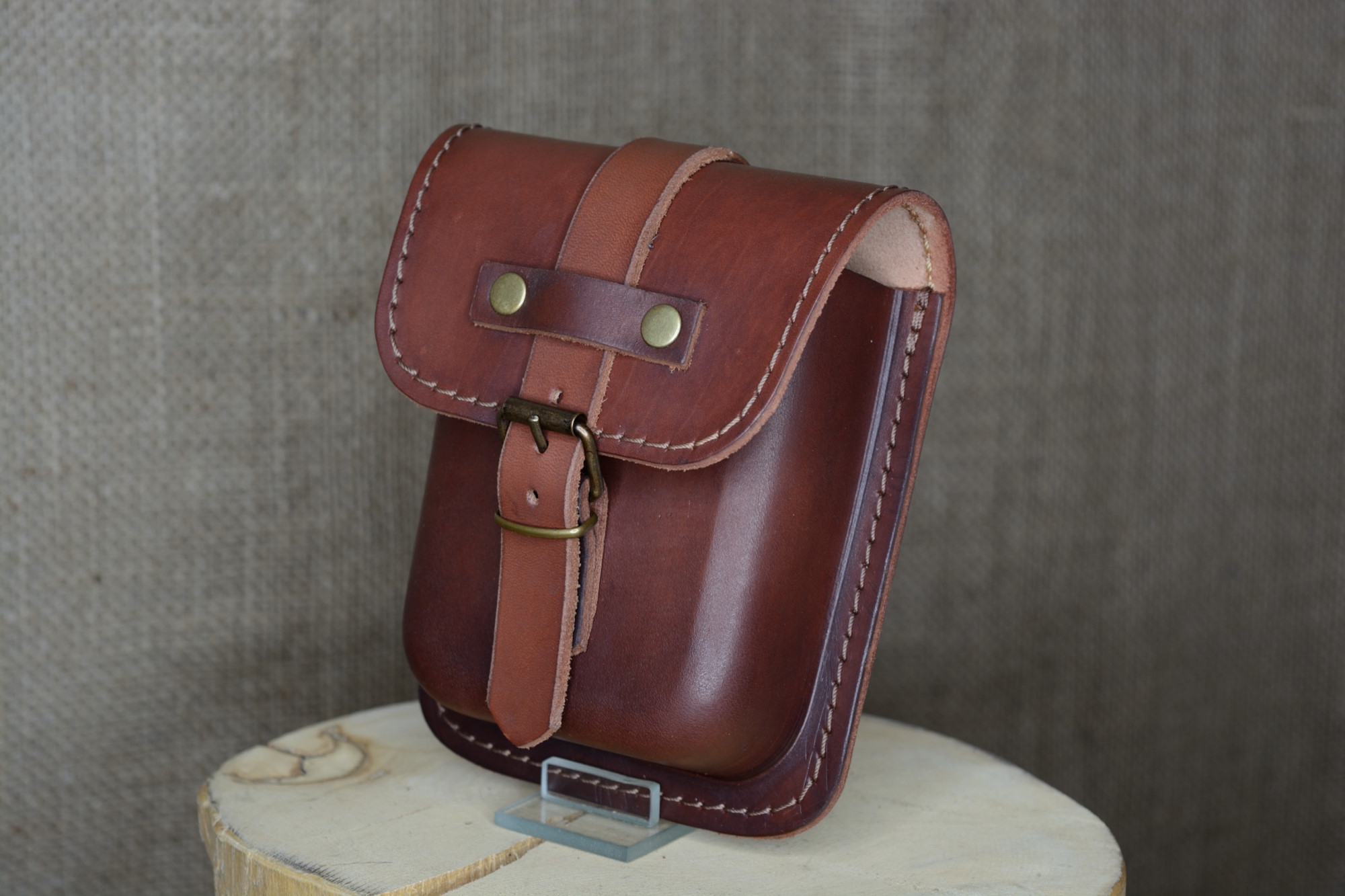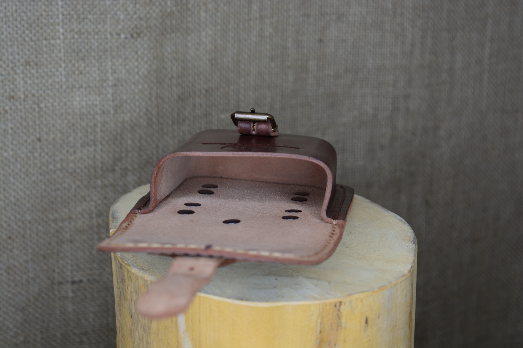 Kožená kapsa Klasik na přezku - kvalitní kožená kapsa vyrobená ručně z pravé hovězí kůže. Kožená kapsa má jednu větší přihrádku a je vhodná pro nošení drobností jako klíče, mobil, peněženka. Zapínání kapsy je řešeno pomocí kovové přezky, která poskytuje zároveň bezpečné uzavření kapsy a také jednoduchou a rychlou možnost otevírání a zavírání kapsy. Na zadní straně má dvě kožená poutka pro uchycení na opasek.