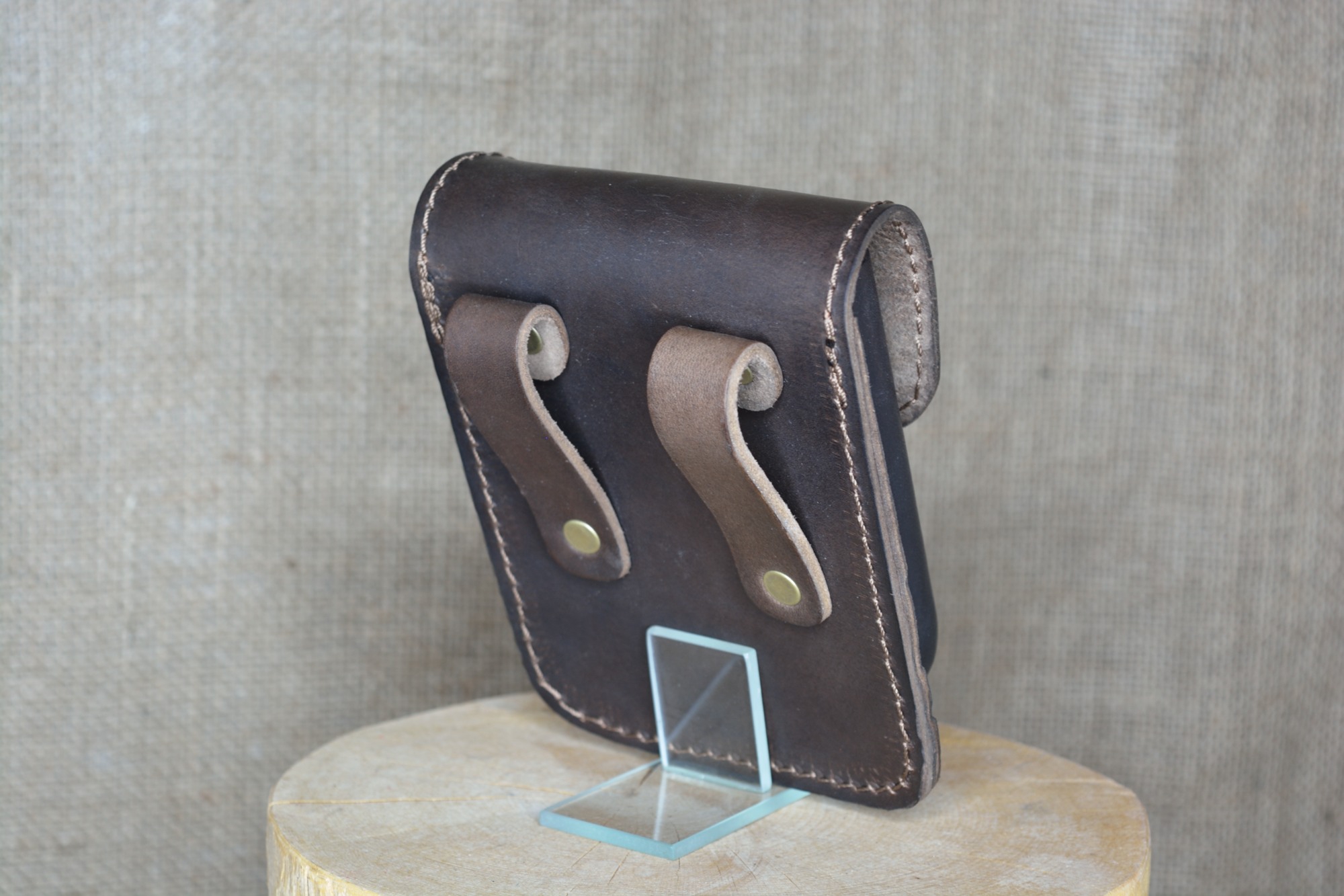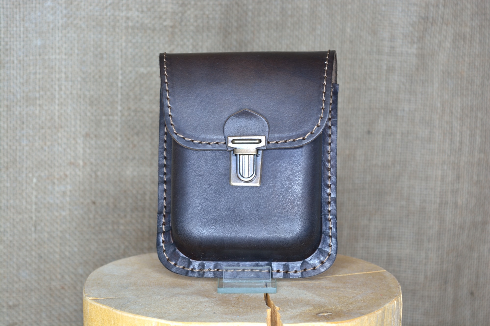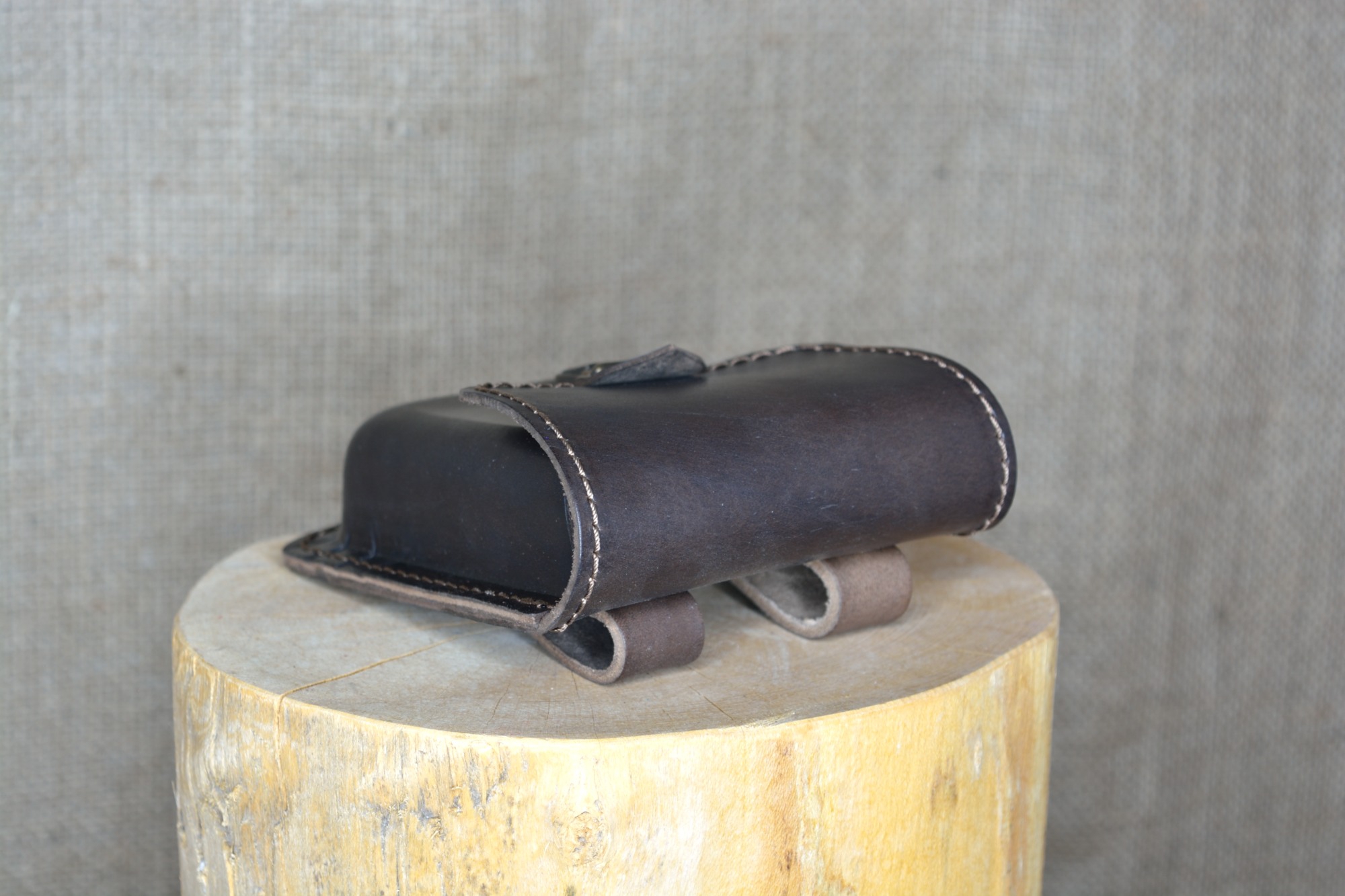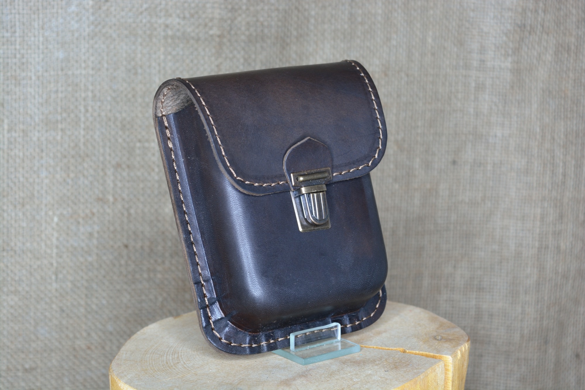 Kožená kapsa Klasik na zámeček - kvalitní kožená kapsa vyrobená ručně z pravé hovězí kůže. Kožená kapsa má jednu větší přihrádku a je vhodná pro nošení drobností jako klíče, mobil, peněženka, cigarety. Zapínání kapsy je řešeno pomocí kovového zámečku, který poskytuje bezpečné uzavření kapsy a pomocí kterého je možné kapsu jednoduše a rychle uzavírat a otevírat. Na zadní straně má dvě kožená poutka pro uchycení na opasek.