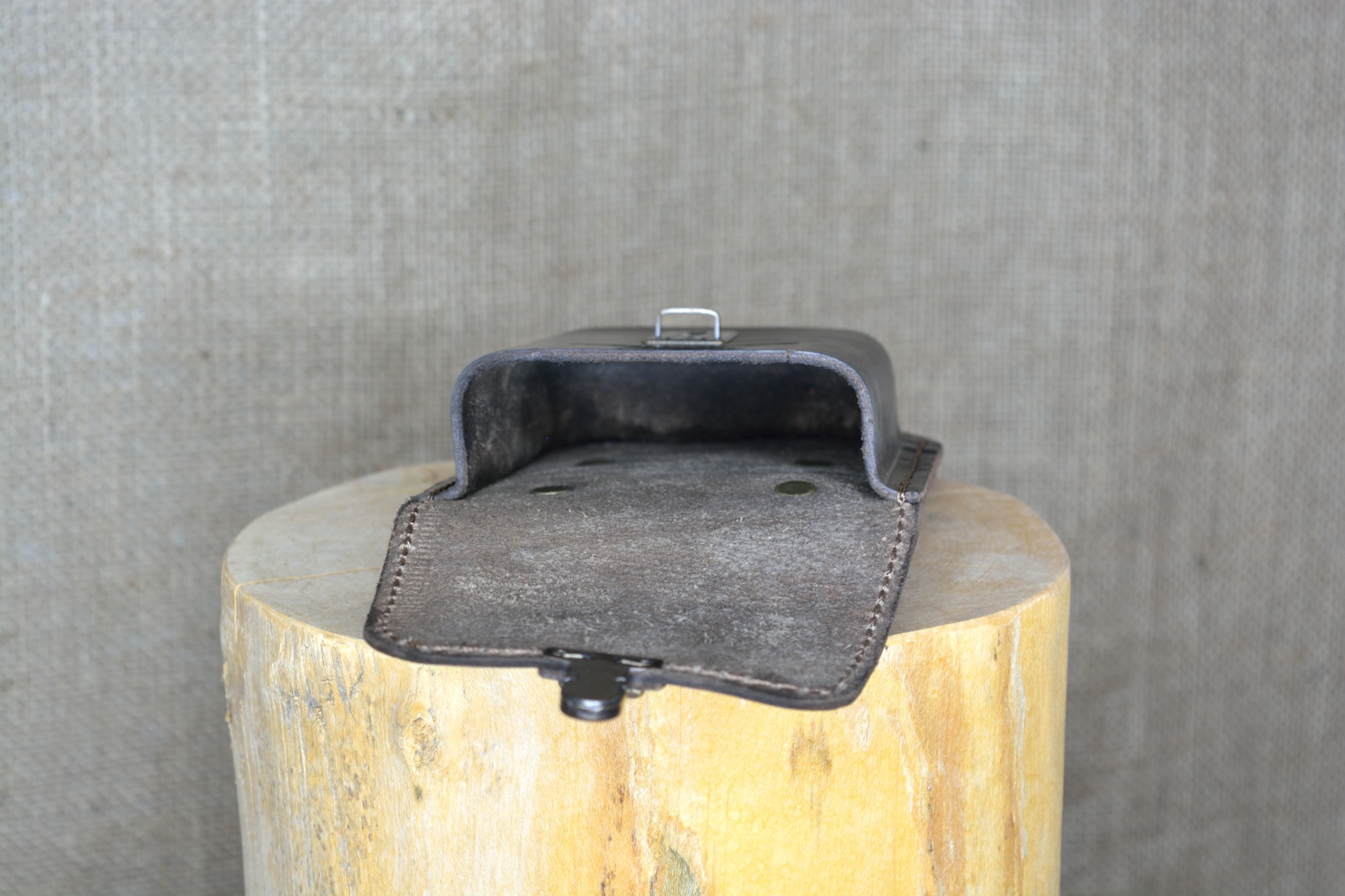 Kožená kapsa má vnitřní rozměry V 13 cm x Š 9 cm x H 3 cm.