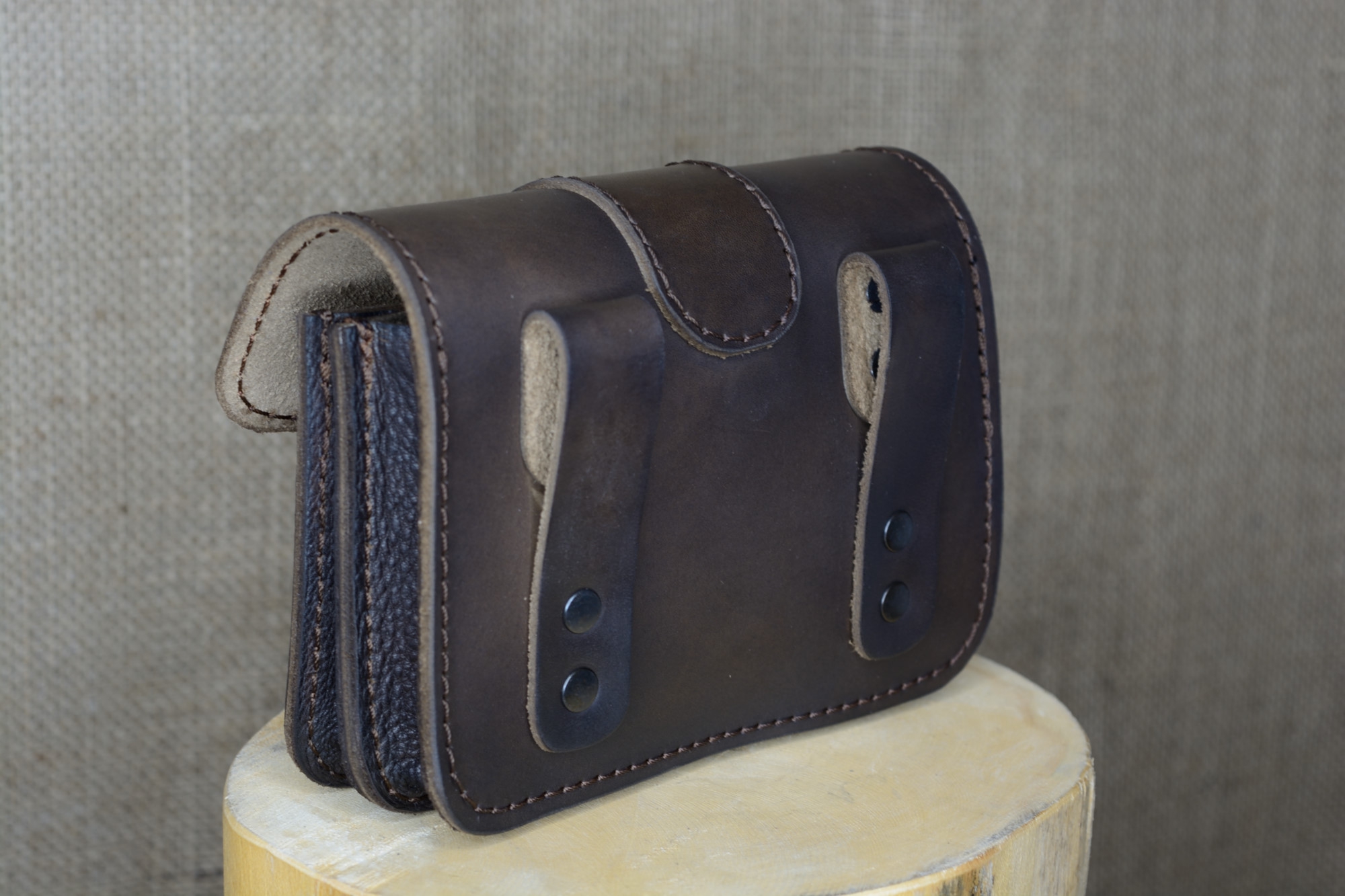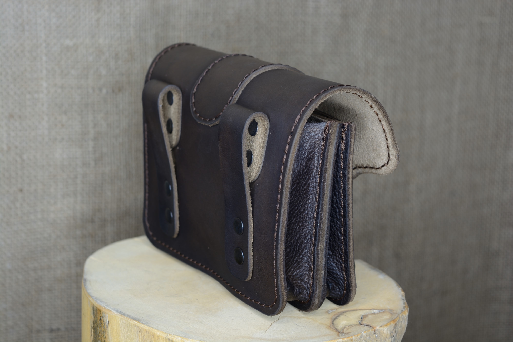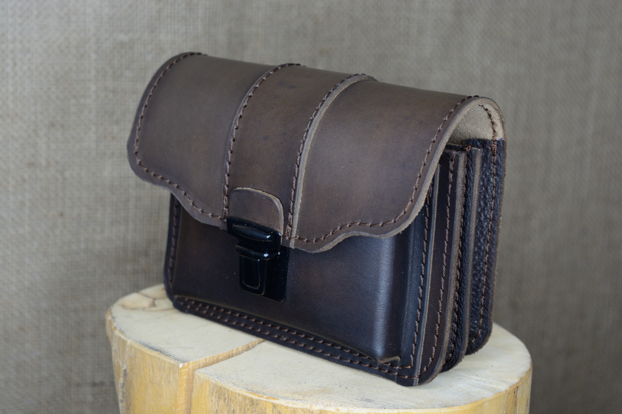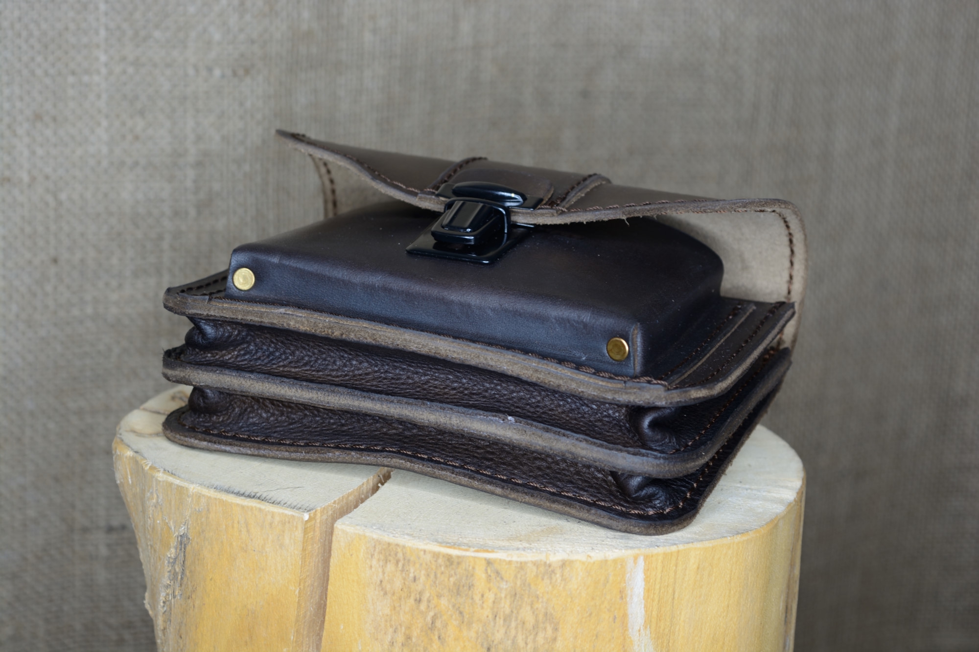 Kožená kapsa řezaná dvojitá s přední kapsou na zámeček