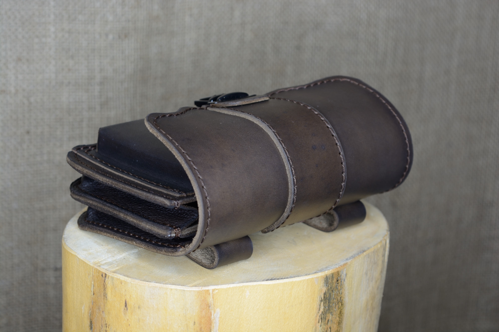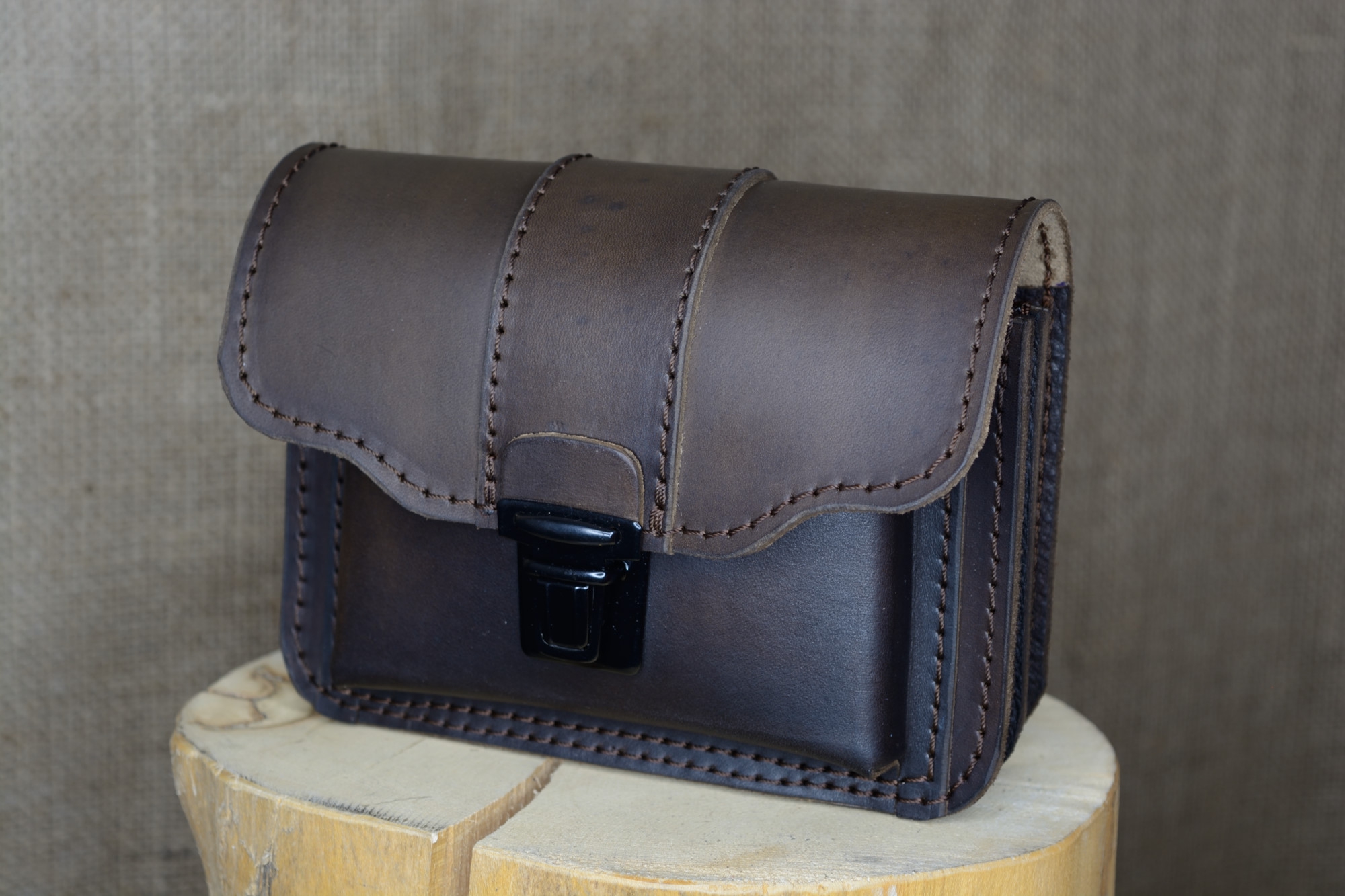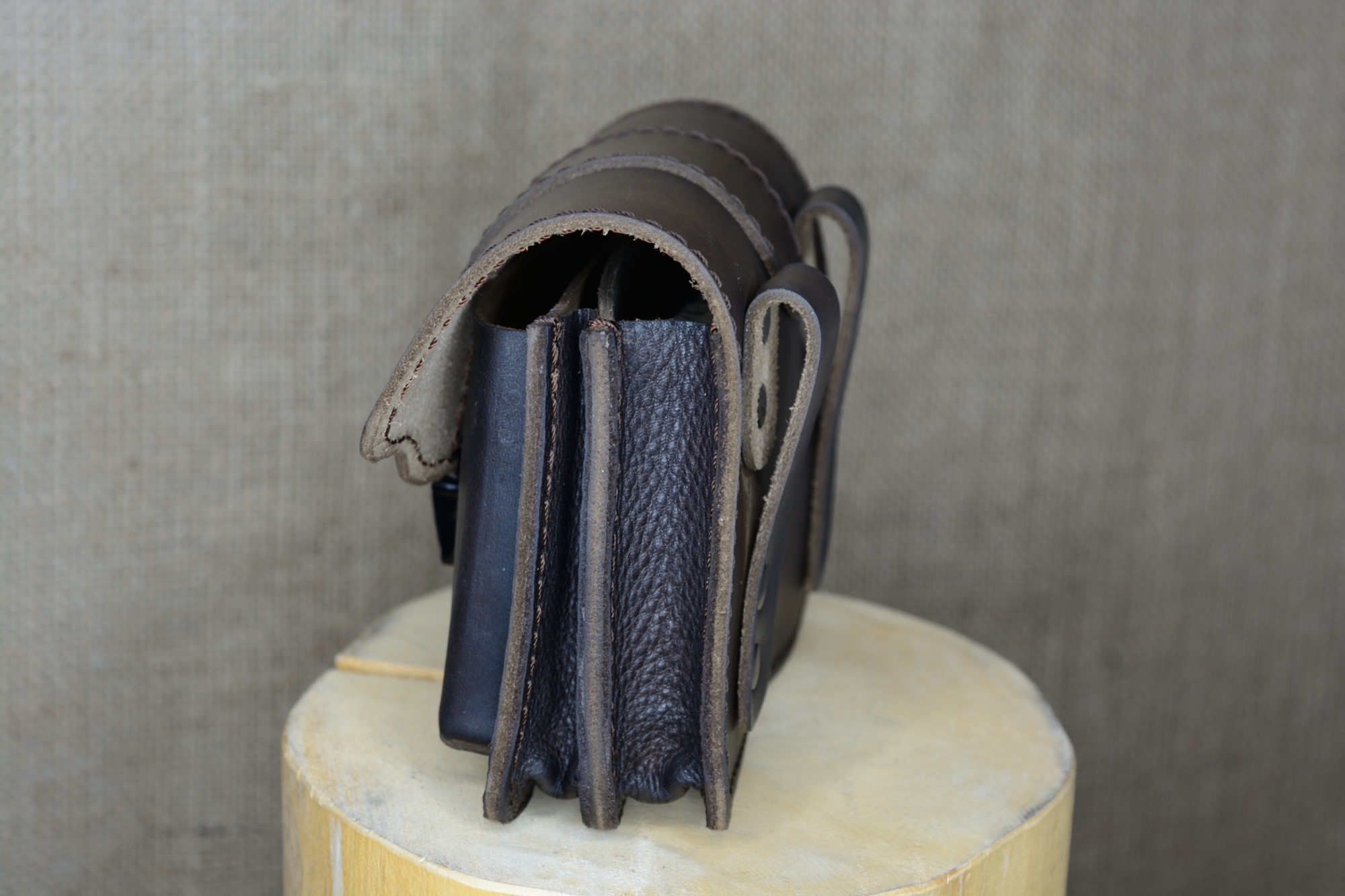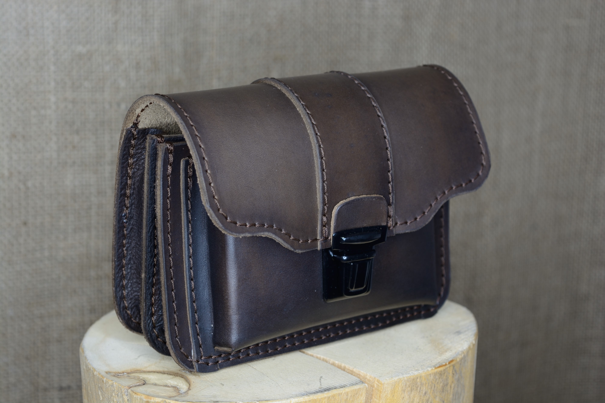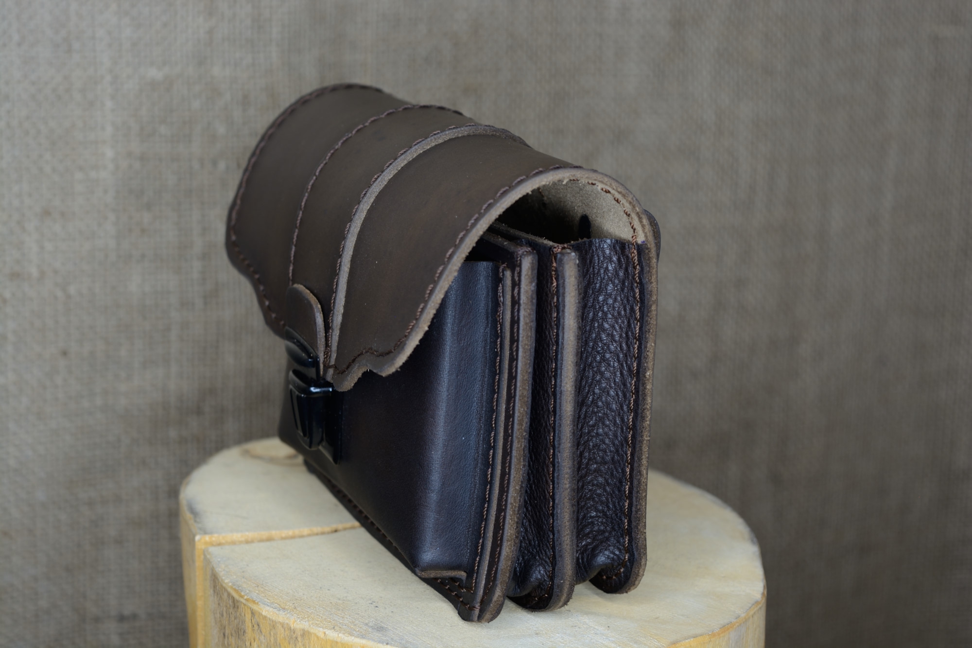 Kožená kapsa řezaná dvojitá s přední kapsou na zámeček