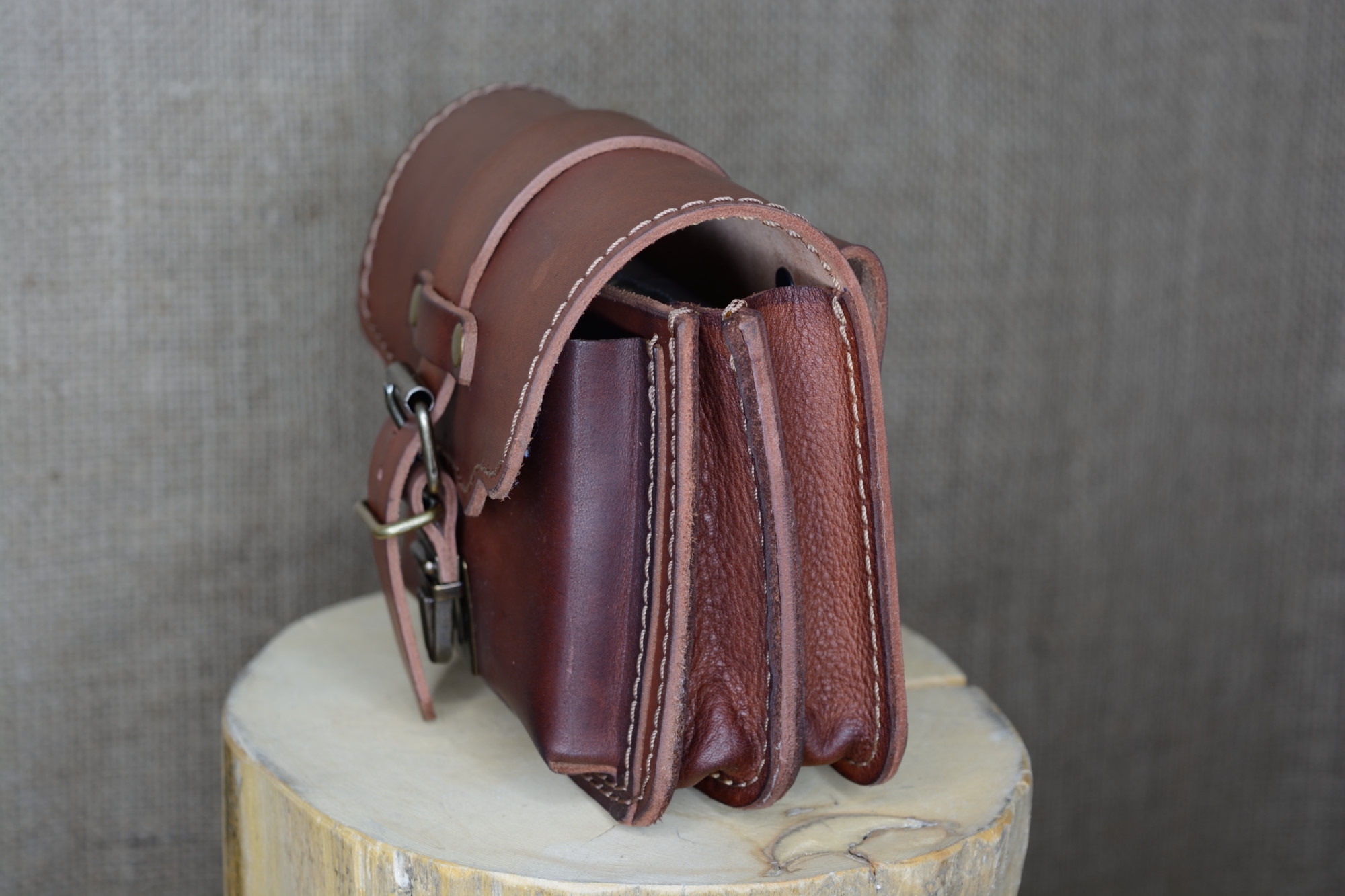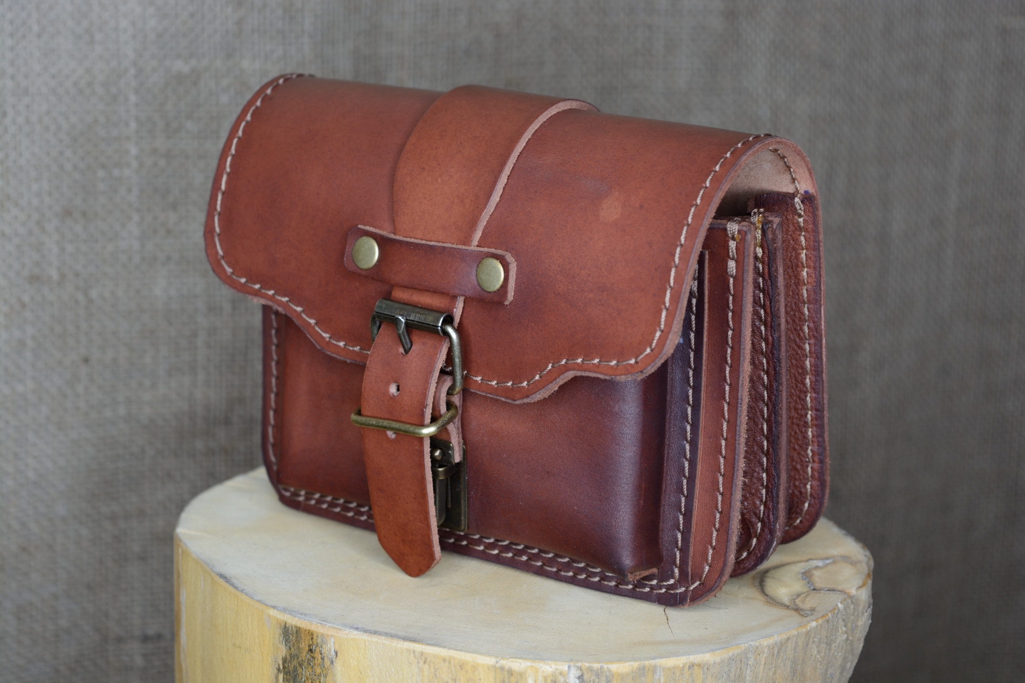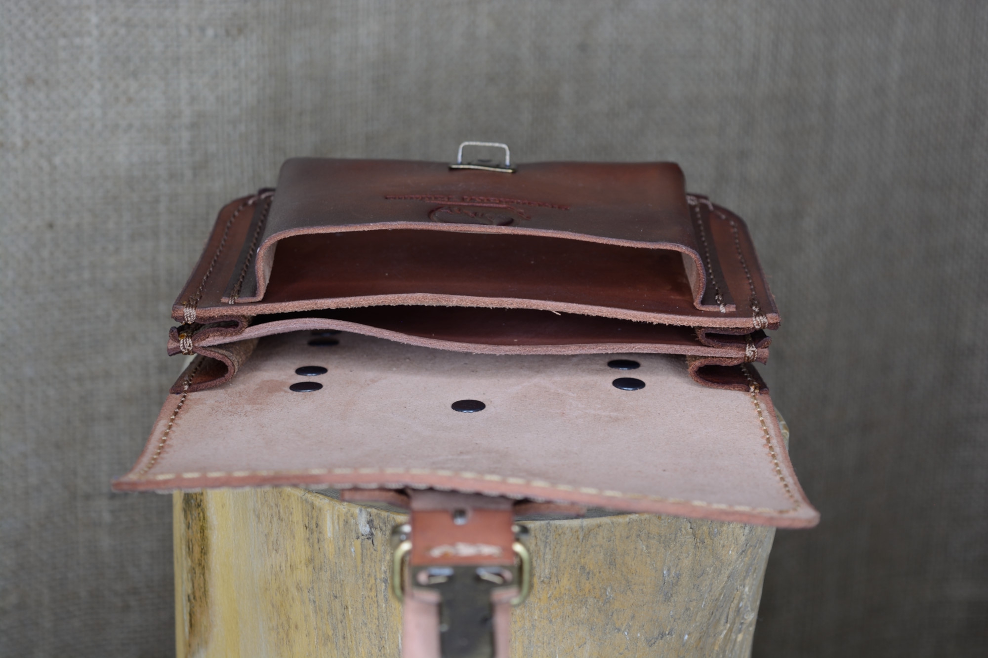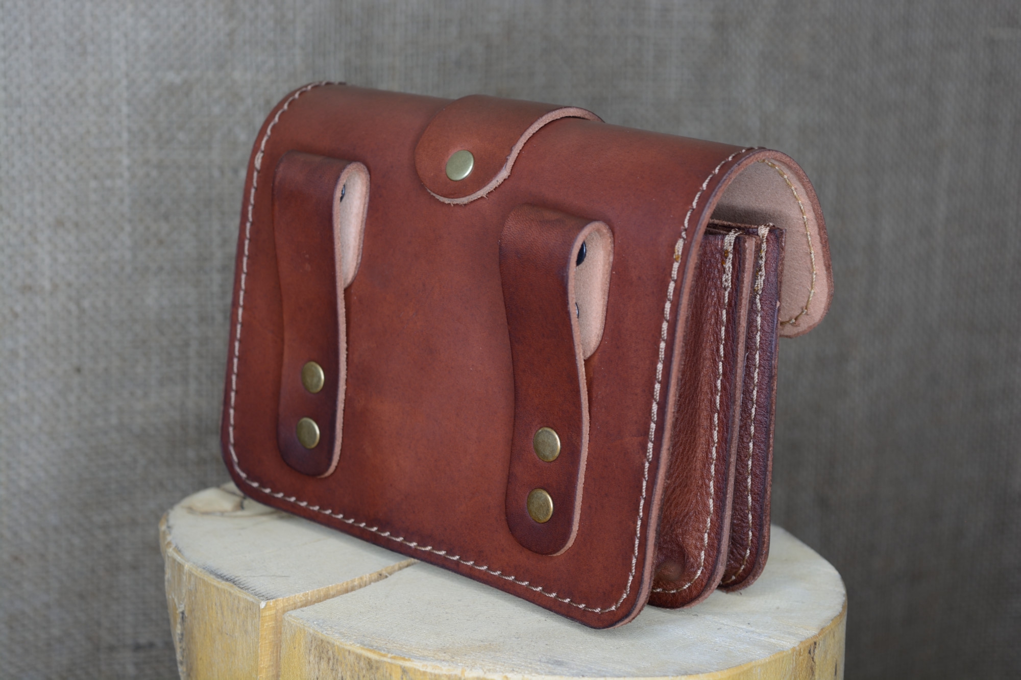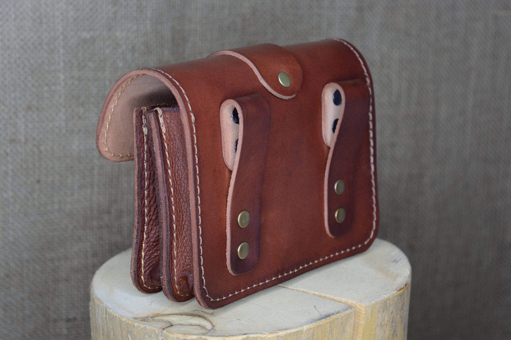 Kožená kapsa řezaná dvojitá s přední kapsou s kombinovaným zapínáním