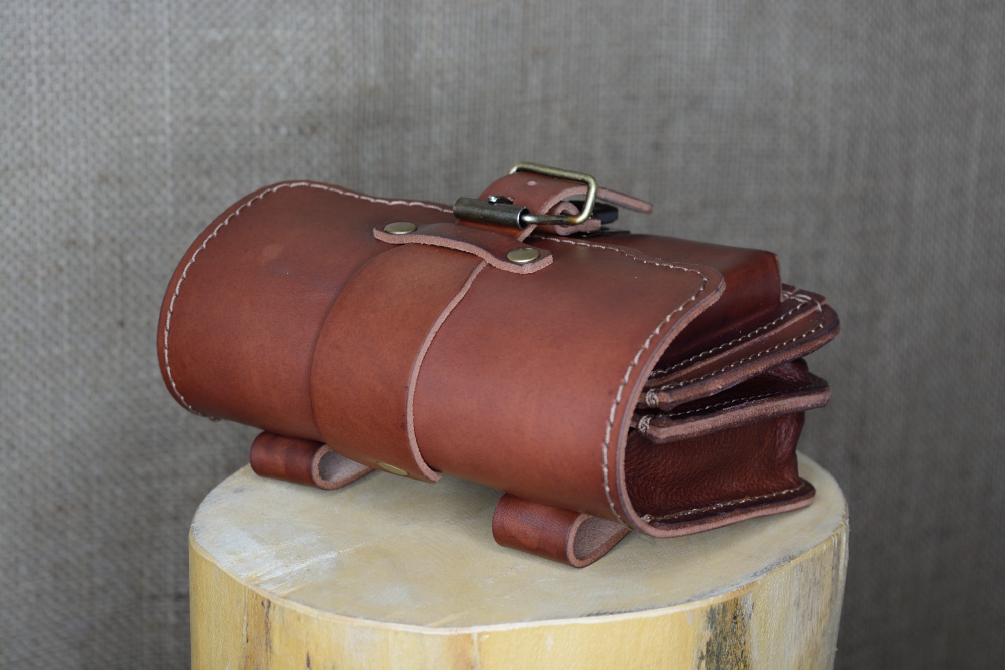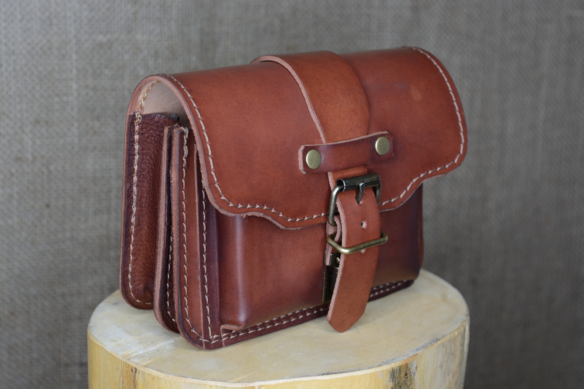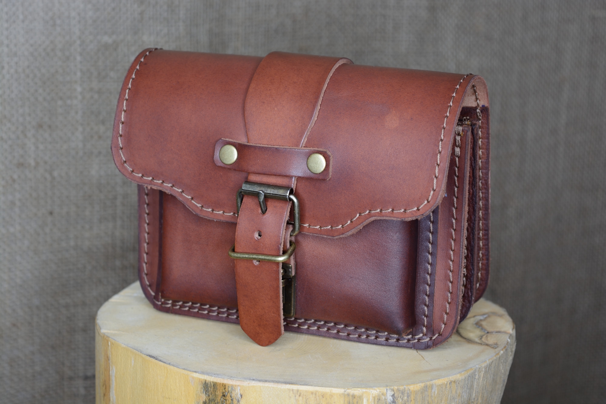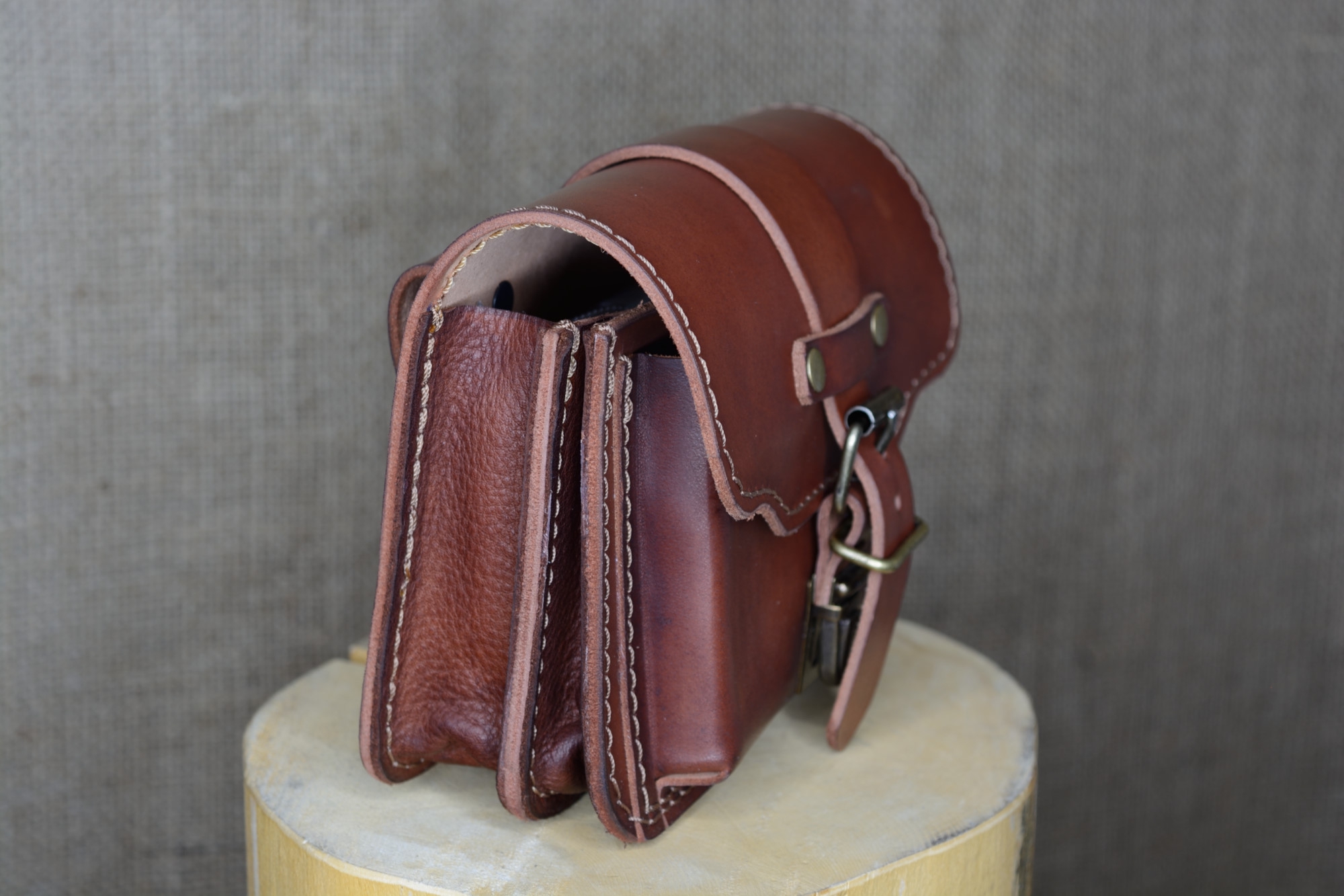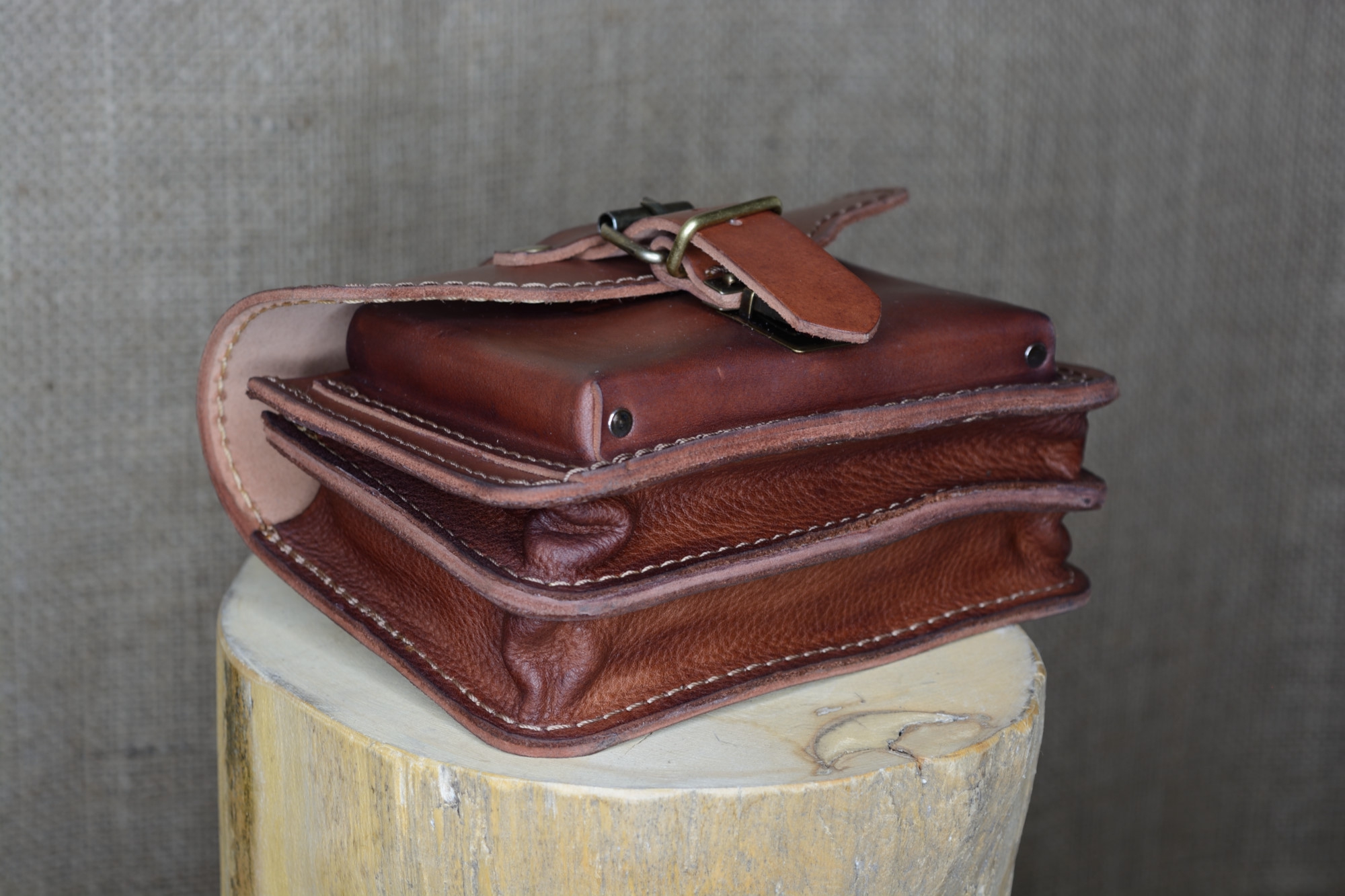 Kožená kapsa řezaná dvojitá s přední kapsou s kombinovaným zapínáním