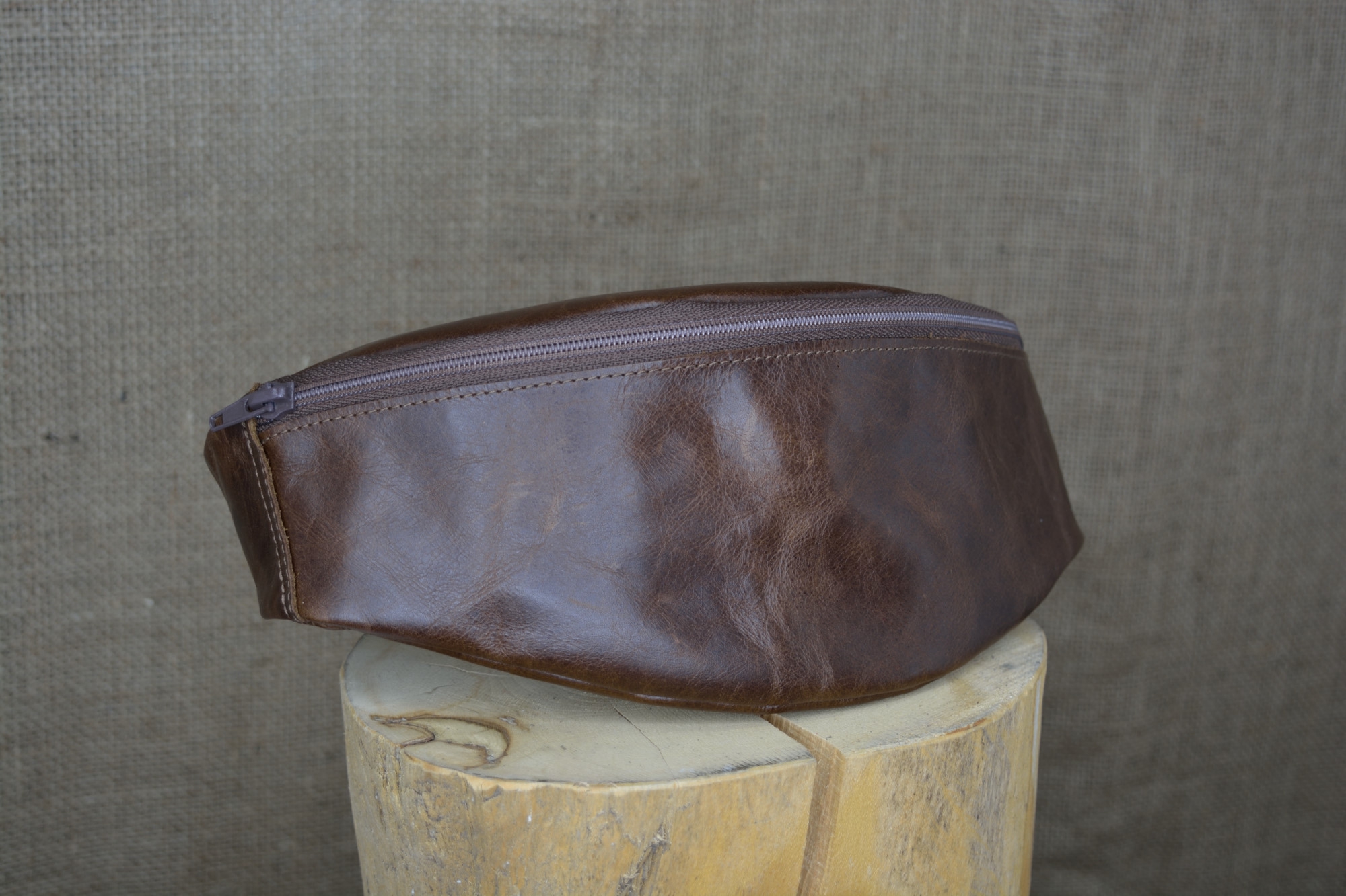 Kožená ledvinka má rozměry 13 cm x 27 cm x 8 cm.