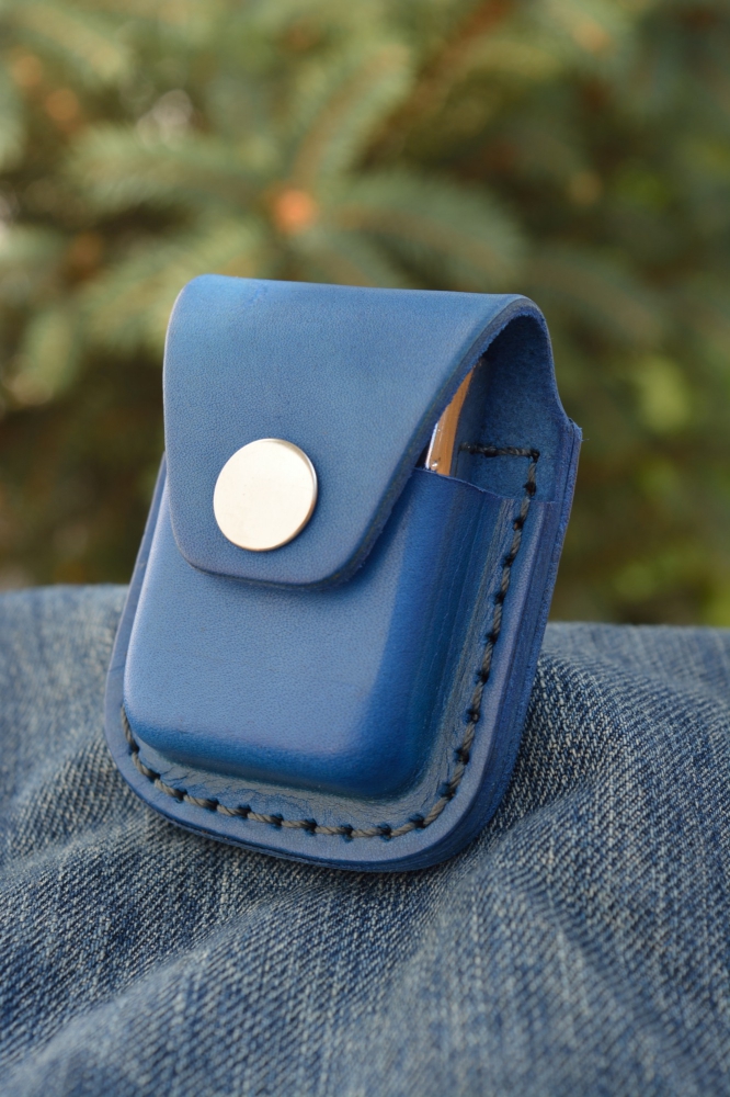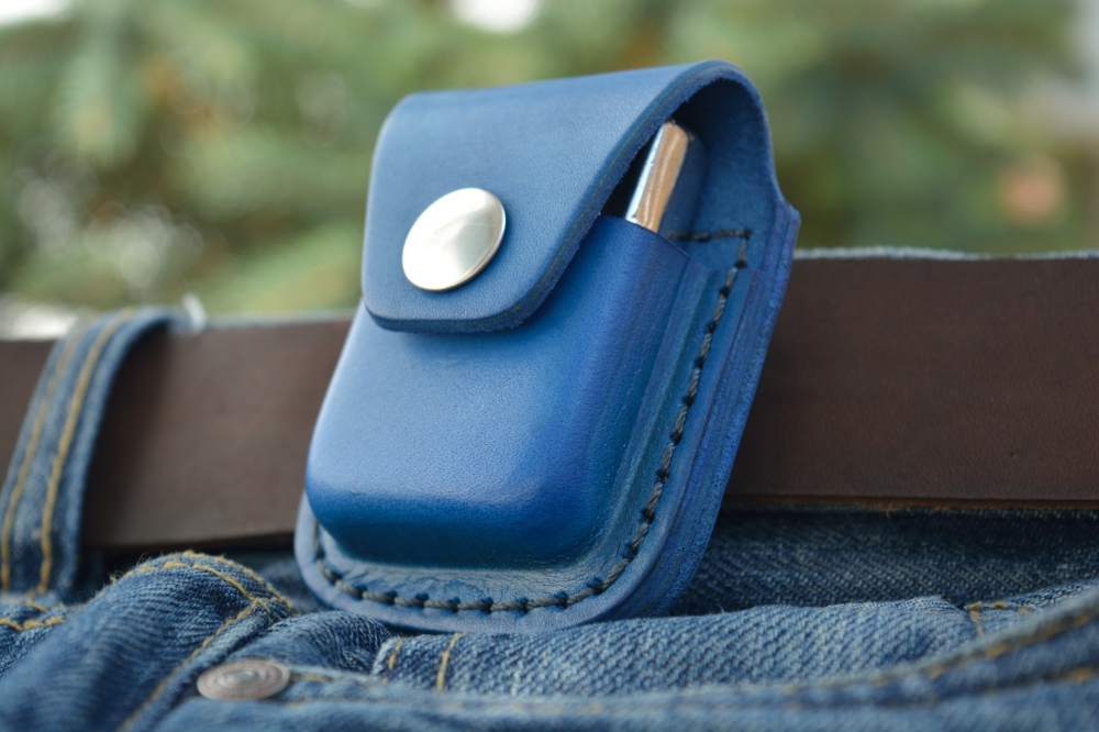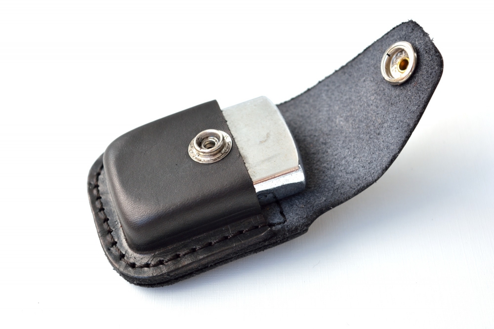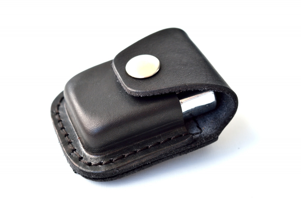Kožené pouzdro na kovový benzínový zapalovač - kvalitní kožené pouzdro na zapalovač vyrobené z pravé hovězí kůže. Kožené pouzdro na zapalovač je vhodné pro nošení velice oblíbených kovových benzínových zapalovačů jedné známé nejmenované americké značky. Kožené pouzdro má malou klapinku, která se uzavírá pomocí kovového druku. Pouzdro je vybavené koženým poutkem pro snadné uchycení na opasek.