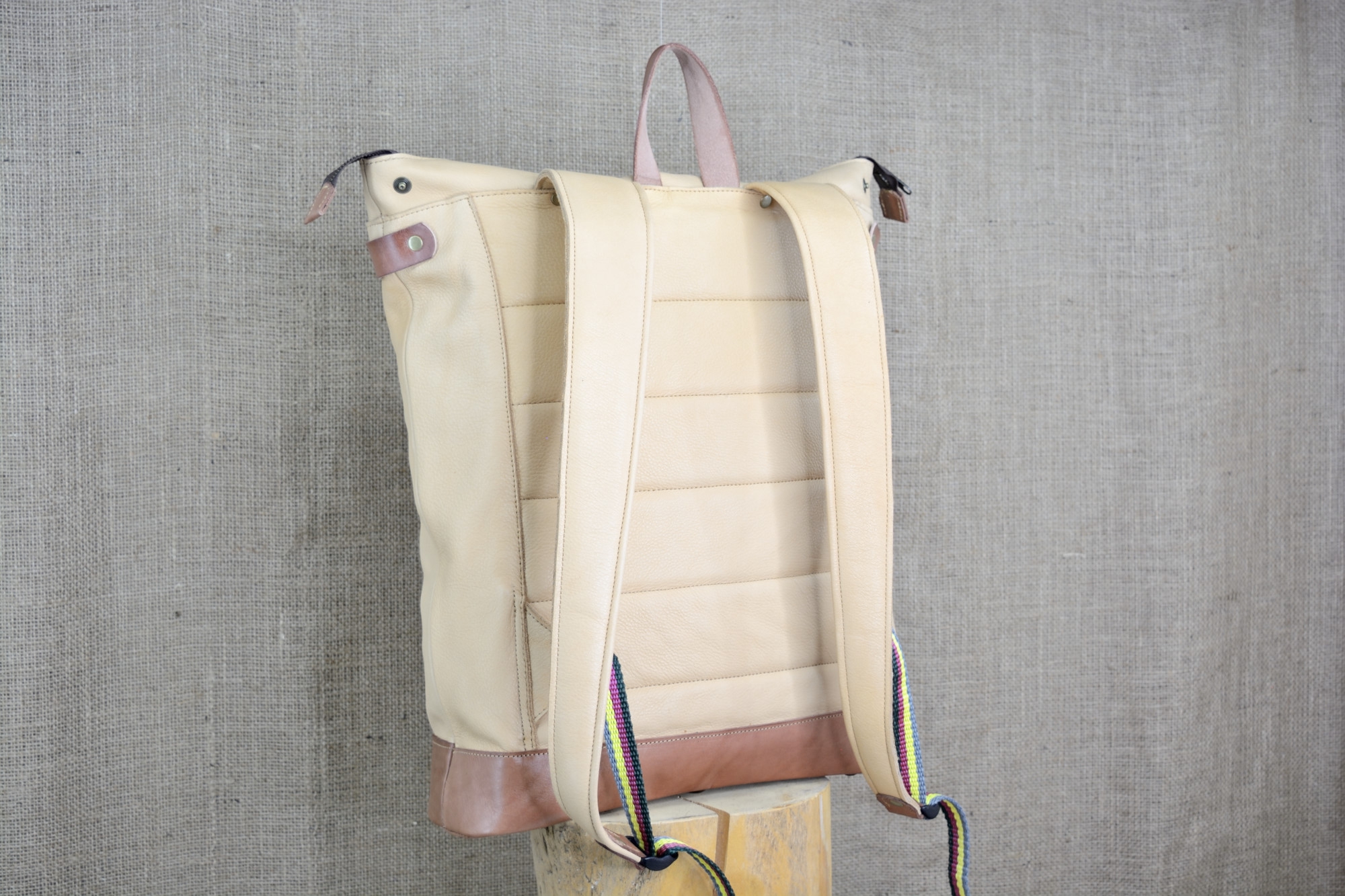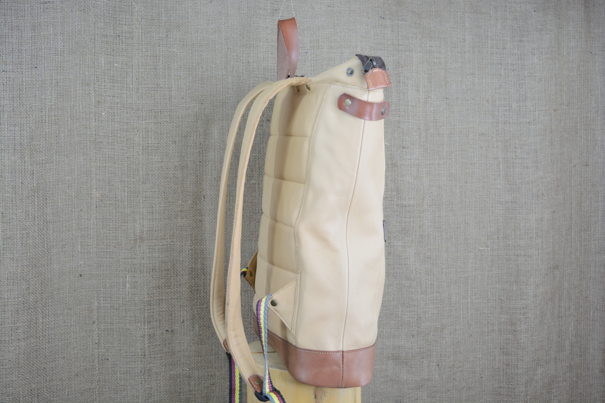 Spodní část batohu City je opatřena kovovými puklemi. Na vrchu koženého batohu mezi řemeny je umístěno malé kožené poutko vhodné pro zavěšení batohu. Batoh má řemeny, kterých délku je možné libovolně nastavovat pomocí zkracovačů.
