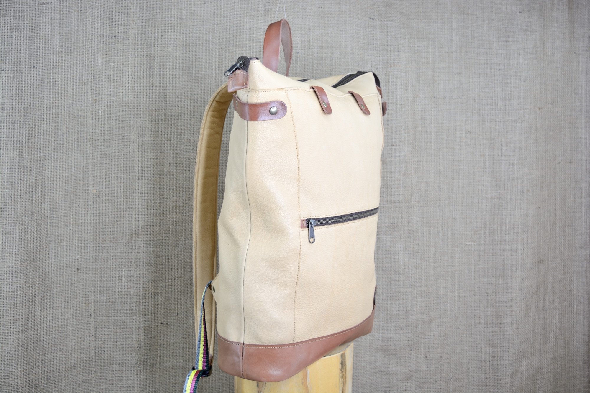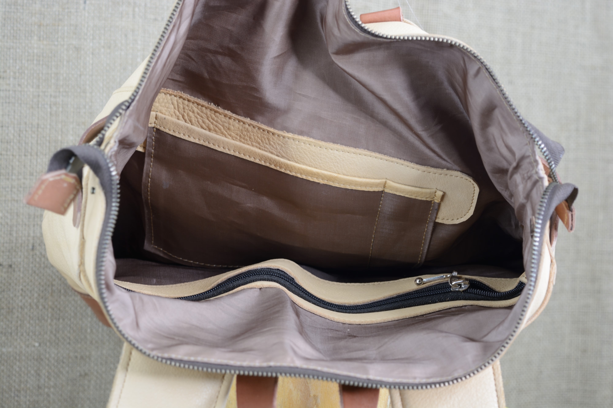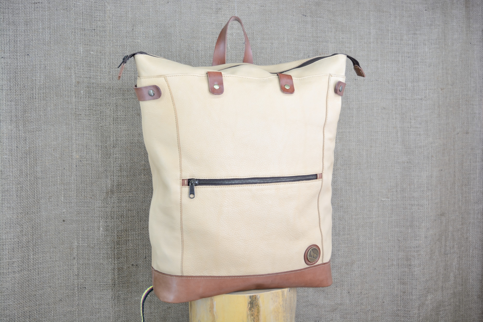 Kožený batoh City - kvalitní kožený batoh je vyroben ručně z pravé hovězí kůže, která zaručuje jeho dlouhou životnost. Kožený batoh City má jedno hlavní oddělení, které se uzavírá na kovový zip. Batoh má dvě vnitřní kapsy. Na přední části je kapsa na drobnosti, mobil, tužku. Na zadní vnitřní části je hluboká kapsa na zip, kde můžete uschovat důležitější věci. Zvenčí na předním díle je ještě jedna zipová kapsa. Ve vrchní části jsou na batohu ozdobné pruhy kůže.