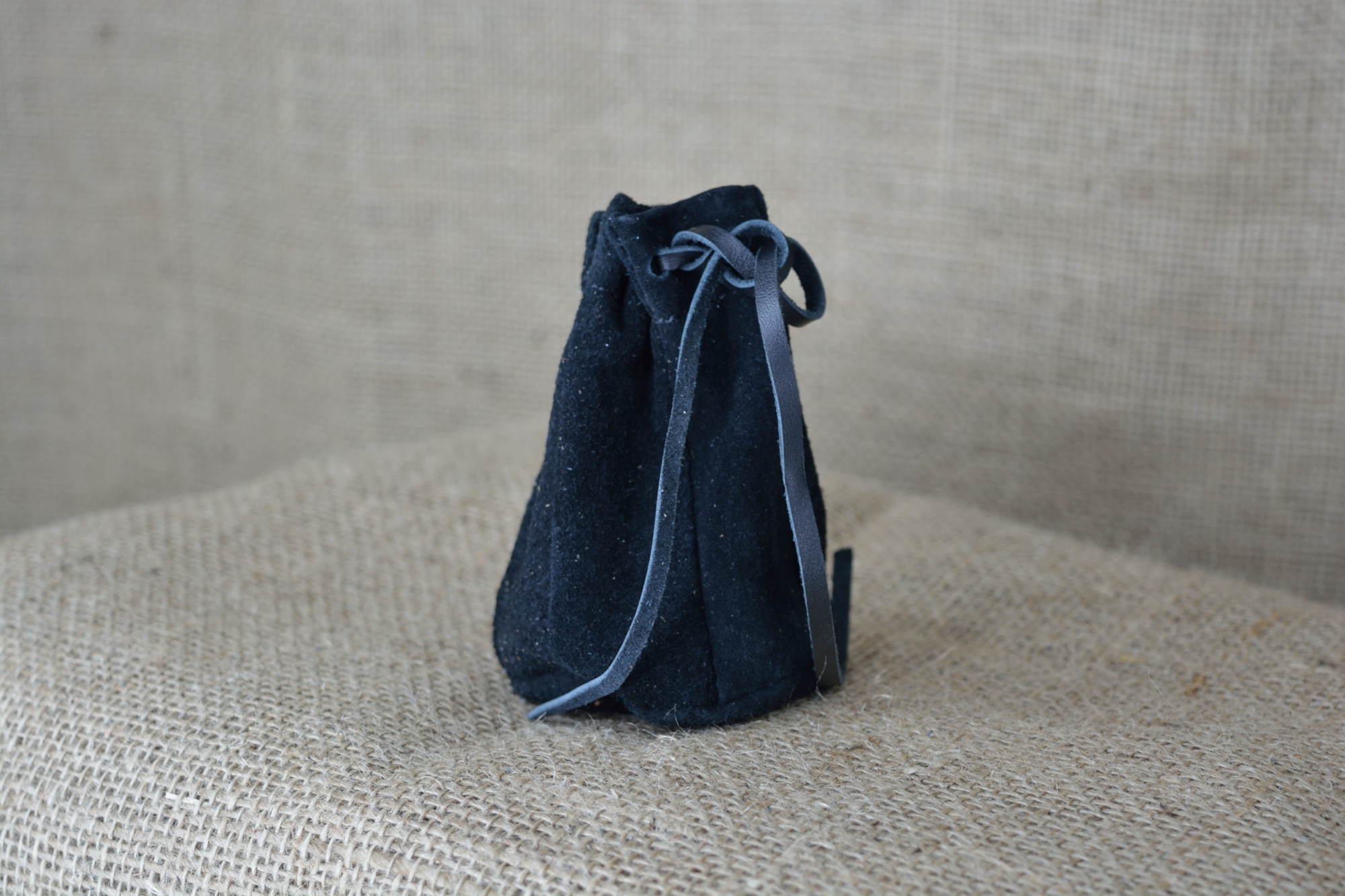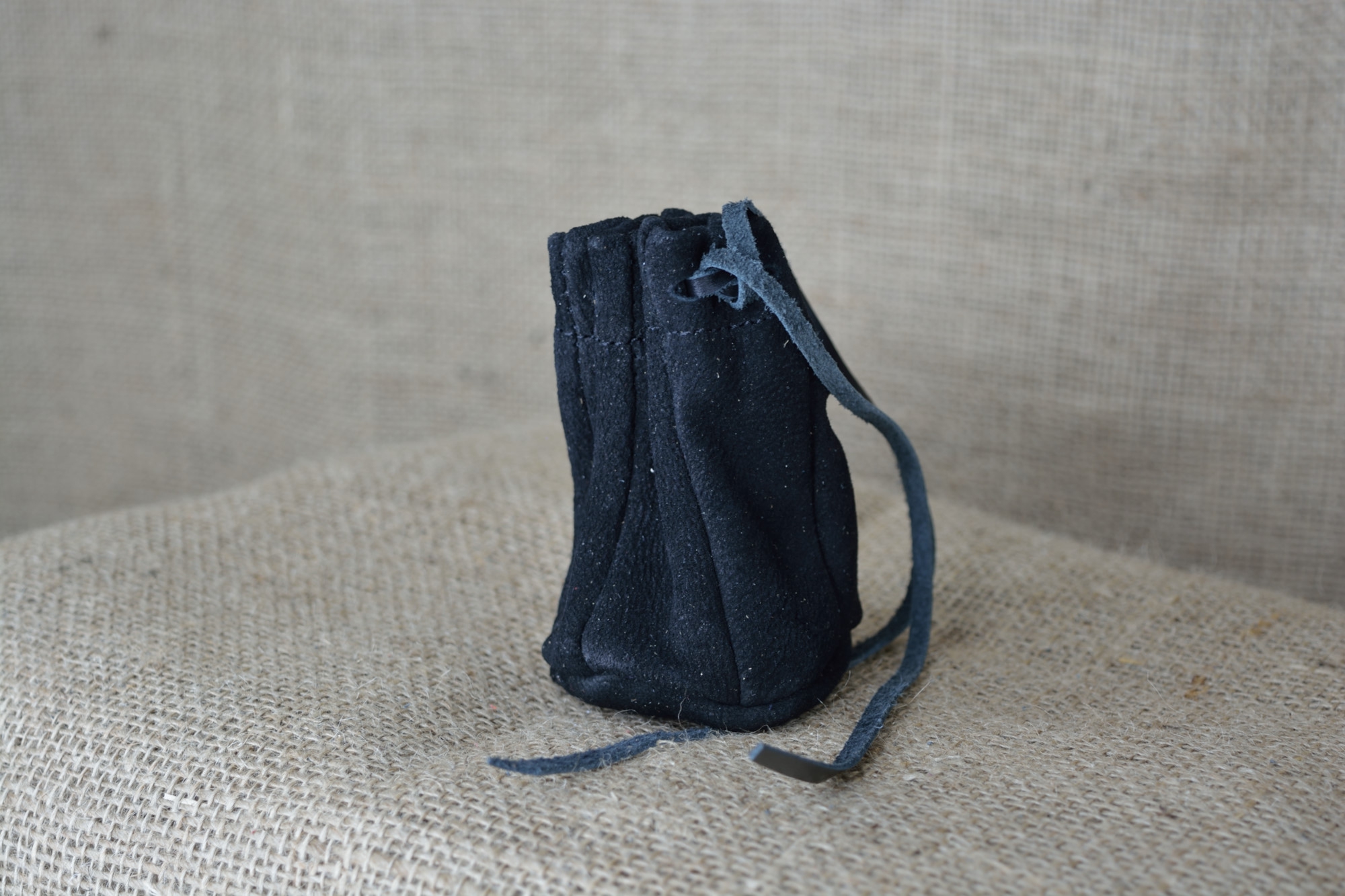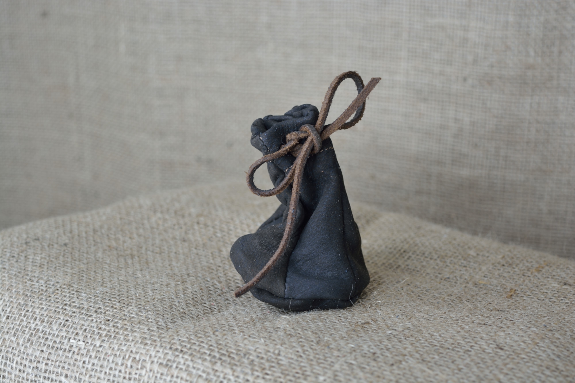 Kožený měšec na šňůrku malý - kvalitní kožený historický měšec vyrobený ručně z pravé vepřové kůže. Měšec je sešitý z více kusů měkké vepřové kůže. Vrchní část měšce, kde se provléká šňůrka, je vyztužená dvojitou vrstvou kůže. Kožený měšec má zavírání řešeno klasicky - zatahováním koženou šňůrkou. Kožený měšec je výborným historickým doplňkem, který umocní Váš dobový vzhled.