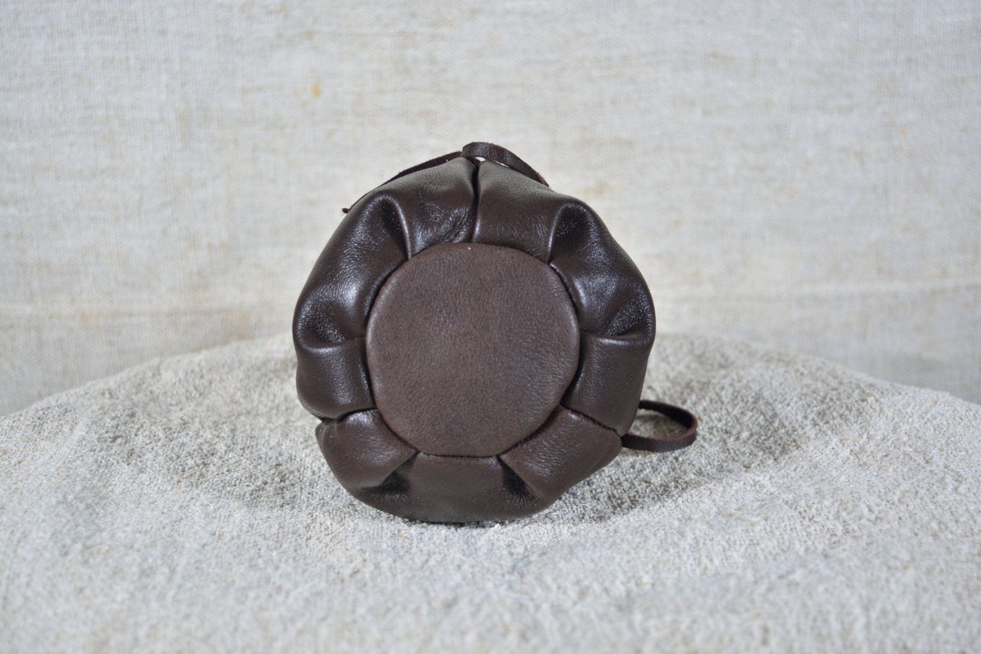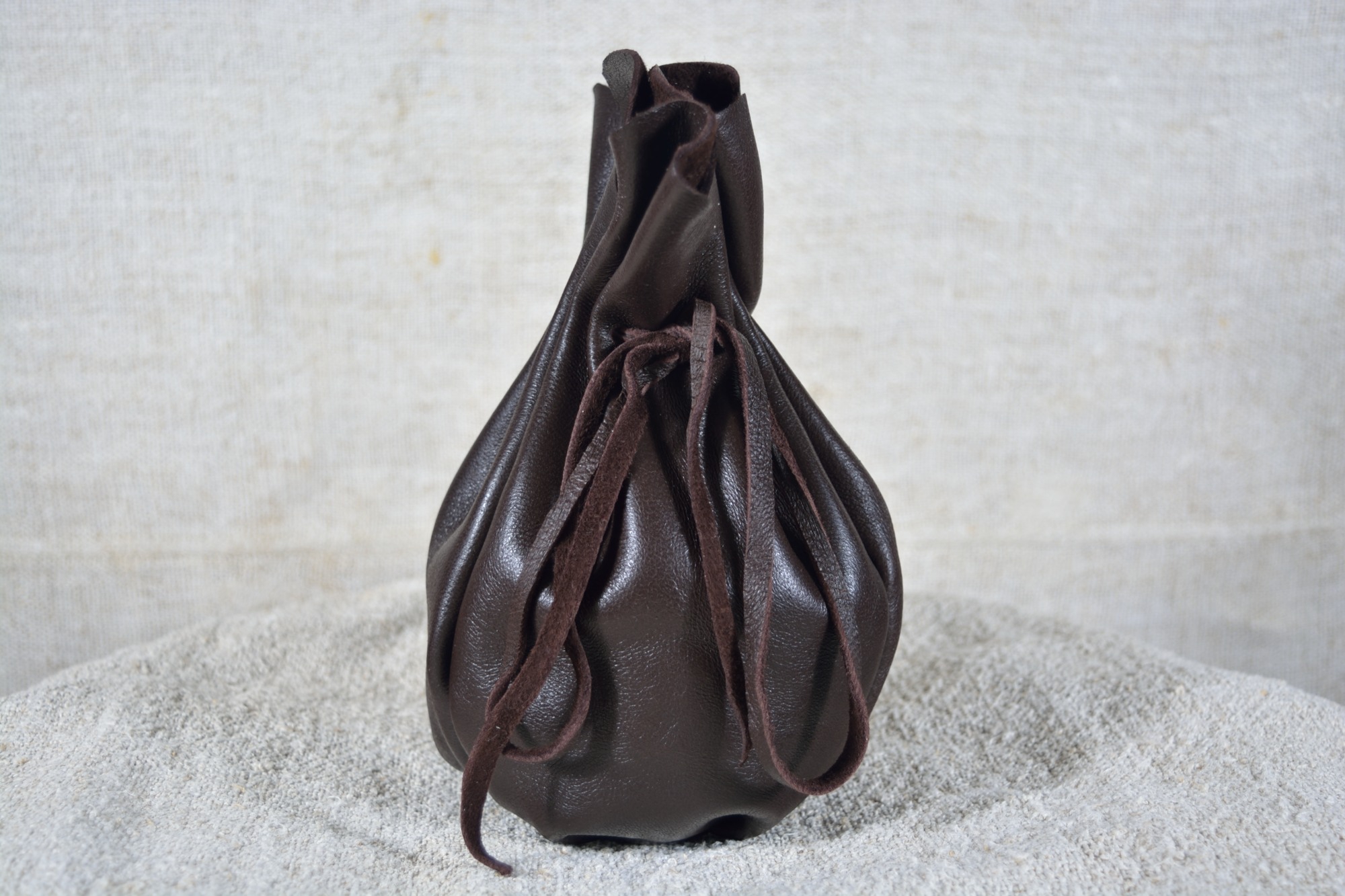 Kožený svatební měšec na šňůrku hnědý - kvalitní kožený svatební měšec vyrobený ručně z pravé kůže. Měšec je sešitý z více kusů měkké kůže. Kožený měšec se zavírá klasicky - zatahováním pomocí kožené šňůrky.