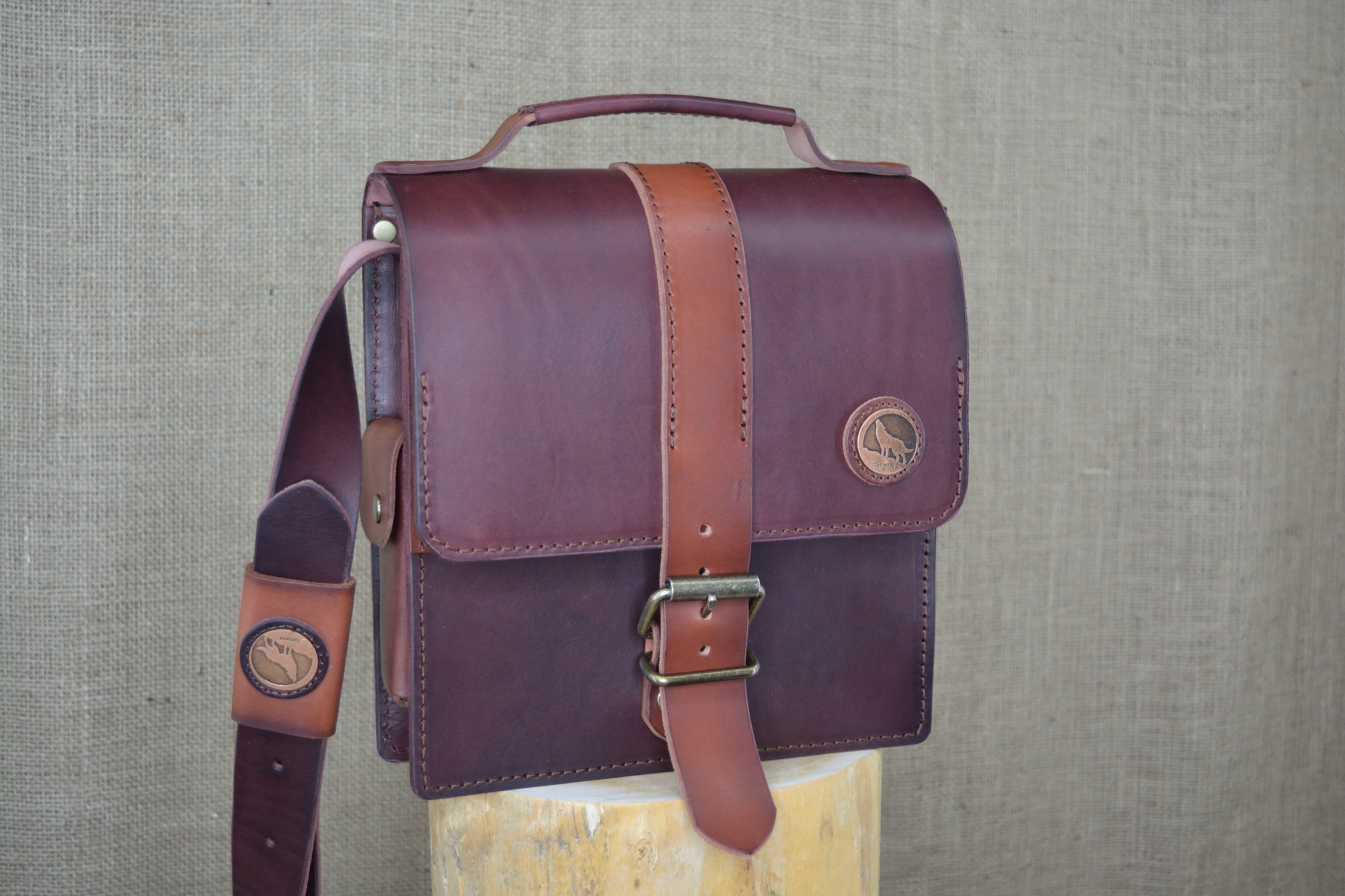 Pánská kožená taška přes rameno Australan A5 - kvalitní pánská kožená brašna vyrobená z pravé hovězí kůže - hlazenice, která je ručně barvená. Kožená brašna Australan je vyrobená z hovězí kůže tlusté 2,5 mm a řemen brašny o šířce 4 cm je vyroben z hovězí kůže tlusté 3 mm.