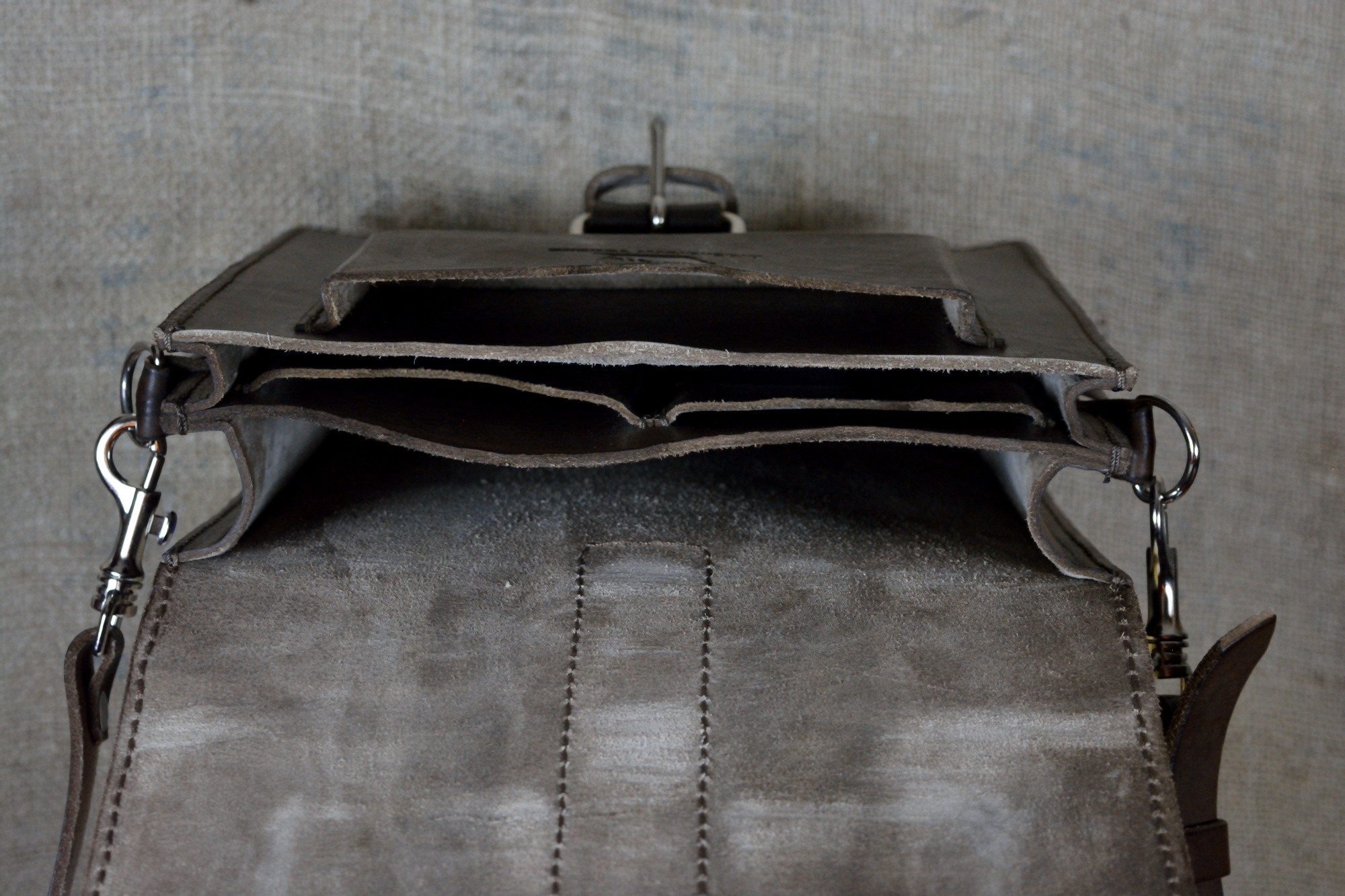 Kožená brašna je uzpůsobená tak, aby se do ní v pohodě vešel formát A5. Brašna se uzavírá na klapnu pomocí přezky. Brašna Hádě má na předním dílu pod klapnou našitou jednu větší kapsu vhodnou pro nošení chytrého mobilu do rozměrů 8 cm x 15,5 cm x 1,3 cm. Vnitřní prostor brašny je rozdělen do dvou oddělení. V předním oddělení jsou našité ještě dvě malé kožené kapsičky. Jedna vhodná pro nošení dokladů o standardních rozměrech pasu a druhá určena pro nošení vizitek. Brašna pak má ještě jedno větší zadní oddělení bez kapes.
