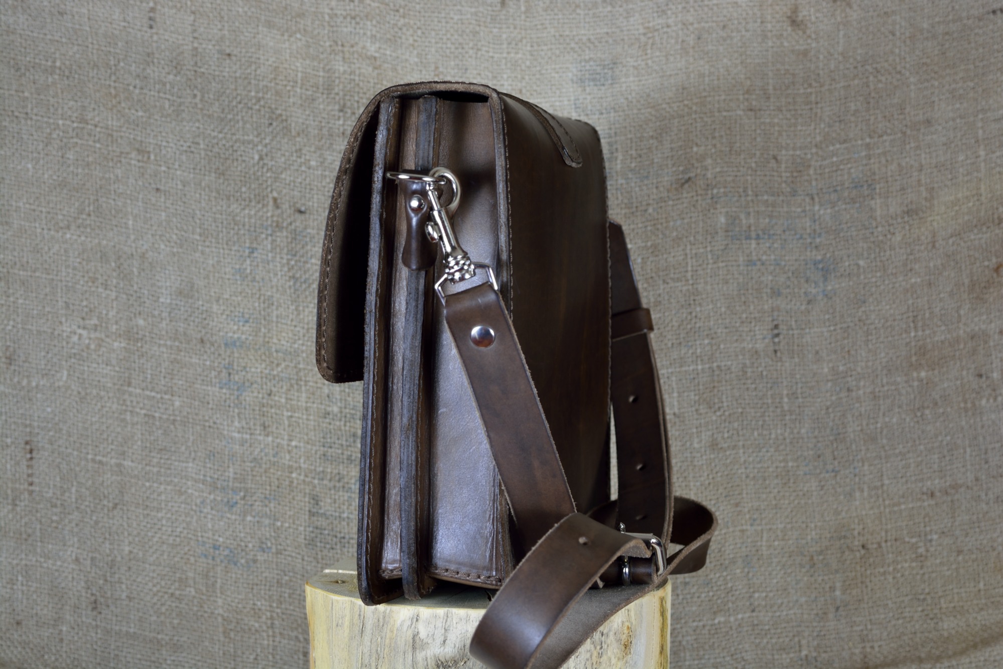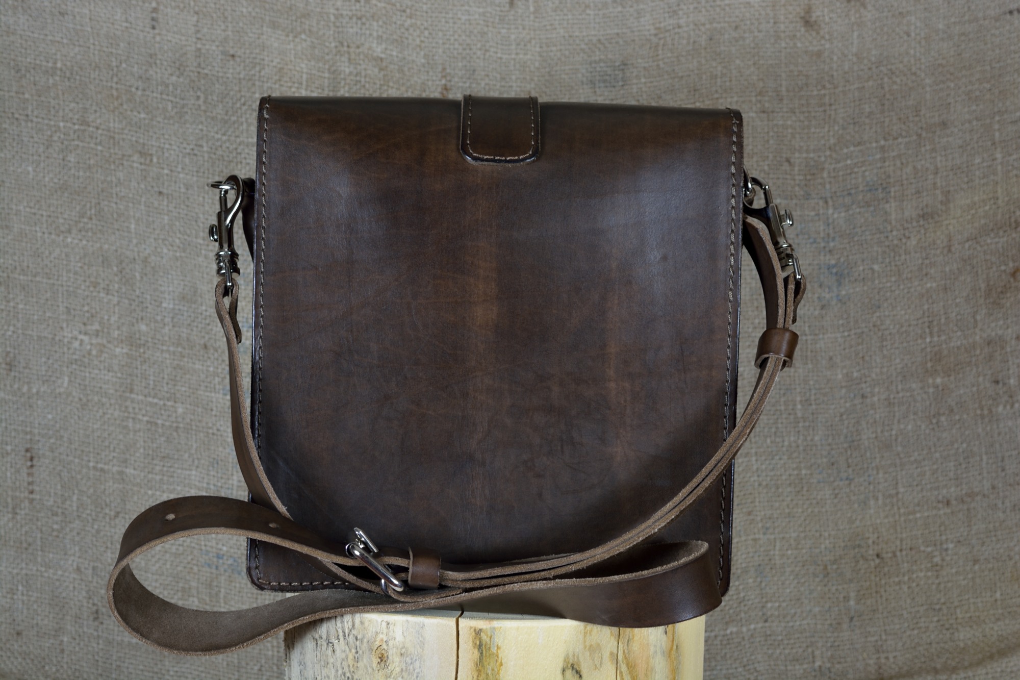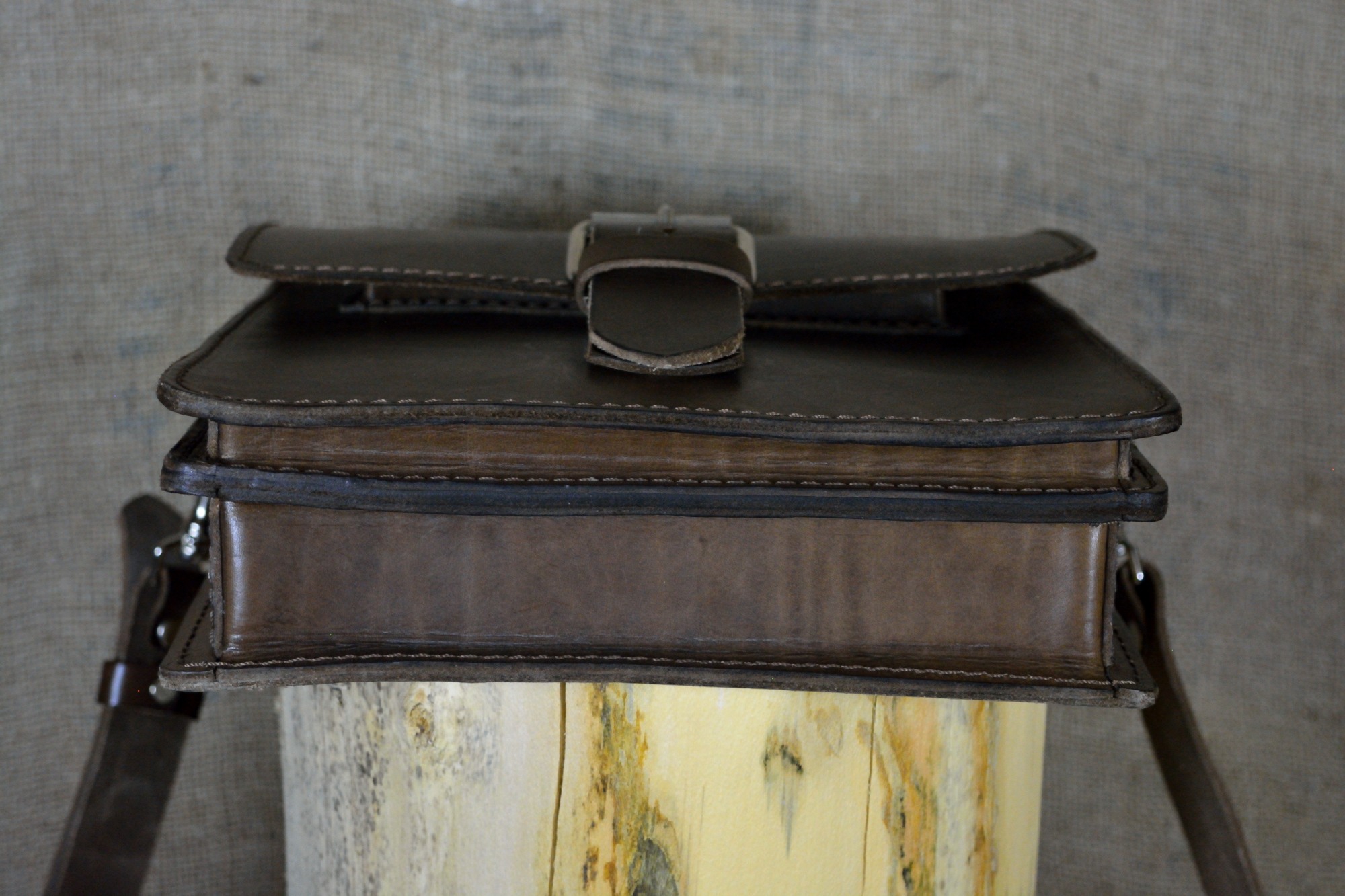 Pánská kožená brašna Hádě A5 - kvalitní pánská kožená brašna vyrobená z pravé hovězí kůže - hlazenice, která je ručně barvená. Kožená brašna Hádě je vyrobená z hovězí kůže tlusté 2,5 mm a řemen brašny o šířce 3 cm je vyroben z hovězí kůže tlusté 3 mm.